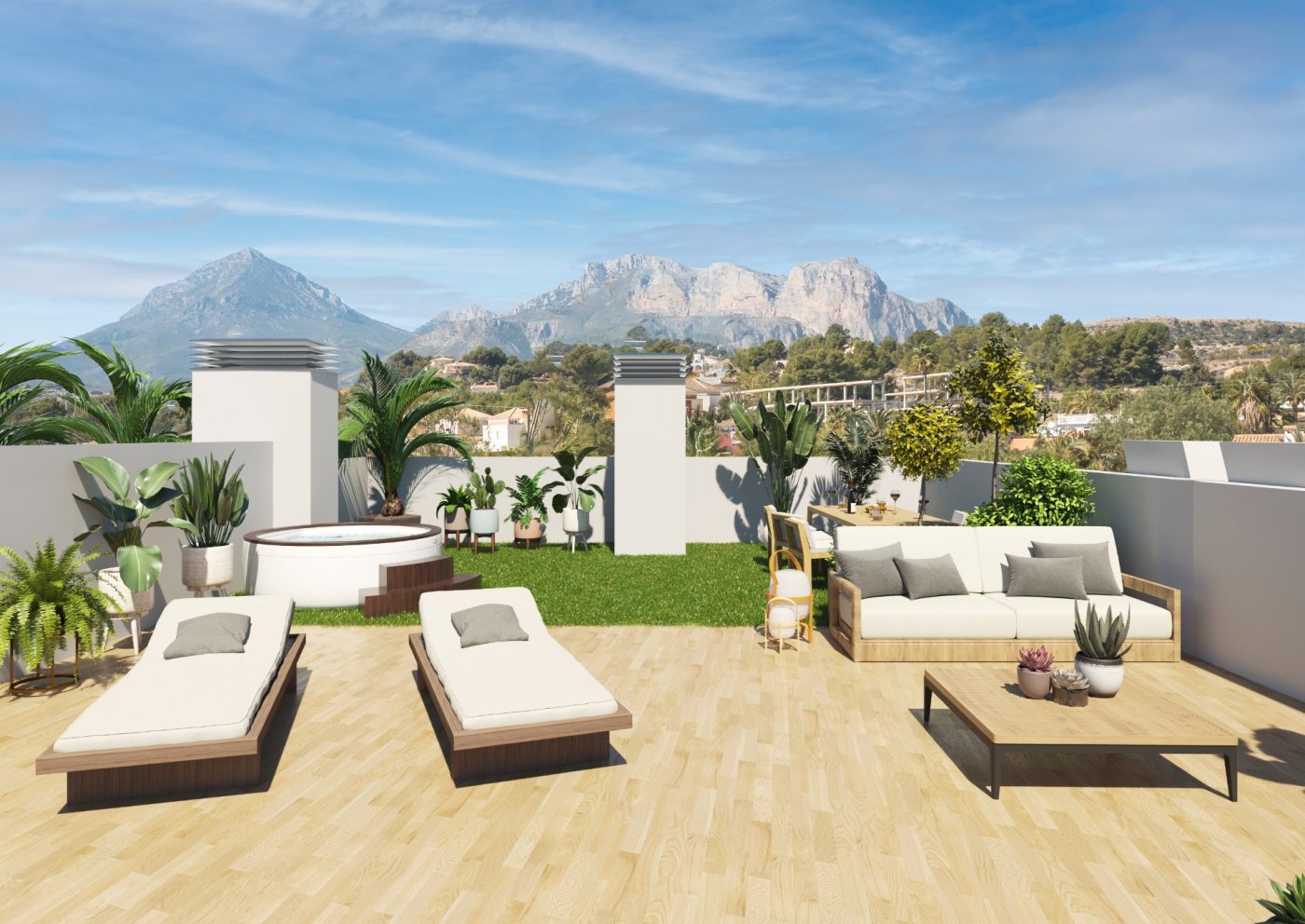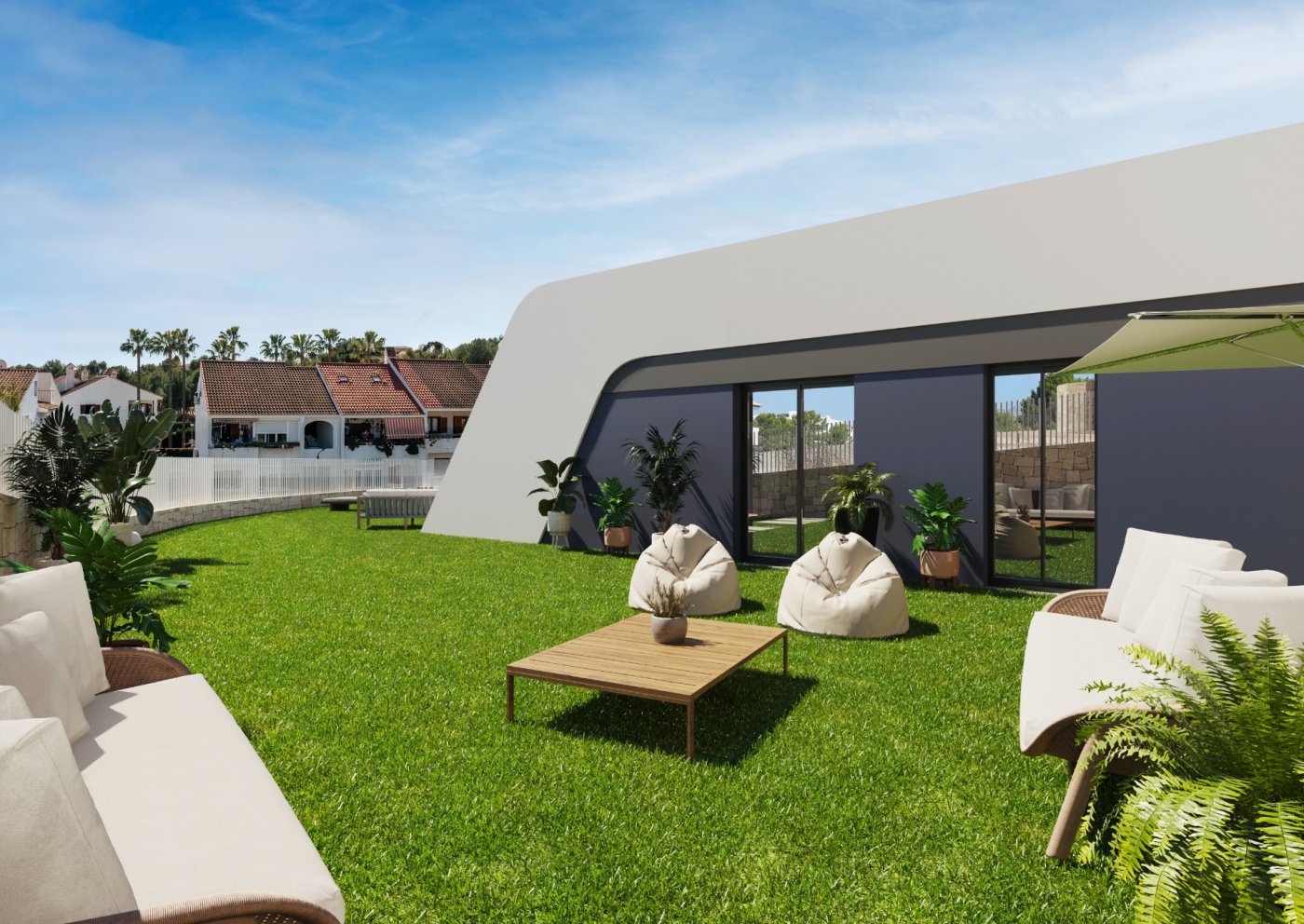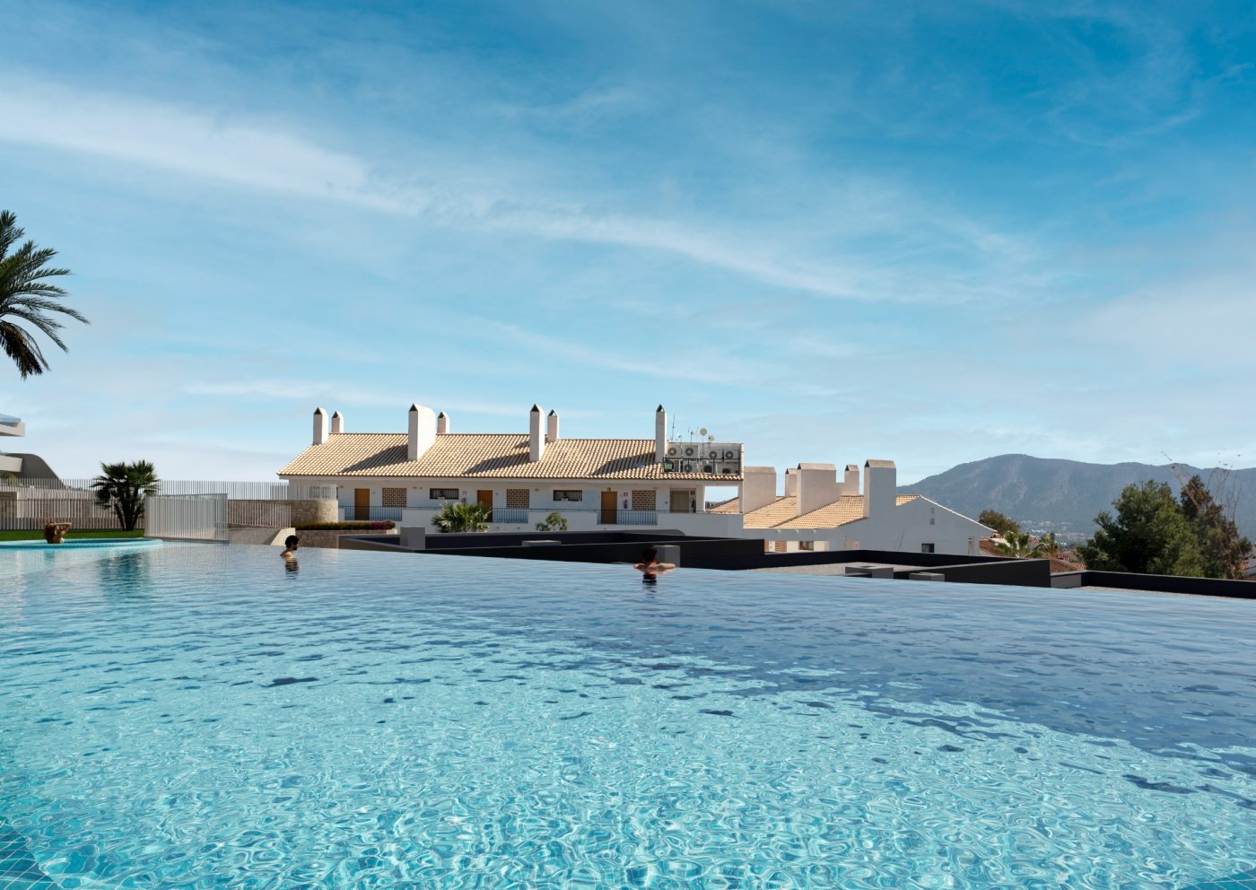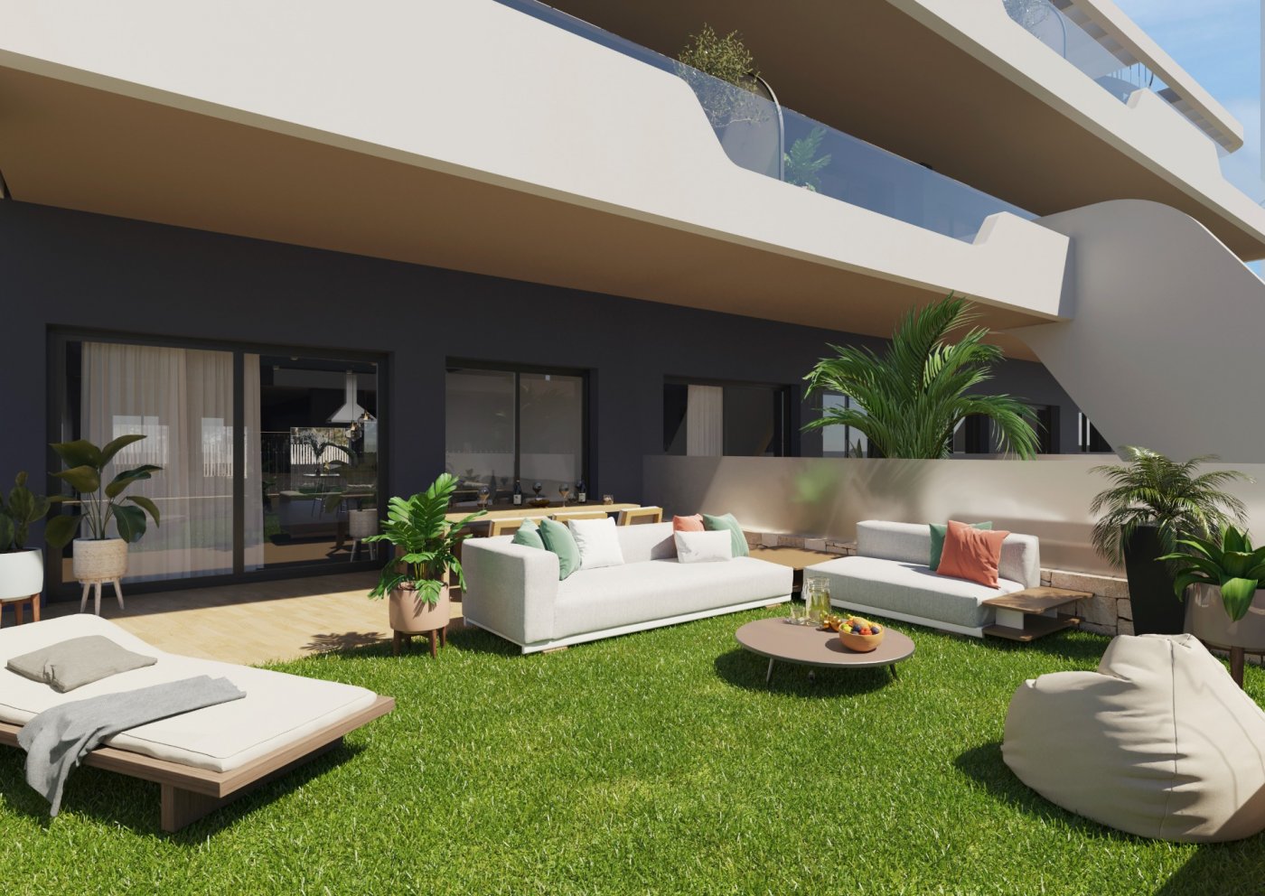Brand-new apartments for sale in Alfaz del Pi, new residential complex of 117 apartments of 4 different types.~~This apartment has 74 sq m of built surface area and is based on the ground floor of the 3-storey building. It has 2 bedrooms, 2 bathrooms, an open-plan kitchen, and a bright living-dining room with access to the covered terrace from where you can go out to your small private garden area, with unobstructed views of the sea. Also available 3-bedroom apartments, apartments without garden, and rooftop penthouses.~~Fantastic community areas where to disconnect, with garden spaces, childrenās playground, and two infinity pools with views of the bay.~~Excellent location only 1 km to the town centre where you will find all local amenities, such as supermarkets, pharmacies, health centre, etc... 2 minutes away to the Alfaz del Sol sports club, and only a 5-min drive to the beach.~~Characteristics