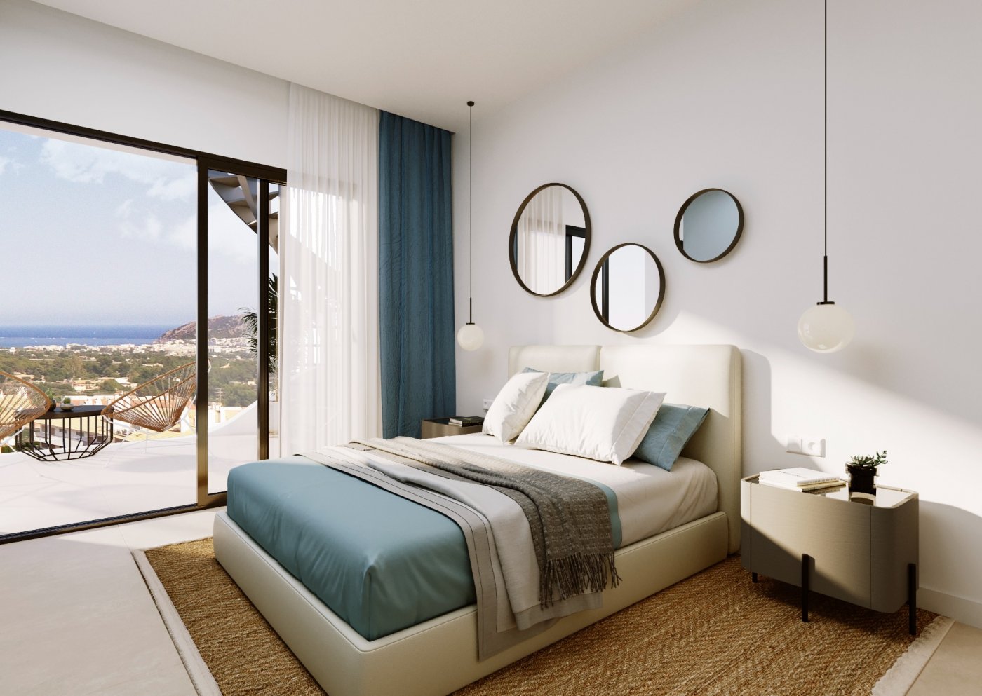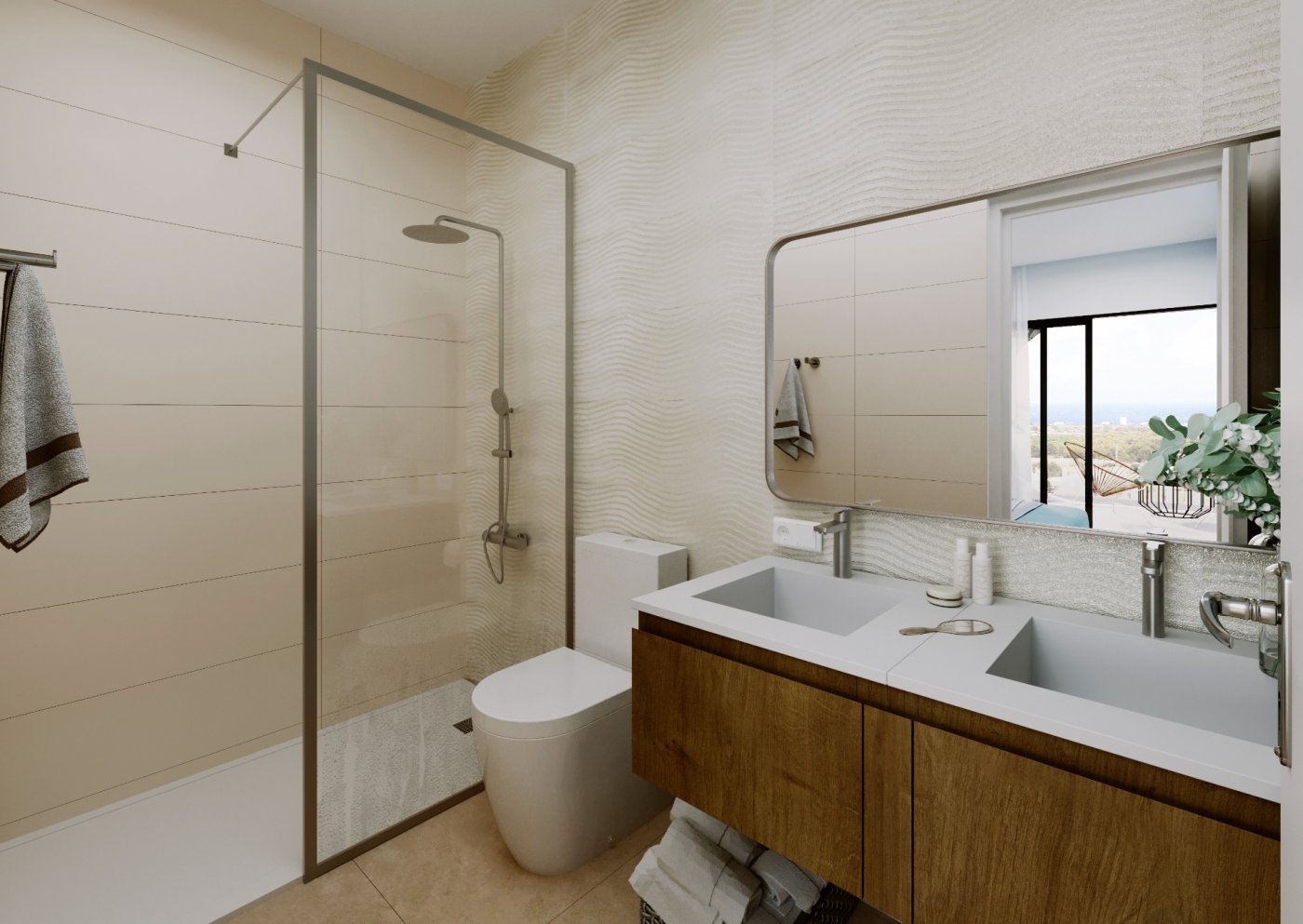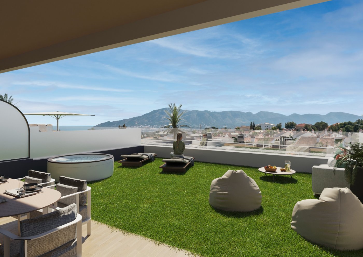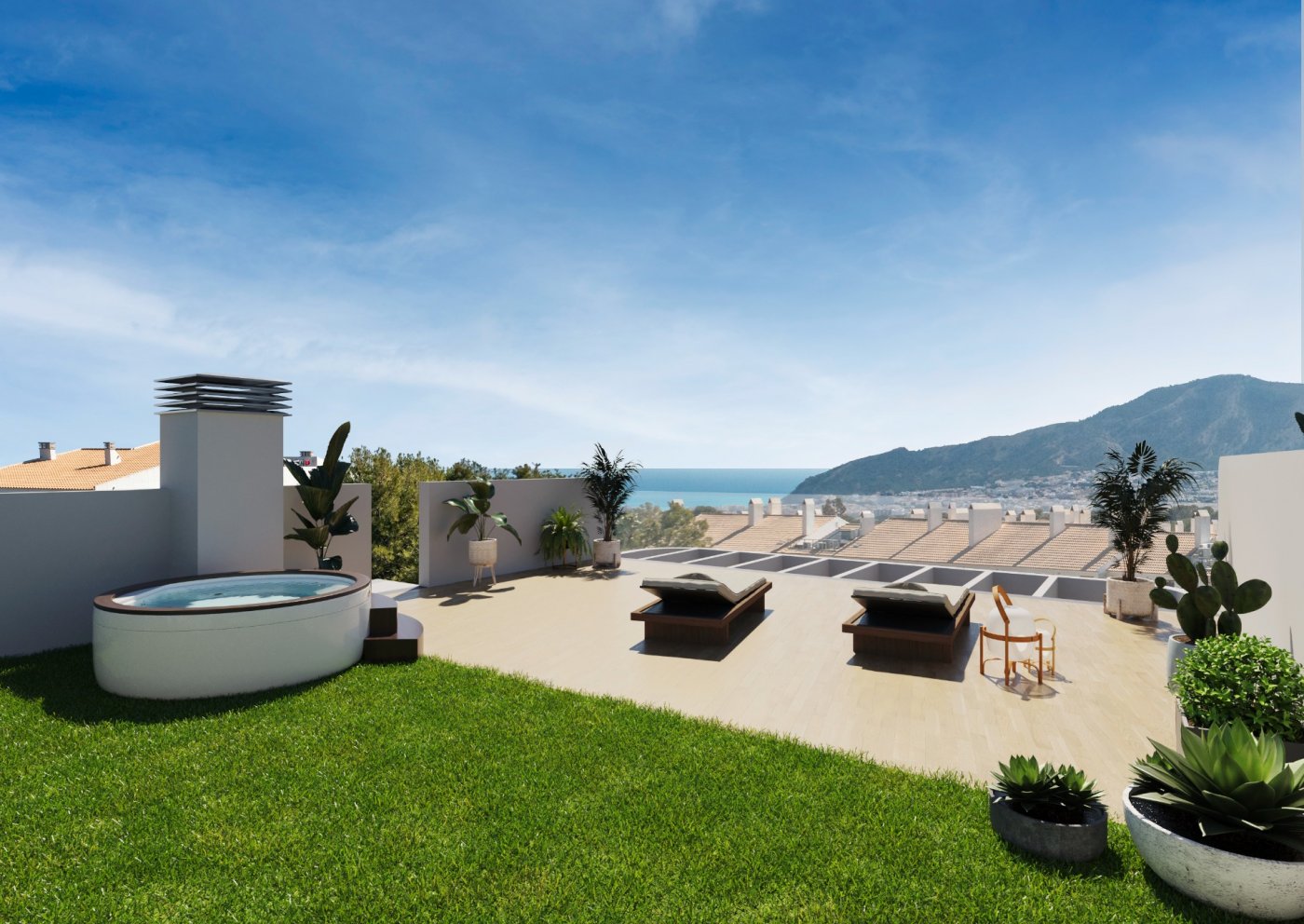 Brand-new apartments for sale in Alfaz del Pi, new residential complex of 117 apartments of 4 different types.~~This apartment has 74 sq m of built surface area and is based on the ground floor of the 3-storey building. It has 2 bedrooms, 2 bathrooms, an open-plan kitchen, and a bright living-dining room with access to the covered terrace from where you can go out to your small private garden area, with unobstructed views of the sea. Also available 3-bedroom apartments, apartments without garden, and rooftop penthouses.~~Fantastic community areas where to disconnect, with garden spaces, childrenās playground, and two infinity pools with views of the bay.~~Excellent location only 1 km to the town centre where you will find all local amenities, such as supermarkets, pharmacies, health centre, etc... 2 minutes away to the Alfaz del Sol sports club, and only a 5-min drive to the beach.~~Characteristics