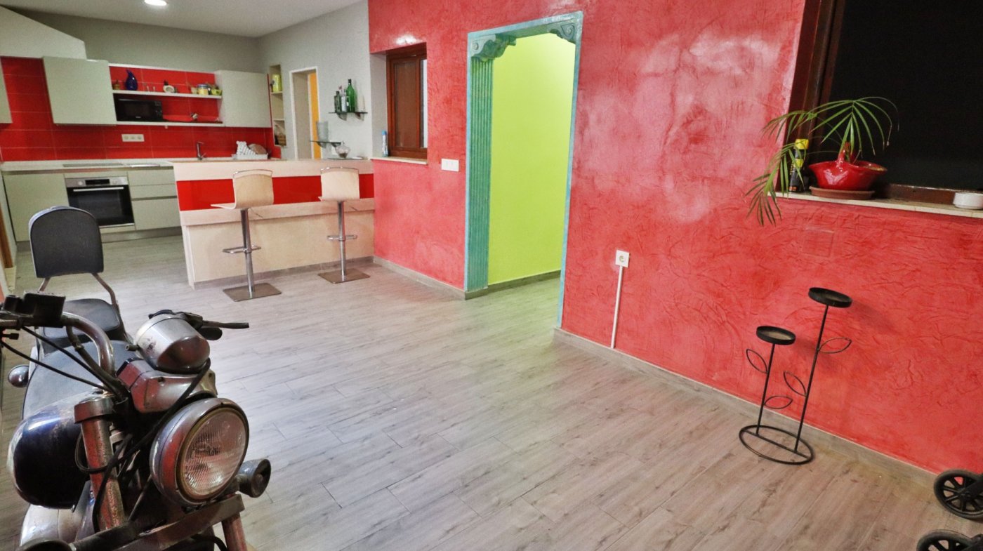 Amplia casa en venta en el pueblo de Alfaz del Pi, a un paso de todos los servicios y del centro.~La vivienda cuenta con 5 dormitorios, salón-comedor, cocina, y segundo comedor. También dispone de un pequeño patio, una terraza pisable y garaje.~~La parcela de 208 m2 da a dos calles y tiene una edificabilidad futura de construcción en prácticamente toda su superficie, con posibilidad de construir dos plantas sobre rasante y un semisótano.~Características