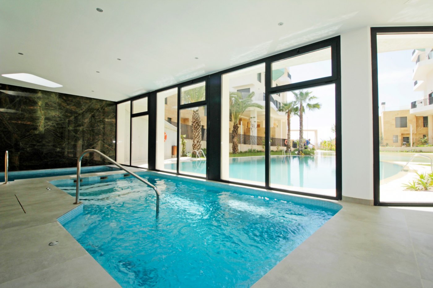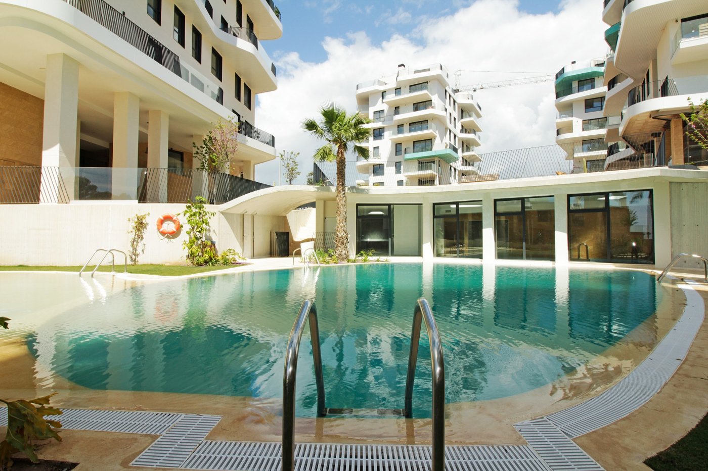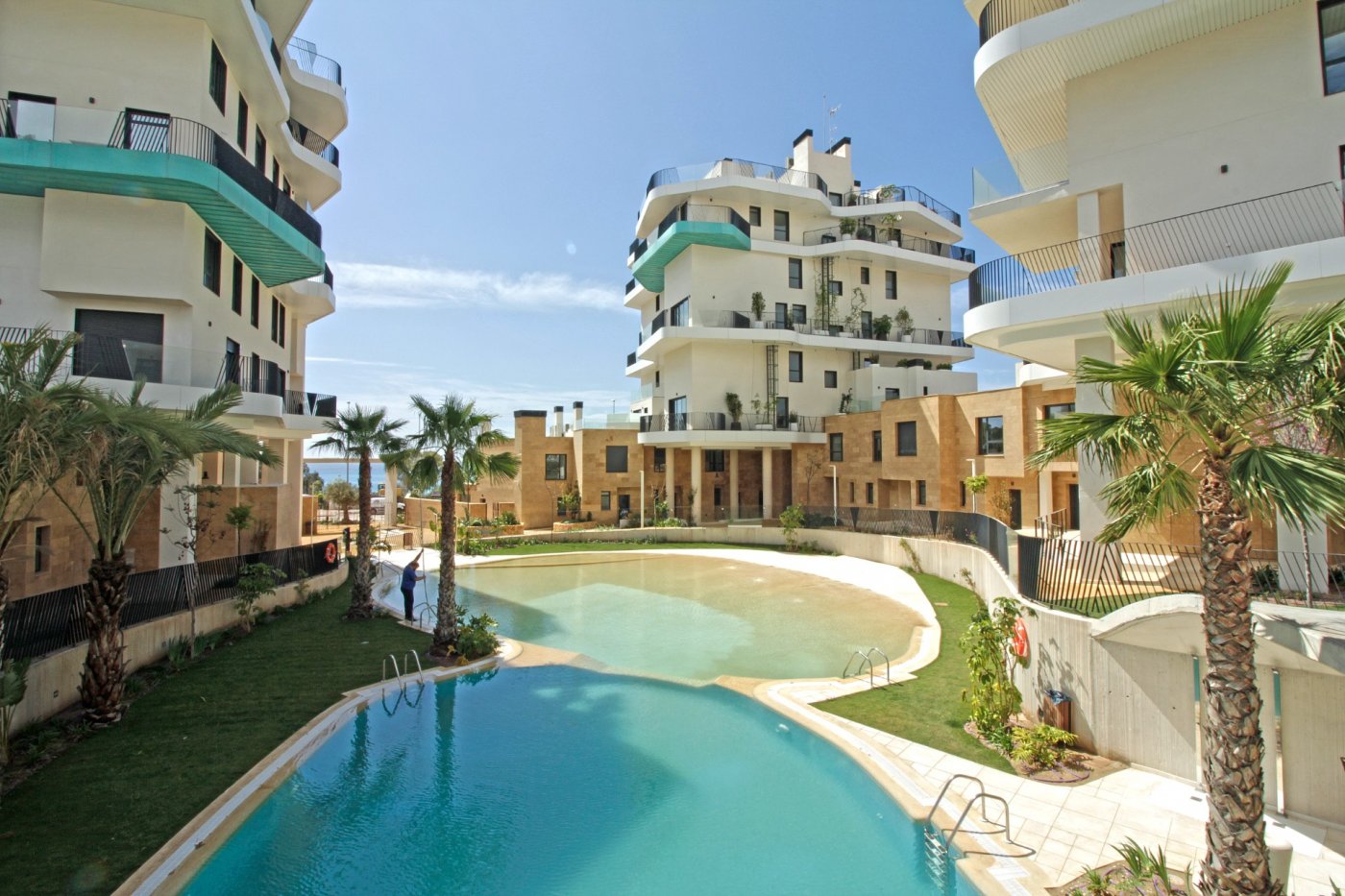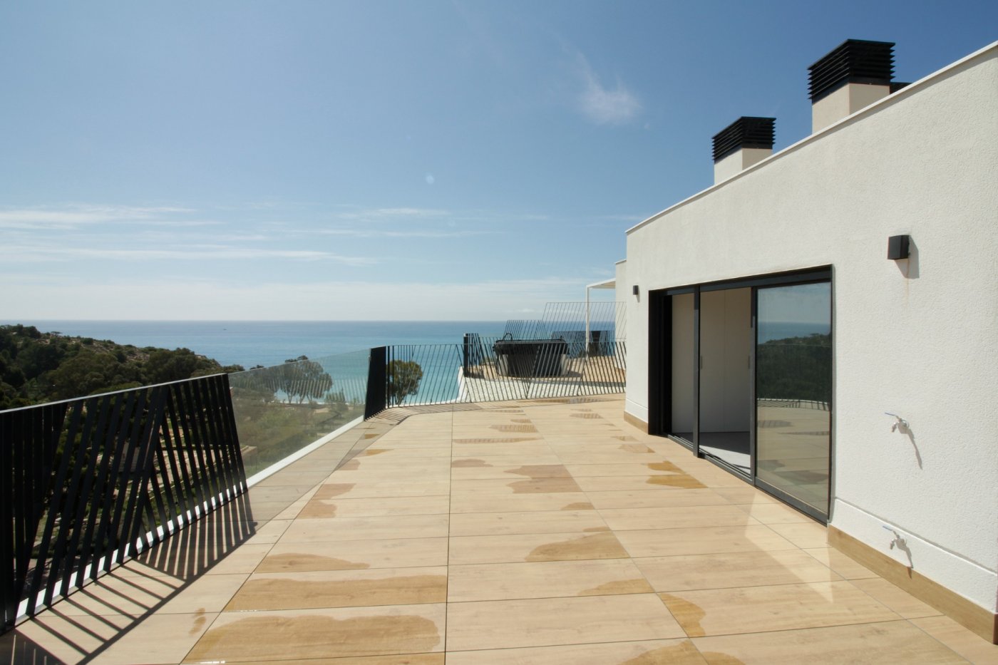Exclusivo ático dúplex situado en un complejo residencial único en primera línea de la playa de Villajoyosa, certificado mediante el esquema BREEAM que reconoce su sostenibilidad ambiental. ~ ~ La vivienda con unas de las mejores vistas al mar de todo el residencial se distribuye en dos niveles teniendo más de 120 m2 de terrazas y 274 m2 construidos en total. Cuenta con 3 dormitorios dobles, 3 cuartos de baño, cocina con isla totalmente equipada, amplio y luminoso salón-comedor y dos magníficas terrazas que rodean el apartamento en ambas plantas. La terraza-solárium cuenta, además, con la instalación de jacuzzi. Viene con plaza de garaje subterránea.~ ~ Construcción de alta calidad con materiales modernos. Armarios empotrados, alicatados cerámicos de primera calidad en los baños y en la cocina, gres porcelánico antideslizante en balcones y terrazas, aire acondicionado por conductos, ventanas dobles climalit.~ ~ Urbanización cerrada con magníficas zonas comunitarias: piscina descubierta con zona de baja profundidad para niños, piscina climatizada, SPA con sauna y camas de hidromasaje, baños y cambiadores, un club social y área de juego infantil. Todo esto en la primera línea de la Playa del Torres con sus aguas cristalinas, rodeada de naturaleza y zonas protegidas donde puede disfrutar de bonitos paseos a lo largo de la costa. Hay un supermercado y un restaurante en la zona. El centro de Villajoyosa y el centro comercial La Marina están a tan sólo 5 minutos en coche.~Características