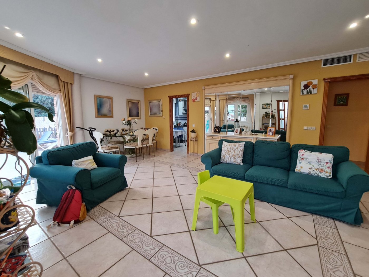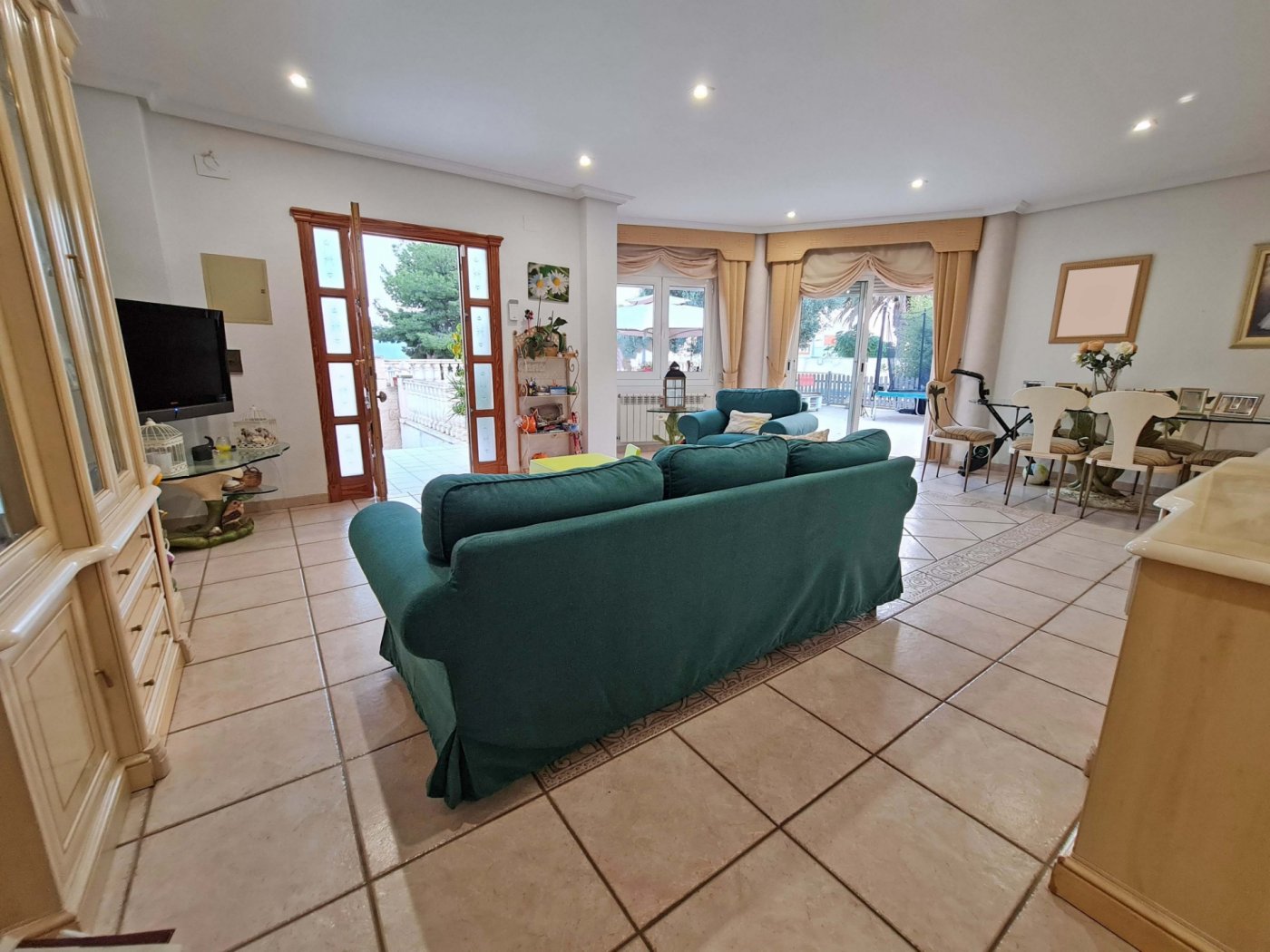 Amplio chalet unifamiliar en Alfaz del Pi, zona L'Arabi, con vistas a la montaña. Excelente ubicación en una zona residencial muy tranquila cerca de supermercados, colegios y a 3 min del centro de la ciudad, con fácil acceso desde ambas carreteras.~~El chalet tiene una superficie de 287 m2 que se distribuyen entre 5 dormitorios, 2 cuartos de baño, 1 aseo, salón-comedor con chimenea, cocina independiente completamente equipada, garaje para dos vehículos y una cava para guardar hasta 100 botellas de vino. Parcela de 876 m2 con mucha privacidad, piscina 9x5 y jardín con vistas a las montañas. ~~Vivienda en muy buen estado de conservación, lista para entrar a vivir, distribuida sobre una sola planta y equipada con aire acondicionado y calefacción.~~Características