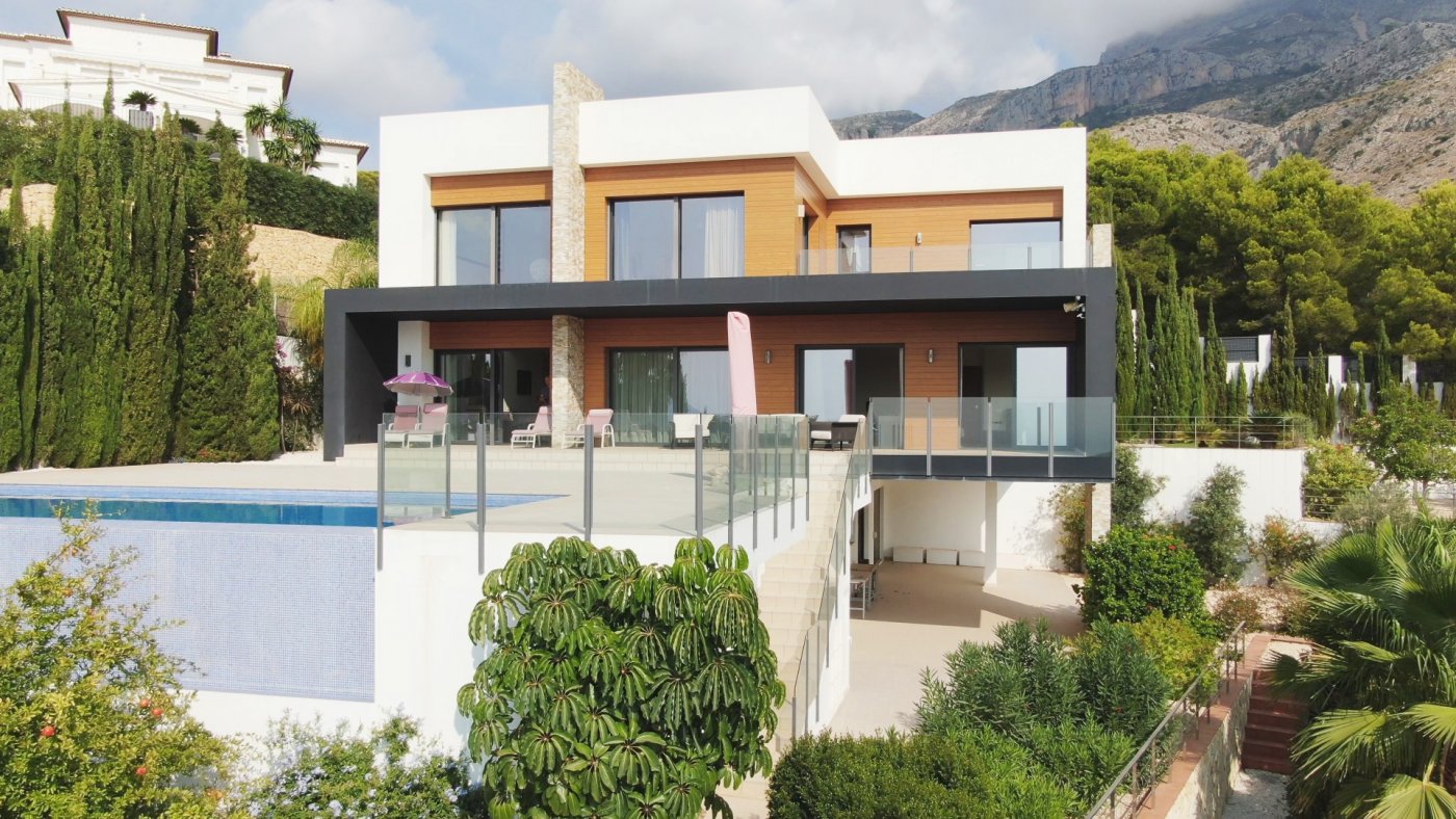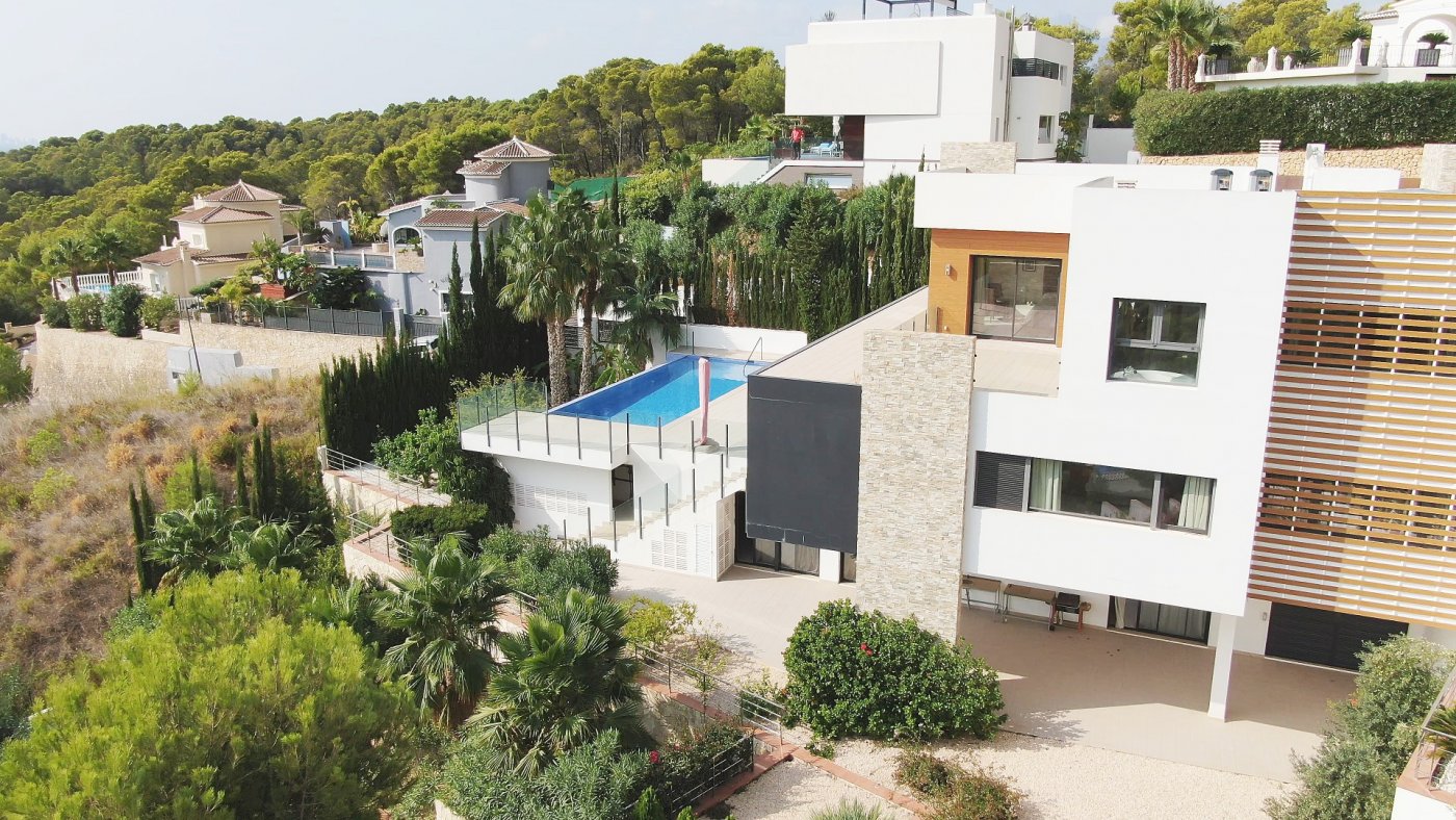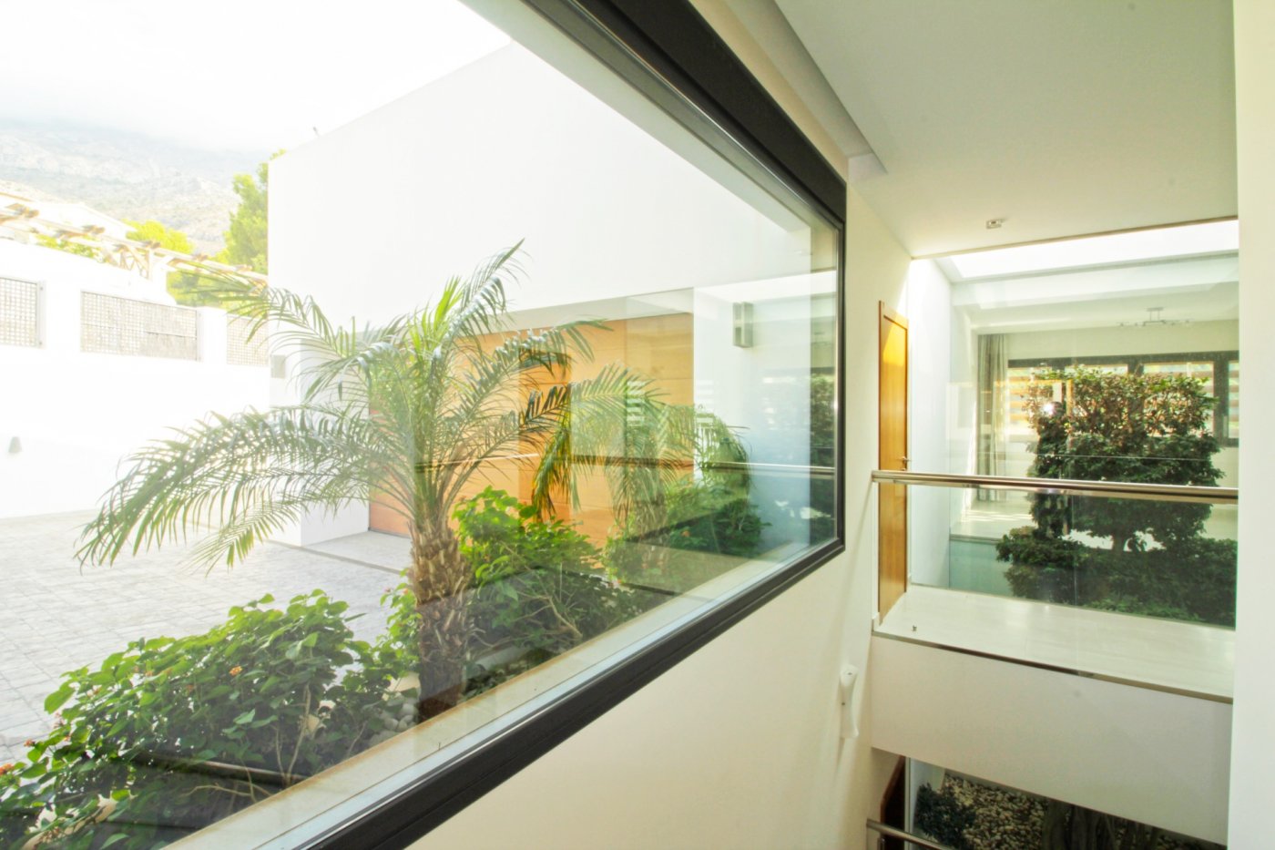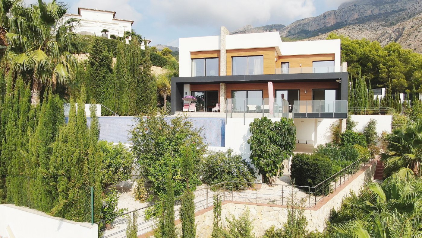 Espectacular villa en venta en Altea, situada en un lugar con mucha privacidad entre el mar y montaña.~ ~ Construida en 2015 con materiales de alta calidad. Diseño moderno personalizado con habitaciones amplias y espacios muy elaborados que ofrecen confort y comodidad en su día a día. Se distribuye en tres plantas unidas por escalera interior con patio de luces y ascensor. ~ ~ Cuenta con 6 amplios dormitorios, 4 baños, cocina con isla totalmente equipada en la planta principal, cocina americana en la planta baja con acceso al porche y barbacoa, salón-comedor de doble altura con chimenea y acceso a la piscina, otro salón chill-out en la planta baja, sauna, trastero y varias terrazas cubiertas y descubiertas. Jardín de diseño con amplia terraza soleada y piscina con vistas. La villa dispone de garaje cerrado para varios vehículos, aire acondicionado integrado, persianas eléctricas, alarma.~Características