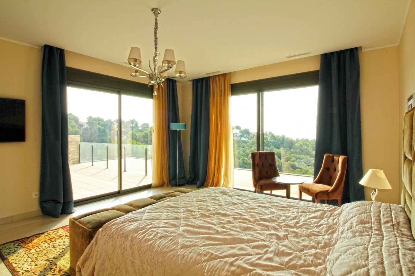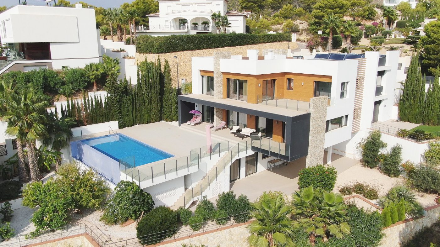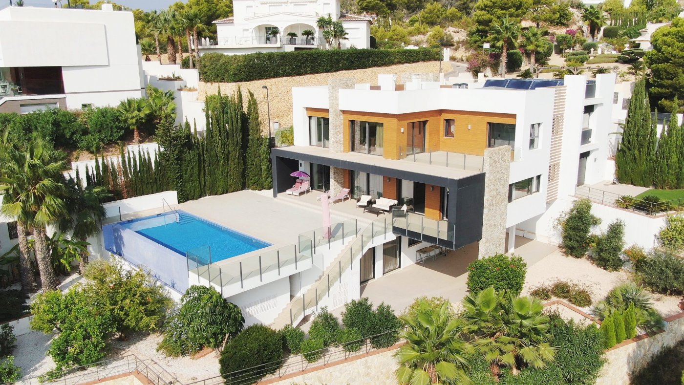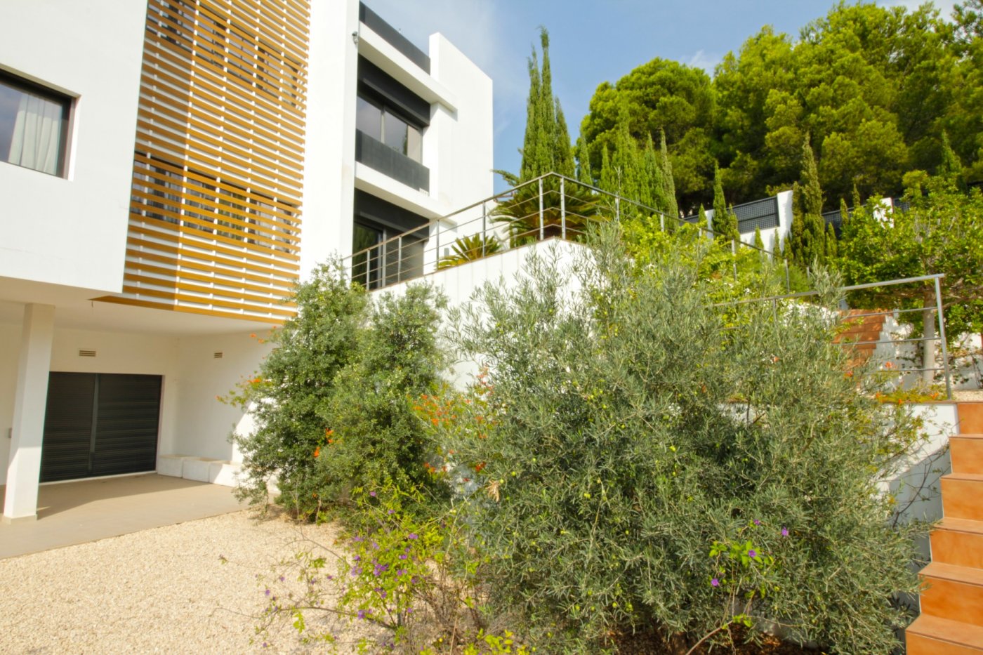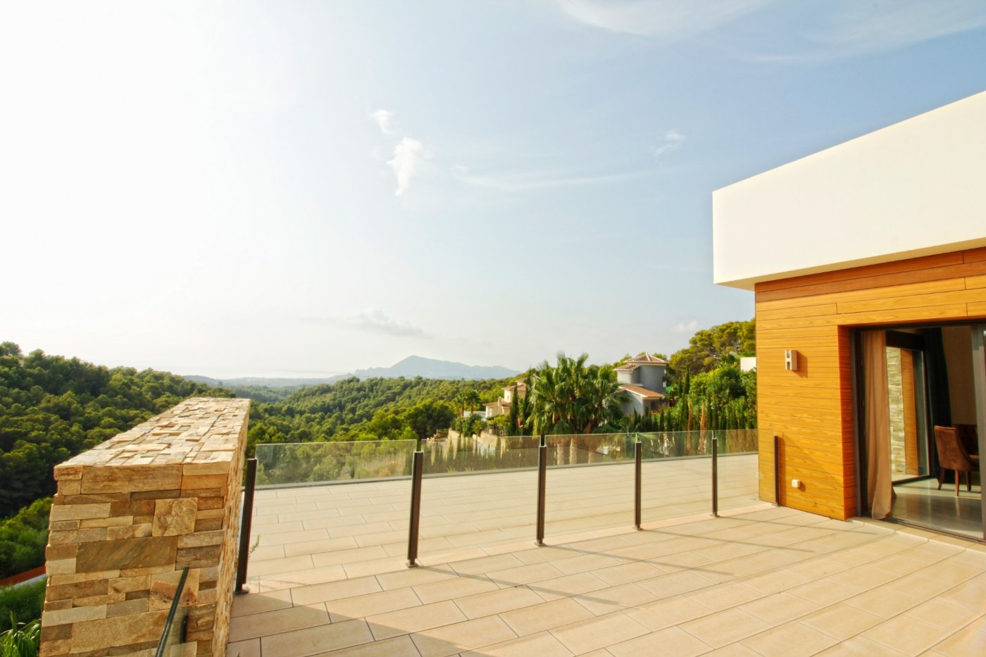 Espectacular villa en venta en Altea, situada en un lugar con mucha privacidad entre el mar y montaña.~ ~ Construida en 2015 con materiales de alta calidad. Diseño moderno personalizado con habitaciones amplias y espacios muy elaborados que ofrecen confort y comodidad en su día a día. Se distribuye en tres plantas unidas por escalera interior con patio de luces y ascensor. ~ ~ Cuenta con 6 amplios dormitorios, 4 baños, cocina con isla totalmente equipada en la planta principal, cocina americana en la planta baja con acceso al porche y barbacoa, salón-comedor de doble altura con chimenea y acceso a la piscina, otro salón chill-out en la planta baja, sauna, trastero y varias terrazas cubiertas y descubiertas. Jardín de diseño con amplia terraza soleada y piscina con vistas. La villa dispone de garaje cerrado para varios vehículos, aire acondicionado integrado, persianas eléctricas, alarma.~Características