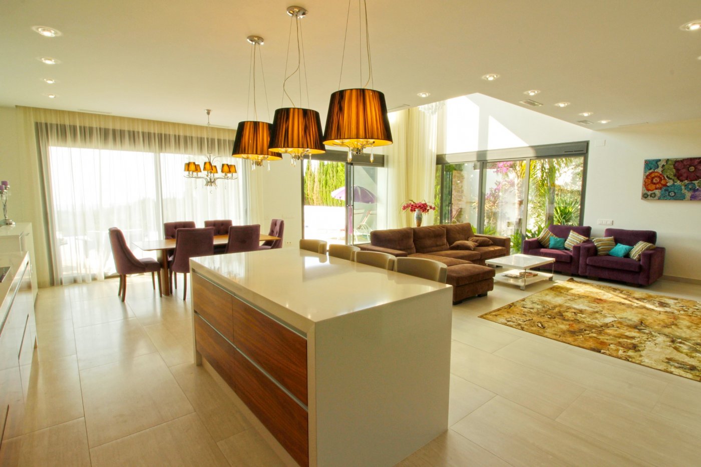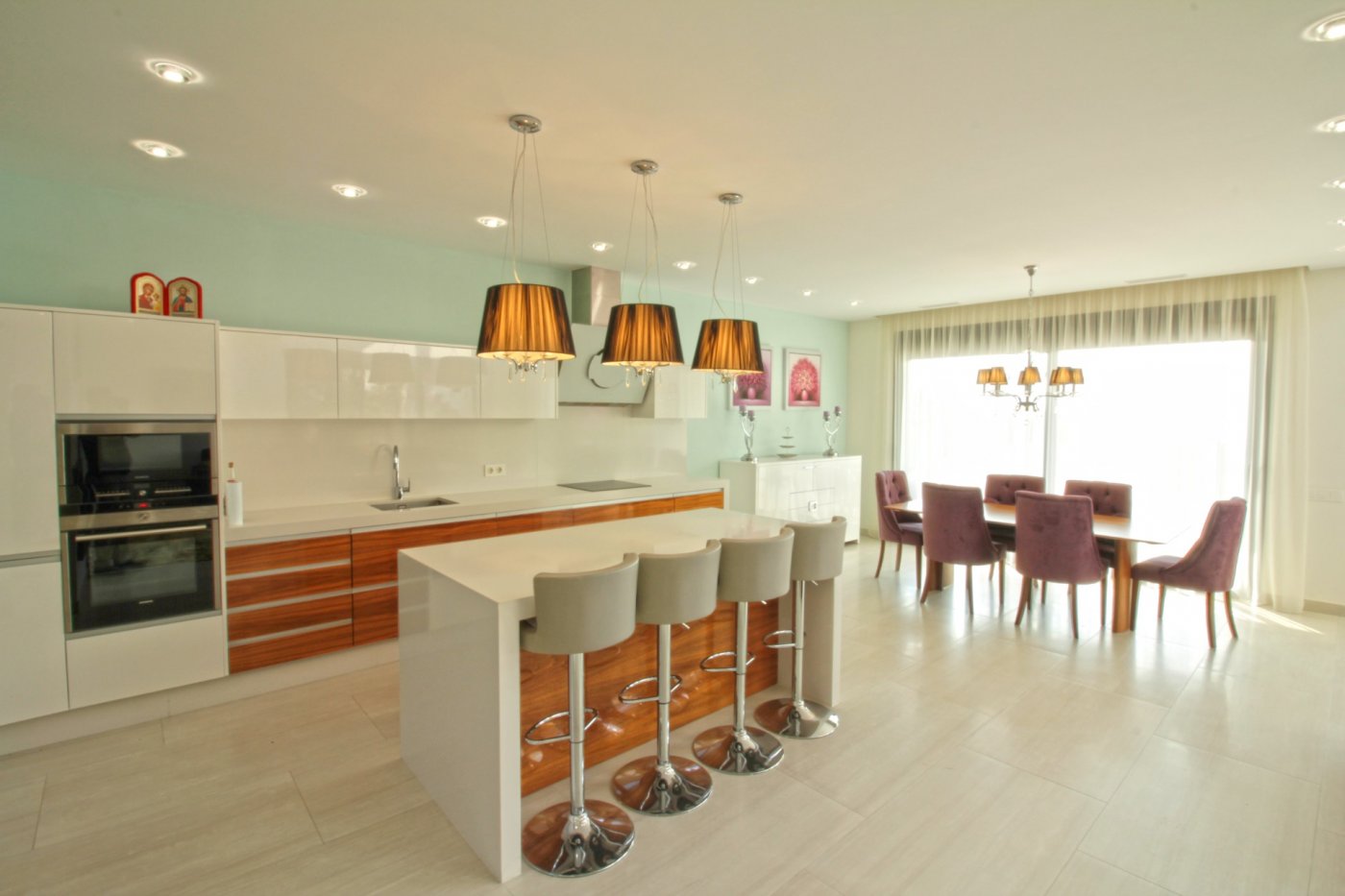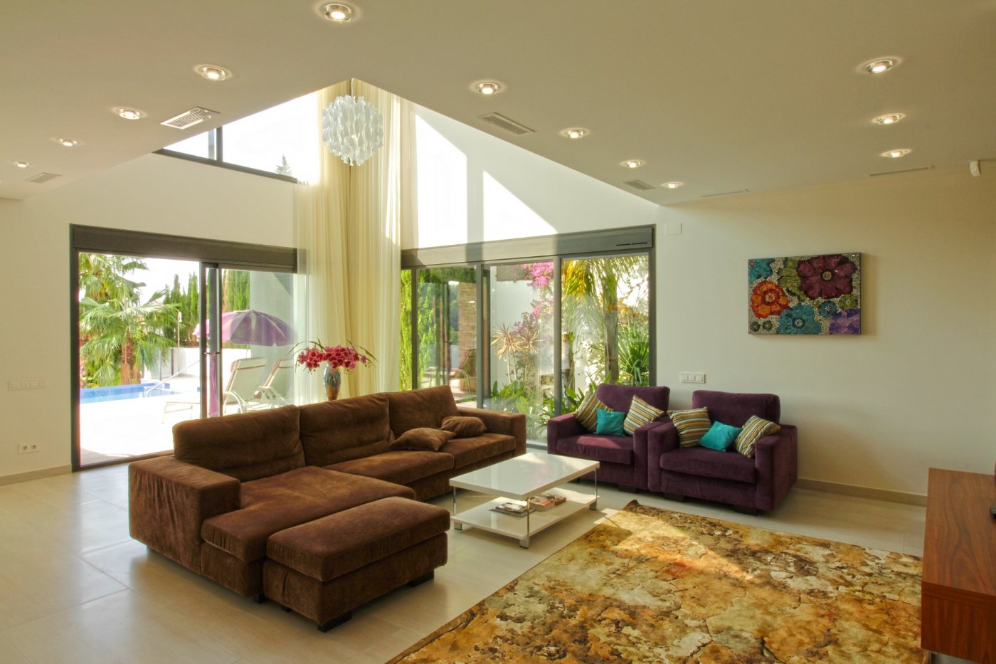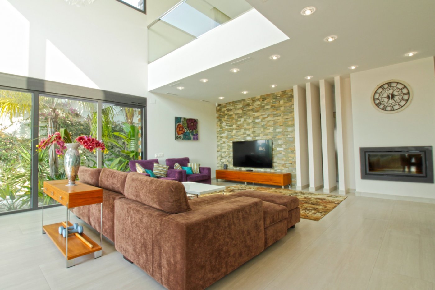 Espectacular villa en venta en Altea, situada en un lugar con mucha privacidad entre el mar y montaña.~ ~ Construida en 2015 con materiales de alta calidad. Diseño moderno personalizado con habitaciones amplias y espacios muy elaborados que ofrecen confort y comodidad en su día a día. Se distribuye en tres plantas unidas por escalera interior con patio de luces y ascensor. ~ ~ Cuenta con 6 amplios dormitorios, 4 baños, cocina con isla totalmente equipada en la planta principal, cocina americana en la planta baja con acceso al porche y barbacoa, salón-comedor de doble altura con chimenea y acceso a la piscina, otro salón chill-out en la planta baja, sauna, trastero y varias terrazas cubiertas y descubiertas. Jardín de diseño con amplia terraza soleada y piscina con vistas. La villa dispone de garaje cerrado para varios vehículos, aire acondicionado integrado, persianas eléctricas, alarma.~Características