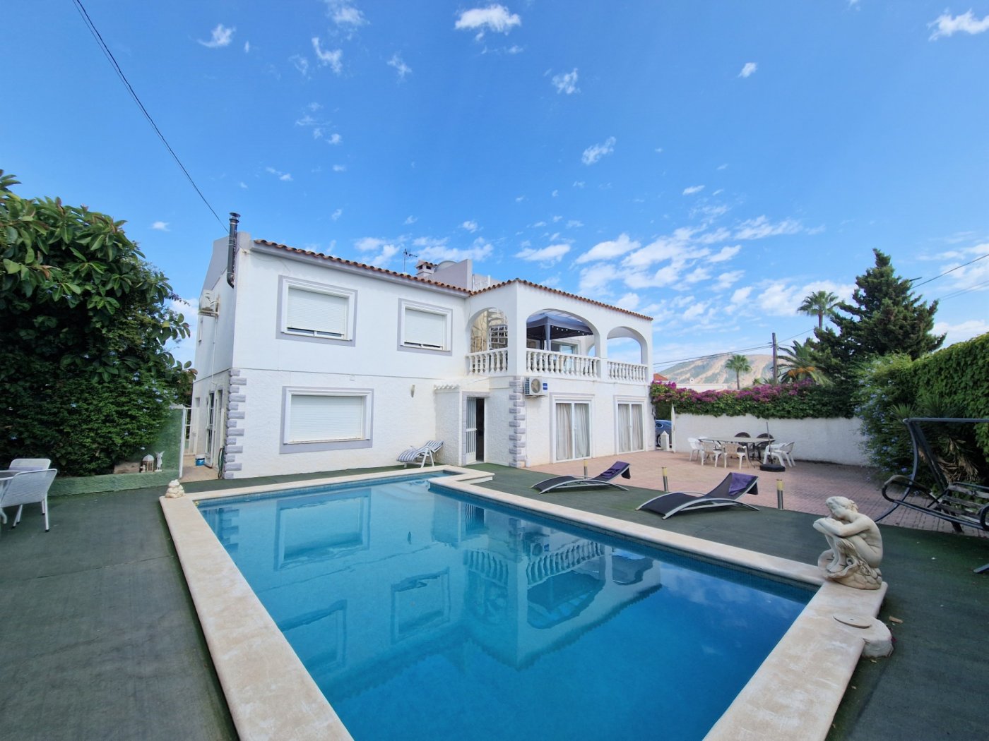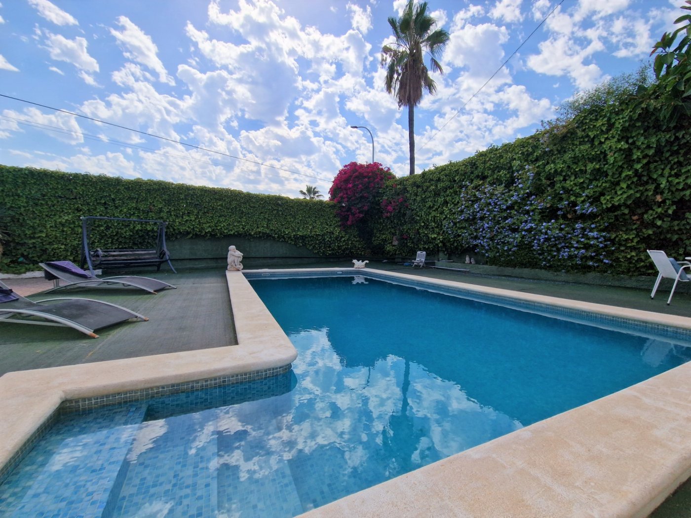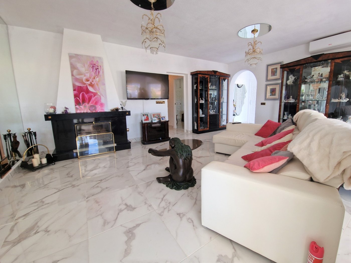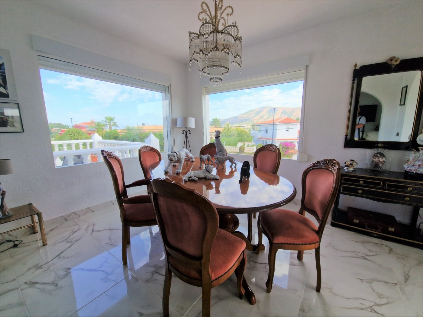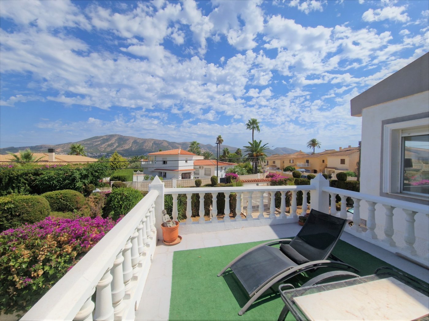 Spacious villa in excellent condition, completely renovated in 2020, located in a very quiet area near the town of Alfaz. It is distributed over two floors that could be two independent houses, if the kitchen were put back on the ground floor, a space that is currently a bedroom.~~The house has 5 bedrooms, 4 bathrooms, 2 living rooms, a large garage for 2 cars, a swimming pool, a built-in barbecue. The outdoor space is big enough to park 4 more cars.~~On the main floor there is a living room, an independent kitchen with access to the outside, 3 bedrooms, 2 bathrooms and a large laundry room. On the first floor there is a large living-dining room with a fireplace and access to two open terraces, 2 bedrooms and 2 bathrooms, one of them en suite. From the terrace-solarium there are fantastic views of the bay and the mountains.~~The house has a hot-cold air conditioning installation, is in perfect condition and ready to move into. Garden with a lot of privacy. Private pool 8×4.~Characteristics