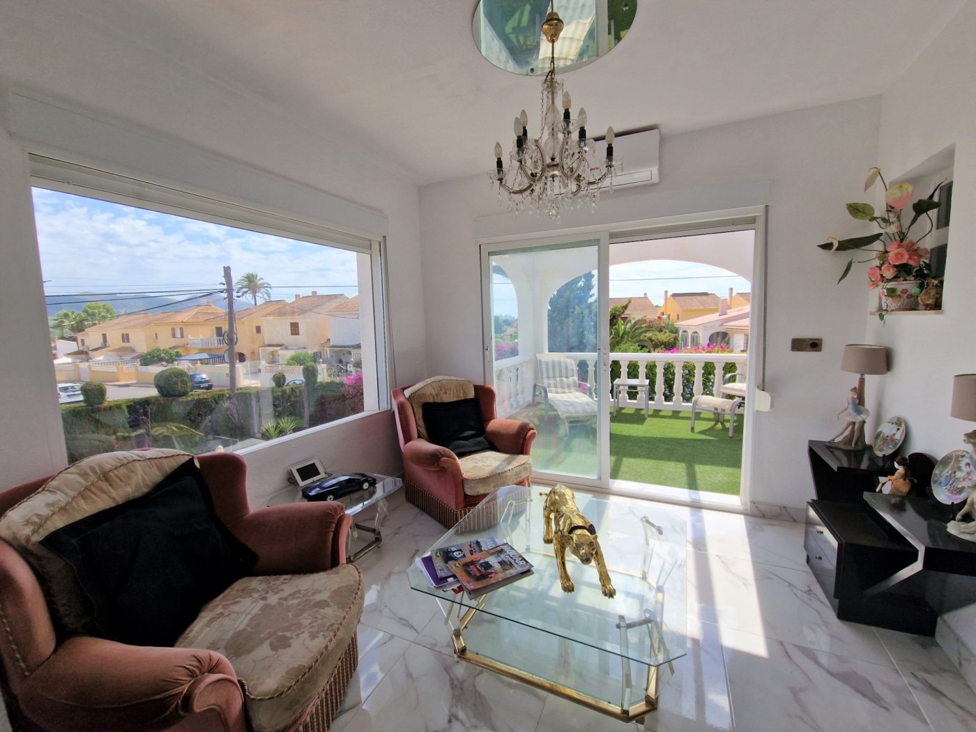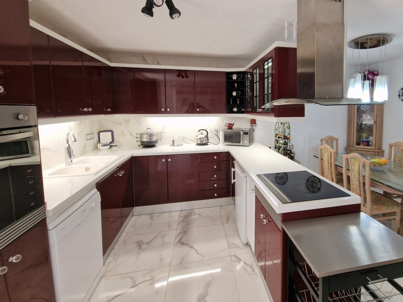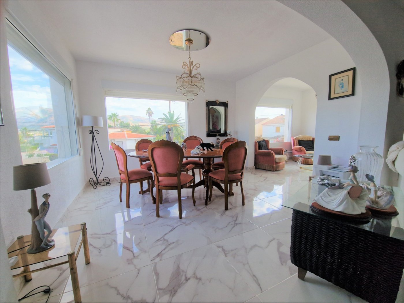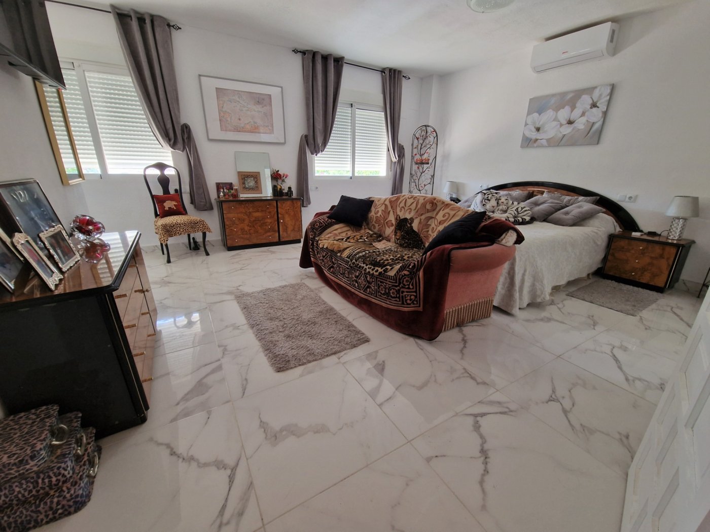 Spacious villa in excellent condition, completely renovated in 2020, located in a very quiet area near the town of Alfaz. It is distributed over two floors that could be two independent houses, if the kitchen were put back on the ground floor, a space that is currently a bedroom.~~The house has 5 bedrooms, 4 bathrooms, 2 living rooms, a large garage for 2 cars, a swimming pool, a built-in barbecue. The outdoor space is big enough to park 4 more cars.~~On the main floor there is a living room, an independent kitchen with access to the outside, 3 bedrooms, 2 bathrooms and a large laundry room. On the first floor there is a large living-dining room with a fireplace and access to two open terraces, 2 bedrooms and 2 bathrooms, one of them en suite. From the terrace-solarium there are fantastic views of the bay and the mountains.~~The house has a hot-cold air conditioning installation, is in perfect condition and ready to move into. Garden with a lot of privacy. Private pool 8×4.~Characteristics