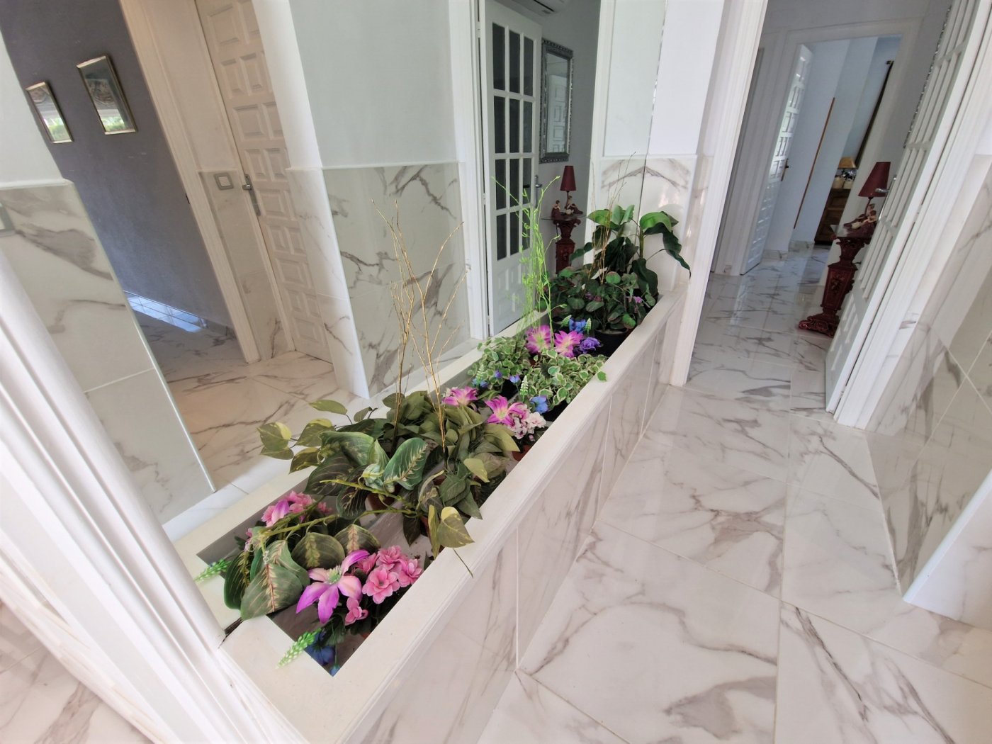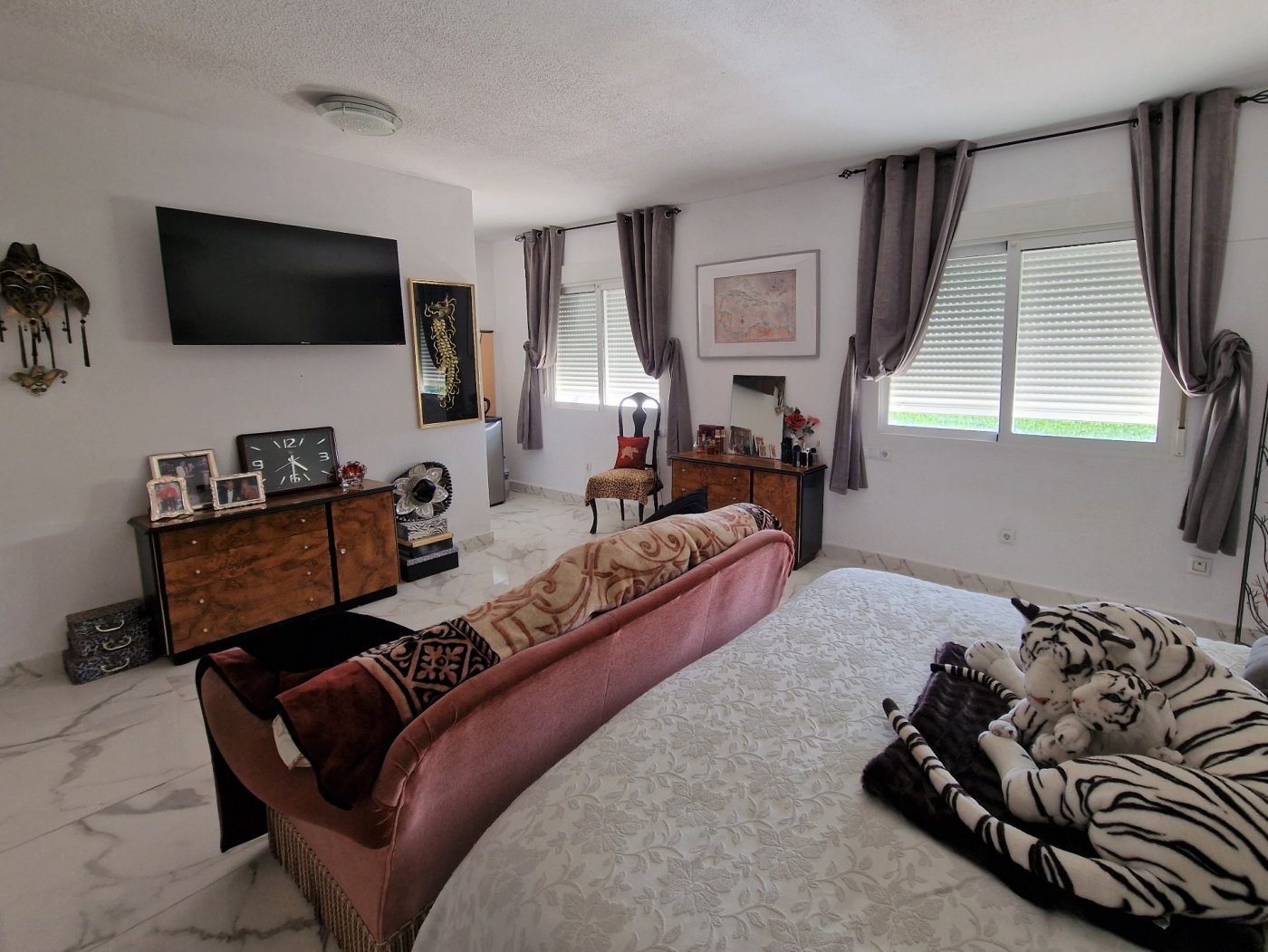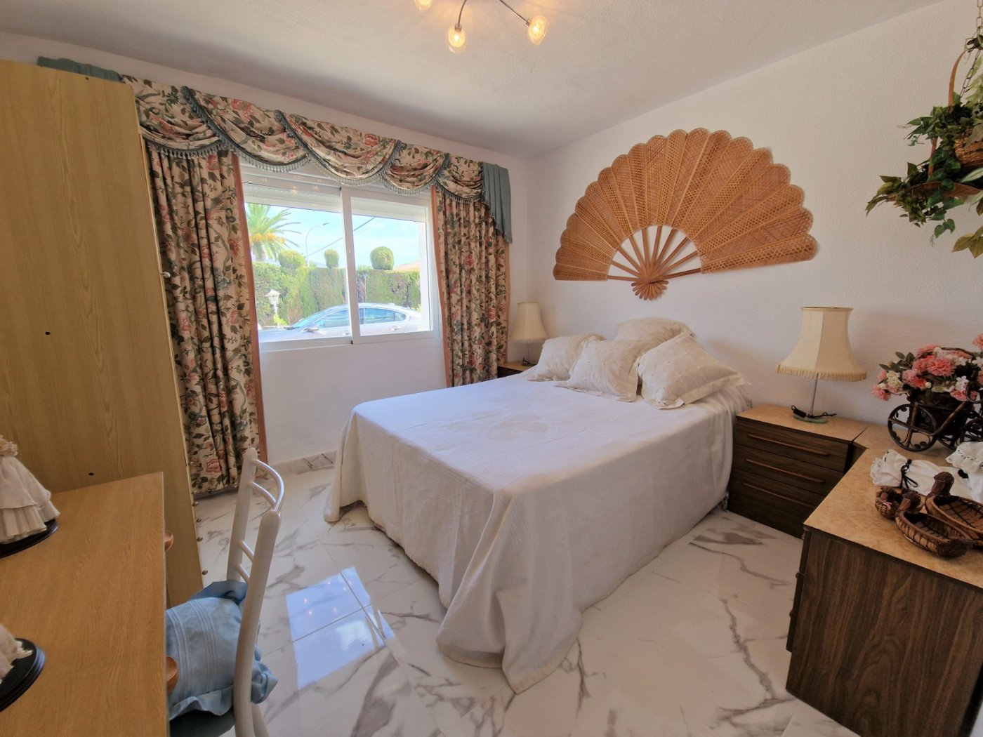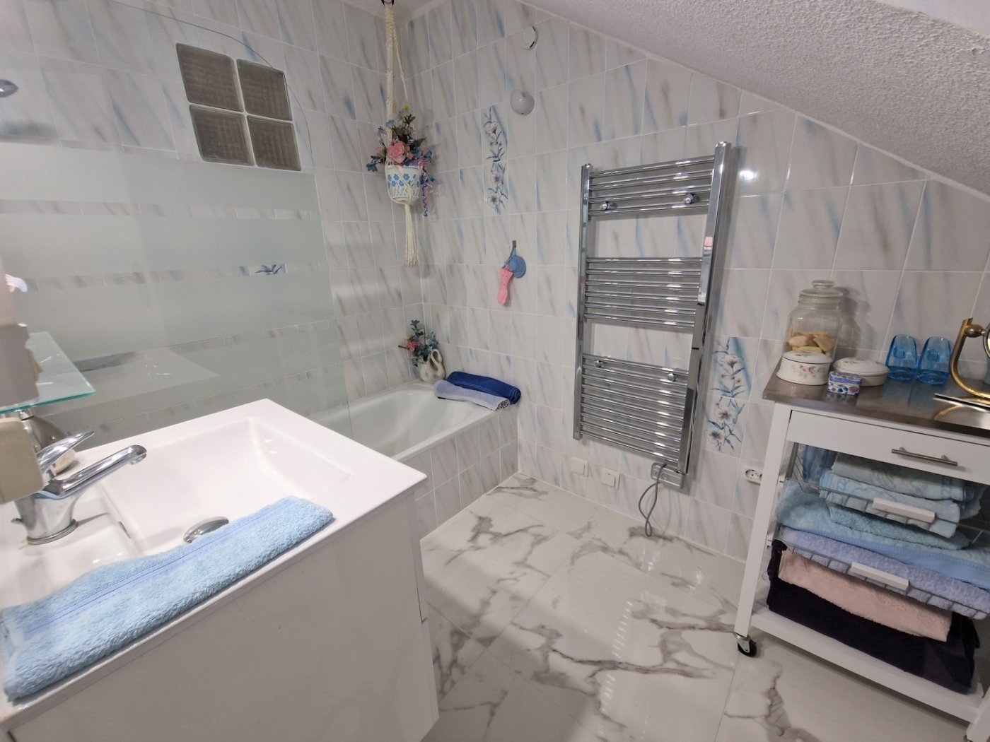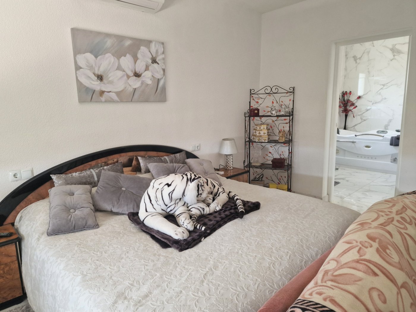 Spacious villa in excellent condition, completely renovated in 2020, located in a very quiet area near the town of Alfaz. It is distributed over two floors that could be two independent houses, if the kitchen were put back on the ground floor, a space that is currently a bedroom.~~The house has 5 bedrooms, 4 bathrooms, 2 living rooms, a large garage for 2 cars, a swimming pool, a built-in barbecue. The outdoor space is big enough to park 4 more cars.~~On the main floor there is a living room, an independent kitchen with access to the outside, 3 bedrooms, 2 bathrooms and a large laundry room. On the first floor there is a large living-dining room with a fireplace and access to two open terraces, 2 bedrooms and 2 bathrooms, one of them en suite. From the terrace-solarium there are fantastic views of the bay and the mountains.~~The house has a hot-cold air conditioning installation, is in perfect condition and ready to move into. Garden with a lot of privacy. Private pool 8×4.~Characteristics