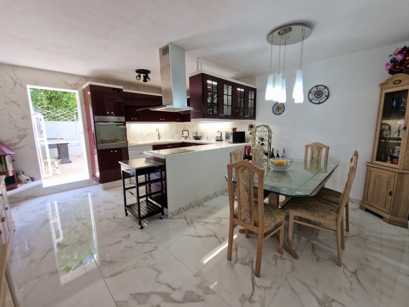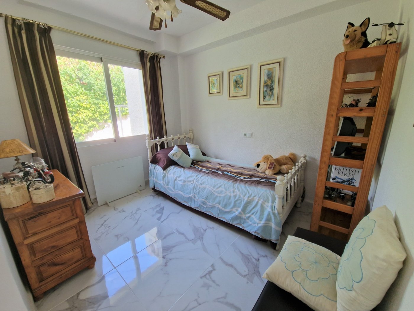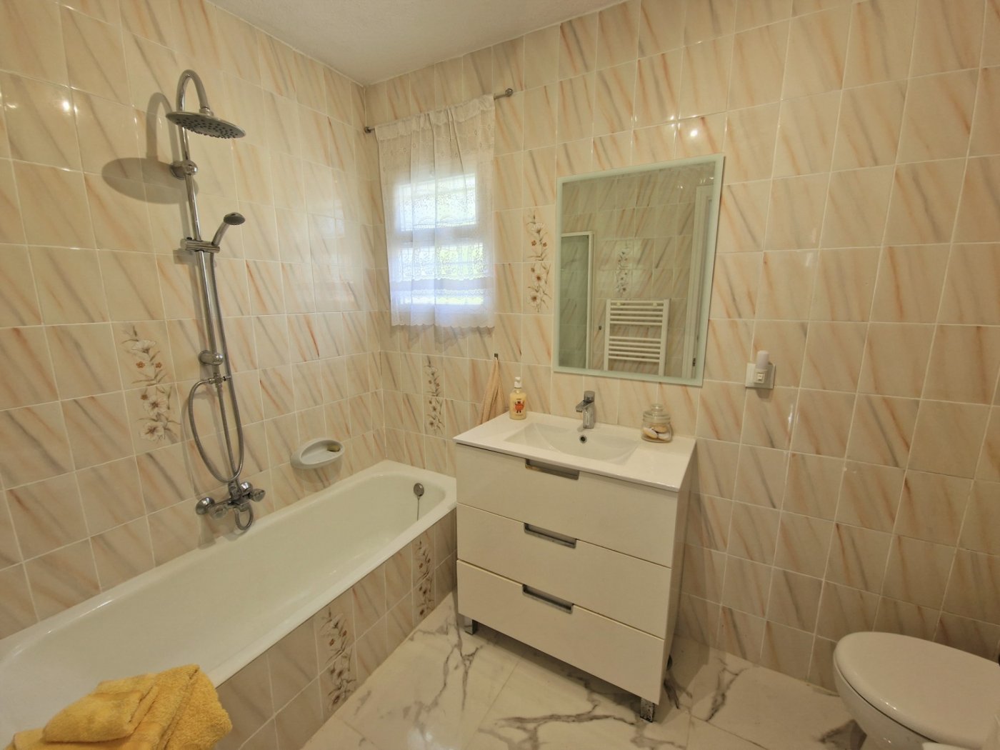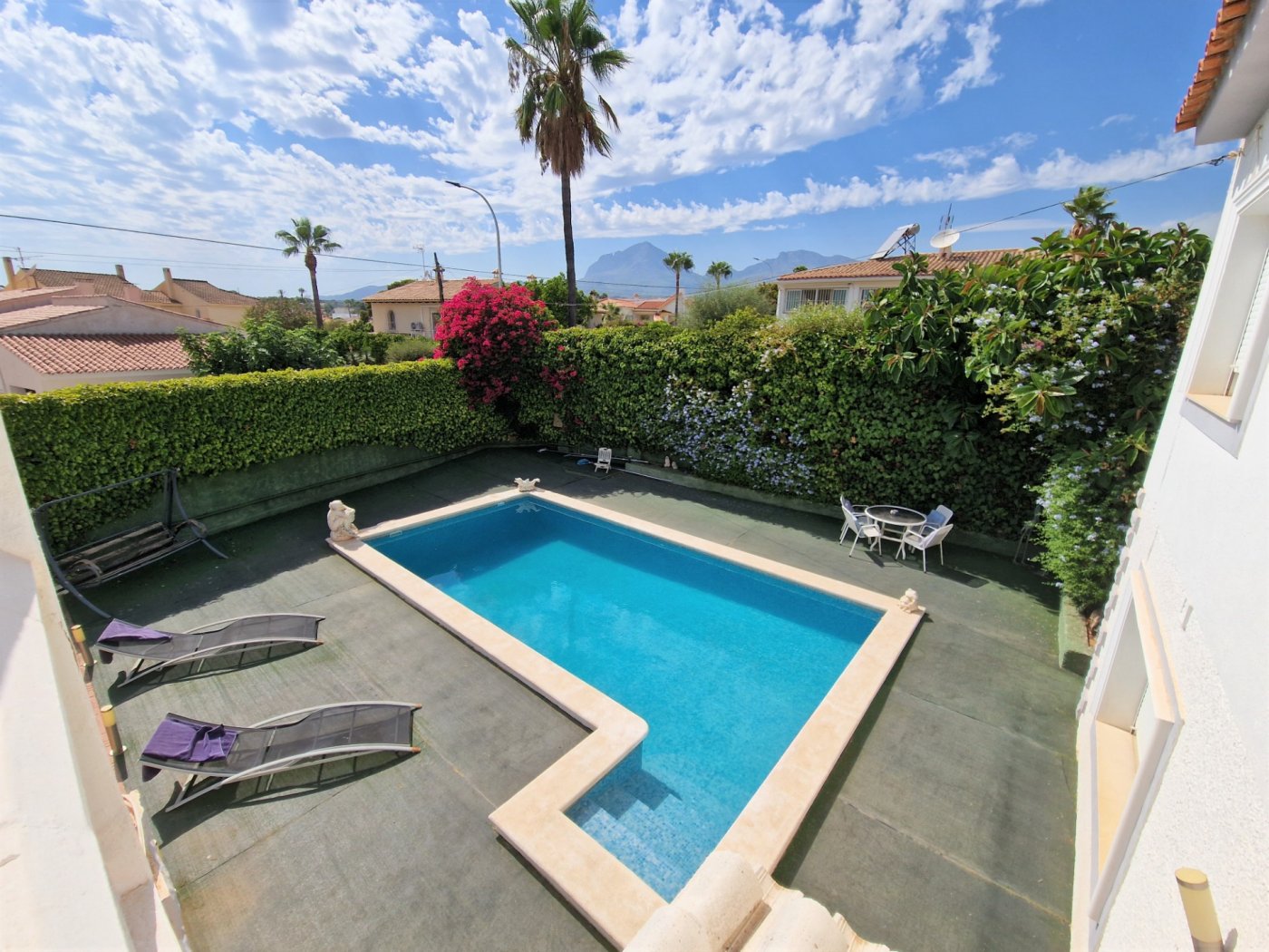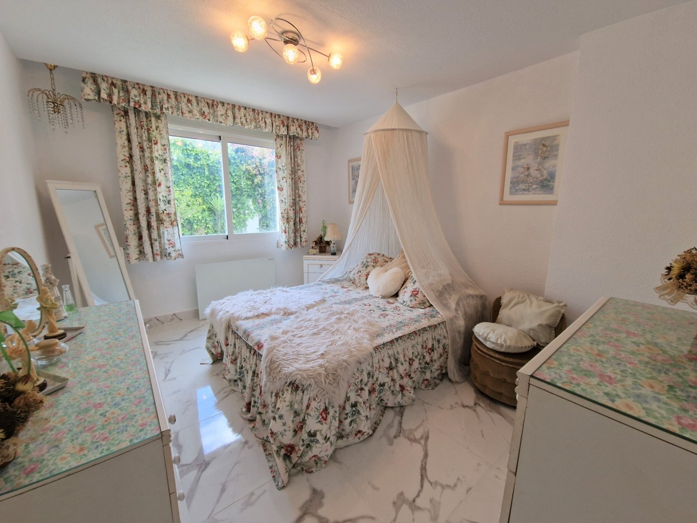 Spacious villa in excellent condition, completely renovated in 2020, located in a very quiet area near the town of Alfaz. It is distributed over two floors that could be two independent houses, if the kitchen were put back on the ground floor, a space that is currently a bedroom.~~The house has 5 bedrooms, 4 bathrooms, 2 living rooms, a large garage for 2 cars, a swimming pool, a built-in barbecue. The outdoor space is big enough to park 4 more cars.~~On the main floor there is a living room, an independent kitchen with access to the outside, 3 bedrooms, 2 bathrooms and a large laundry room. On the first floor there is a large living-dining room with a fireplace and access to two open terraces, 2 bedrooms and 2 bathrooms, one of them en suite. From the terrace-solarium there are fantastic views of the bay and the mountains.~~The house has a hot-cold air conditioning installation, is in perfect condition and ready to move into. Garden with a lot of privacy. Private pool 8×4.~Characteristics