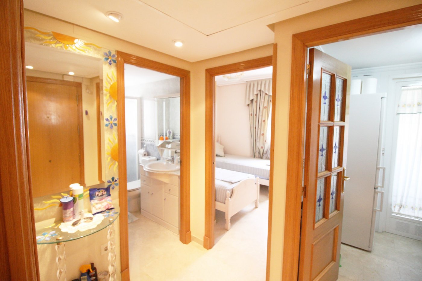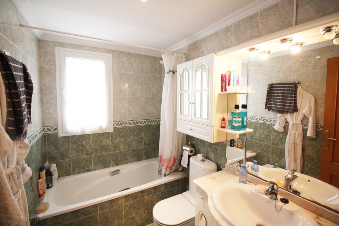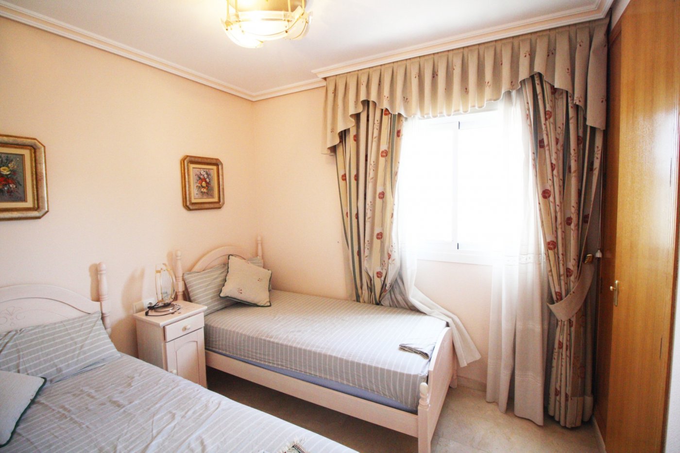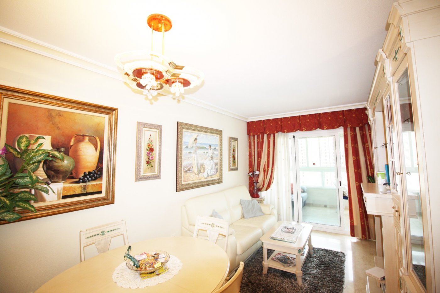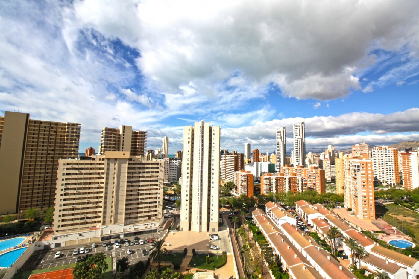 Beautiful 2-bedroom apartment for sale in a magnificent gated complex in lower Rincon de Loix, Benidorm. ~ ~ Completely flat area with everything you need right on your doorstep and very close to the Levante beach! The apartment 2 double bedrooms, 1 bathroom en suite to the master bedroom, 1 shower room, a separate fitted & equipped kitchen with a utility room, and a good-size living area which goes out to a nice glazed balcony with lovely views of Benidorm. ~ ~ The apartment has integrated air conditioning and comes with allocated parking space. The complex is one of the best in the area and benefits from a large open-air swimming pool, kids’ pool, green areas with a bar, a heated swimming pool, gym, several tennis courts and mini golf. You are just a 7-min walk to the Levante beach and have all bars restaurants, shops, and public transport on your doorstep.~Characteristics