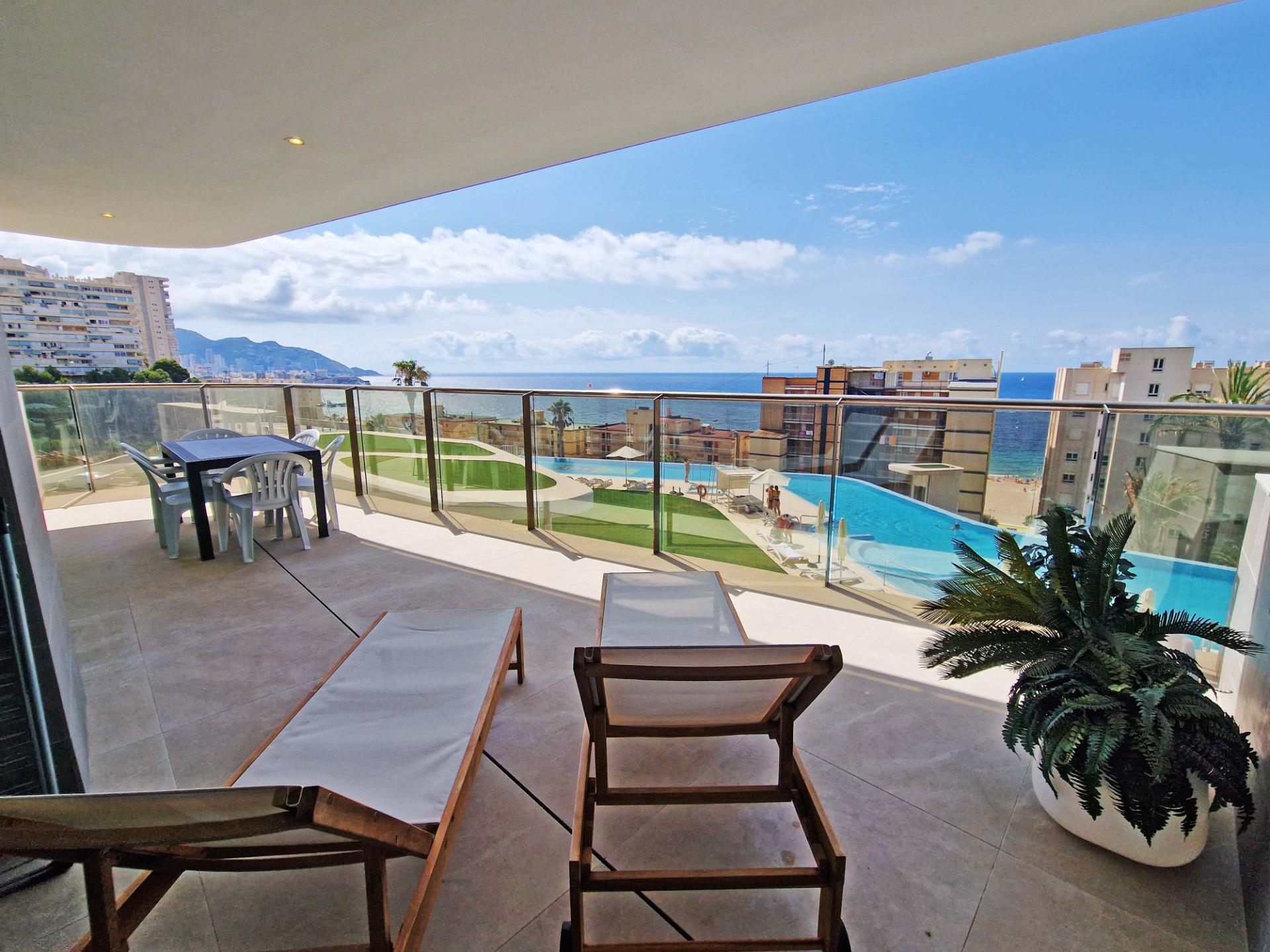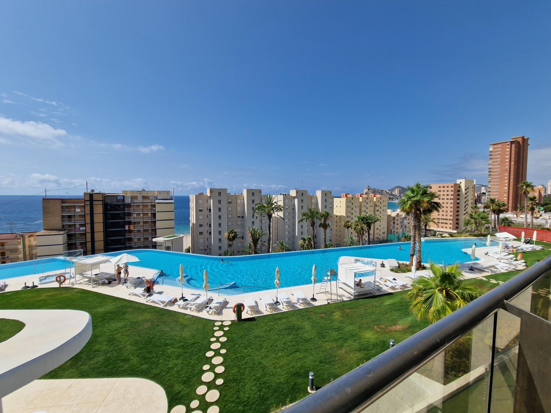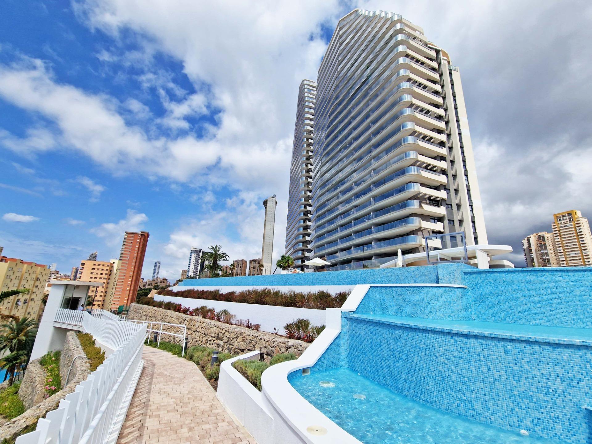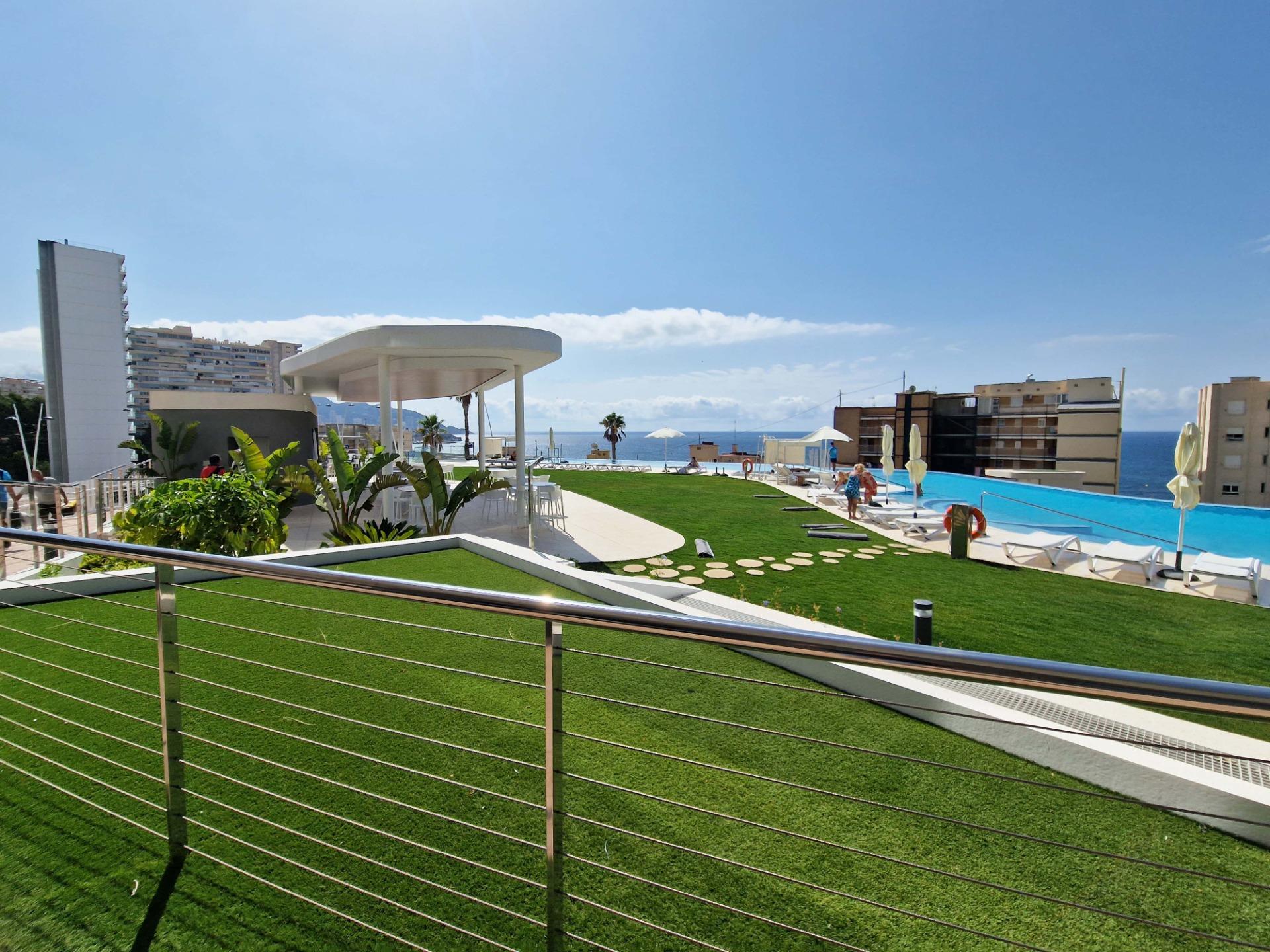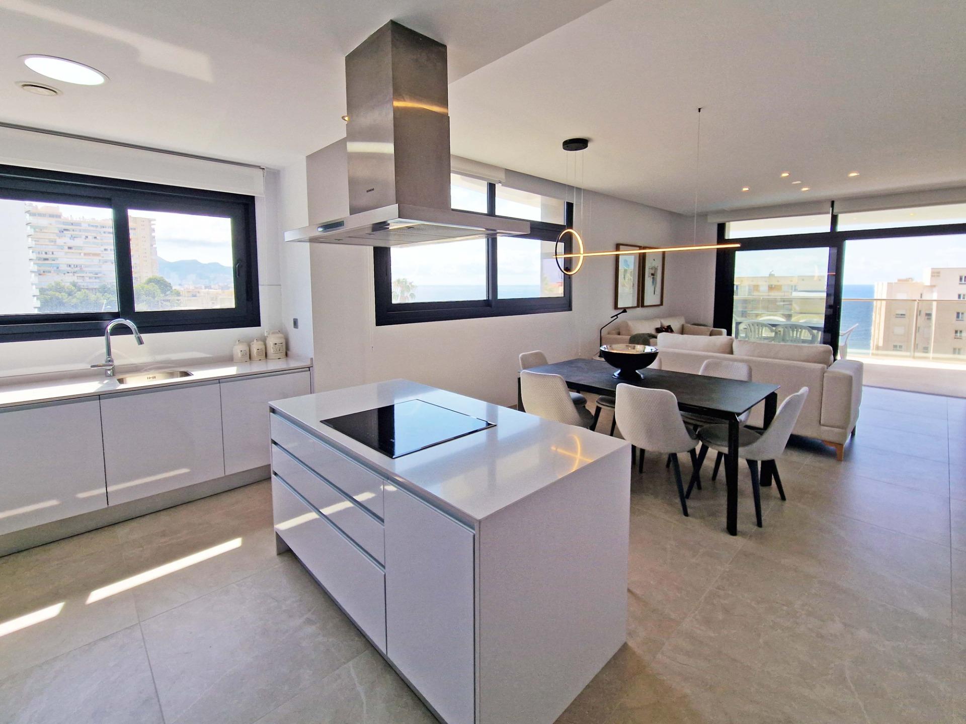 Magnificent large apartment for sale in one of the most emblematic residential complexes of Benidorm, Sunset Cliffs, based on the second line of the Poniente beach and a short distance to all amenities. ~~The property has 3 double bedrooms, 2 bathrooms, a fully equipped kitchen with an island, and a large living/dining area with access to an open terrace with fantastic sea views. The apartment is sold completely furnished and ready to move into. It comes also with two storage rooms and a private parking space in the underground parking.~~The residential complex Sunset Cliffs has over 12.000 sq m of communal areas distributed in different heights, ensuring views of the sea from all points. The communal areas include heated pool, adult pool, kids' pool with games area, panoramic gym, jacuzzis, chill-out area integrated into the pool, kids' Club room, video game room, and a range of sports grounds.~~Characteristics