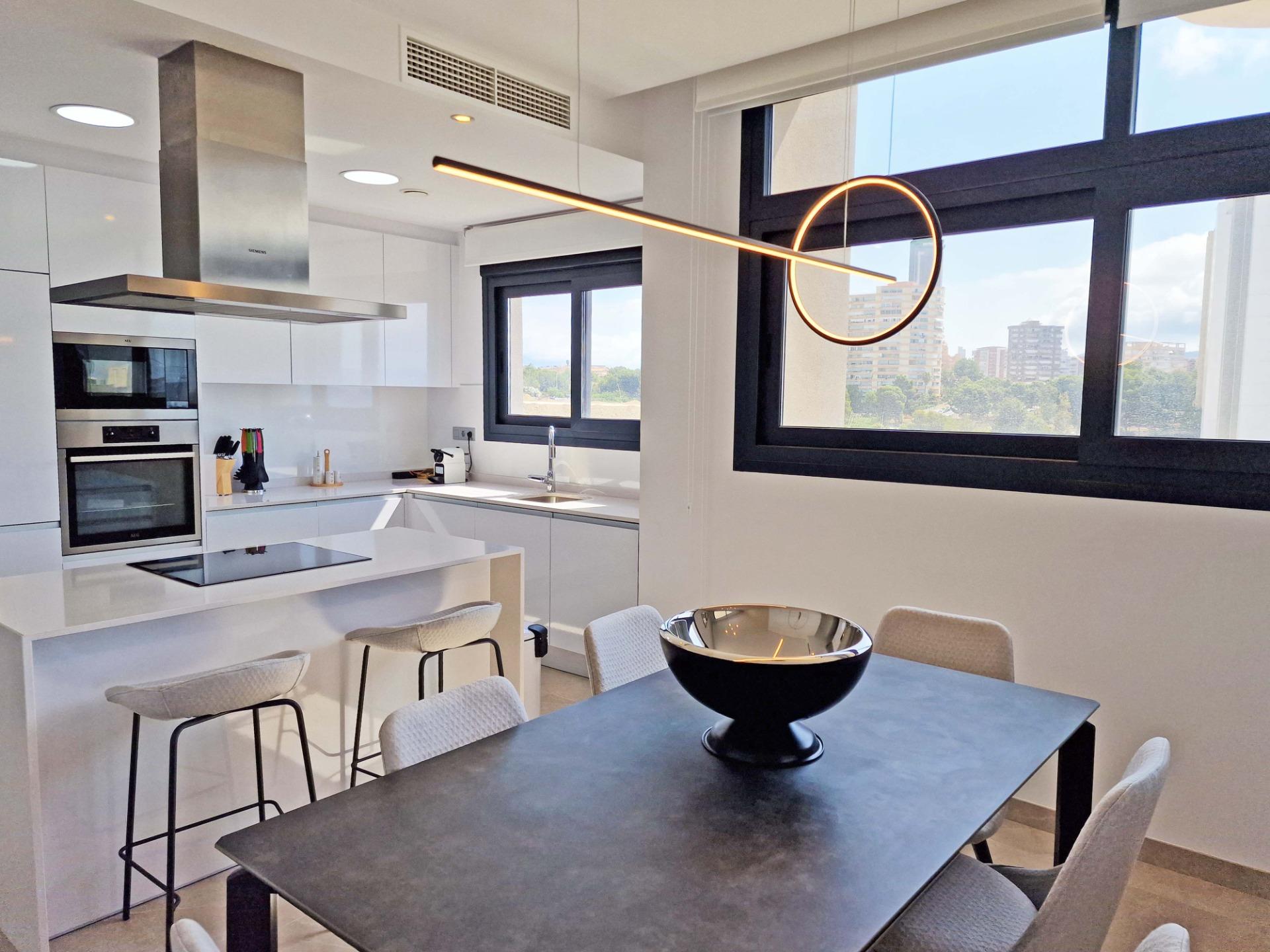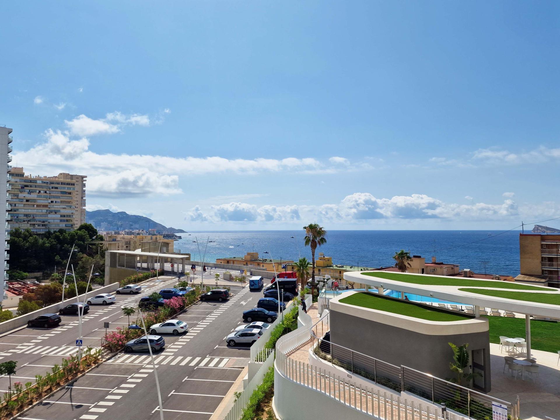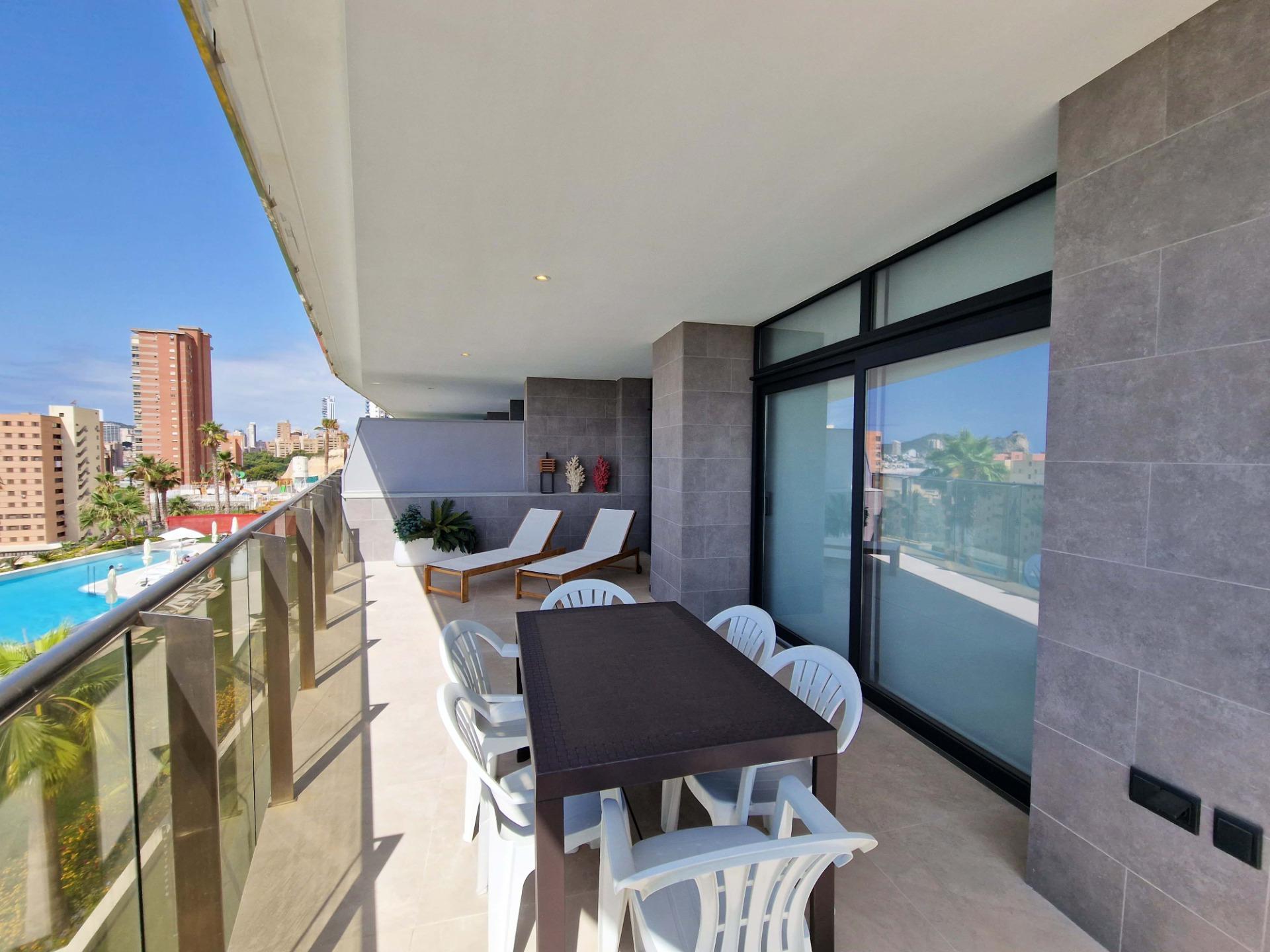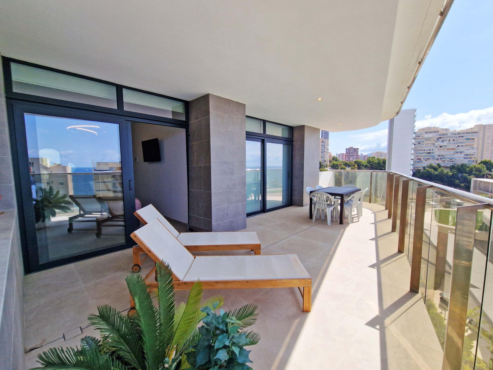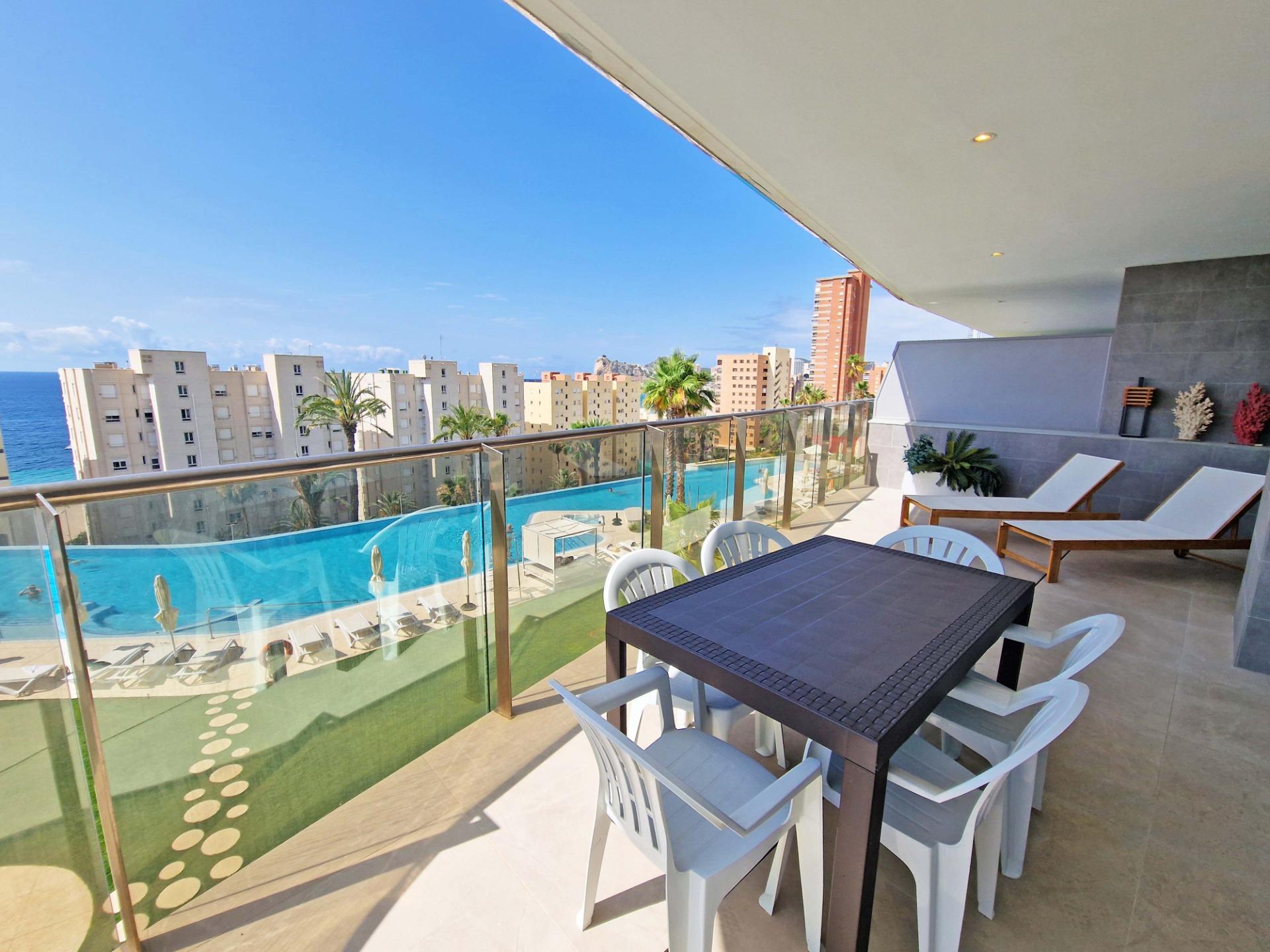 Magnificent large apartment for sale in one of the most emblematic residential complexes of Benidorm, Sunset Cliffs, based on the second line of the Poniente beach and a short distance to all amenities. ~~The property has 3 double bedrooms, 2 bathrooms, a fully equipped kitchen with an island, and a large living/dining area with access to an open terrace with fantastic sea views. The apartment is sold completely furnished and ready to move into. It comes also with two storage rooms and a private parking space in the underground parking.~~The residential complex Sunset Cliffs has over 12.000 sq m of communal areas distributed in different heights, ensuring views of the sea from all points. The communal areas include heated pool, adult pool, kids' pool with games area, panoramic gym, jacuzzis, chill-out area integrated into the pool, kids' Club room, video game room, and a range of sports grounds.~~Characteristics