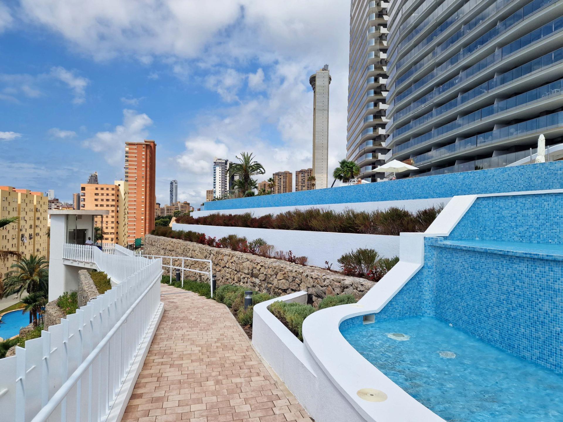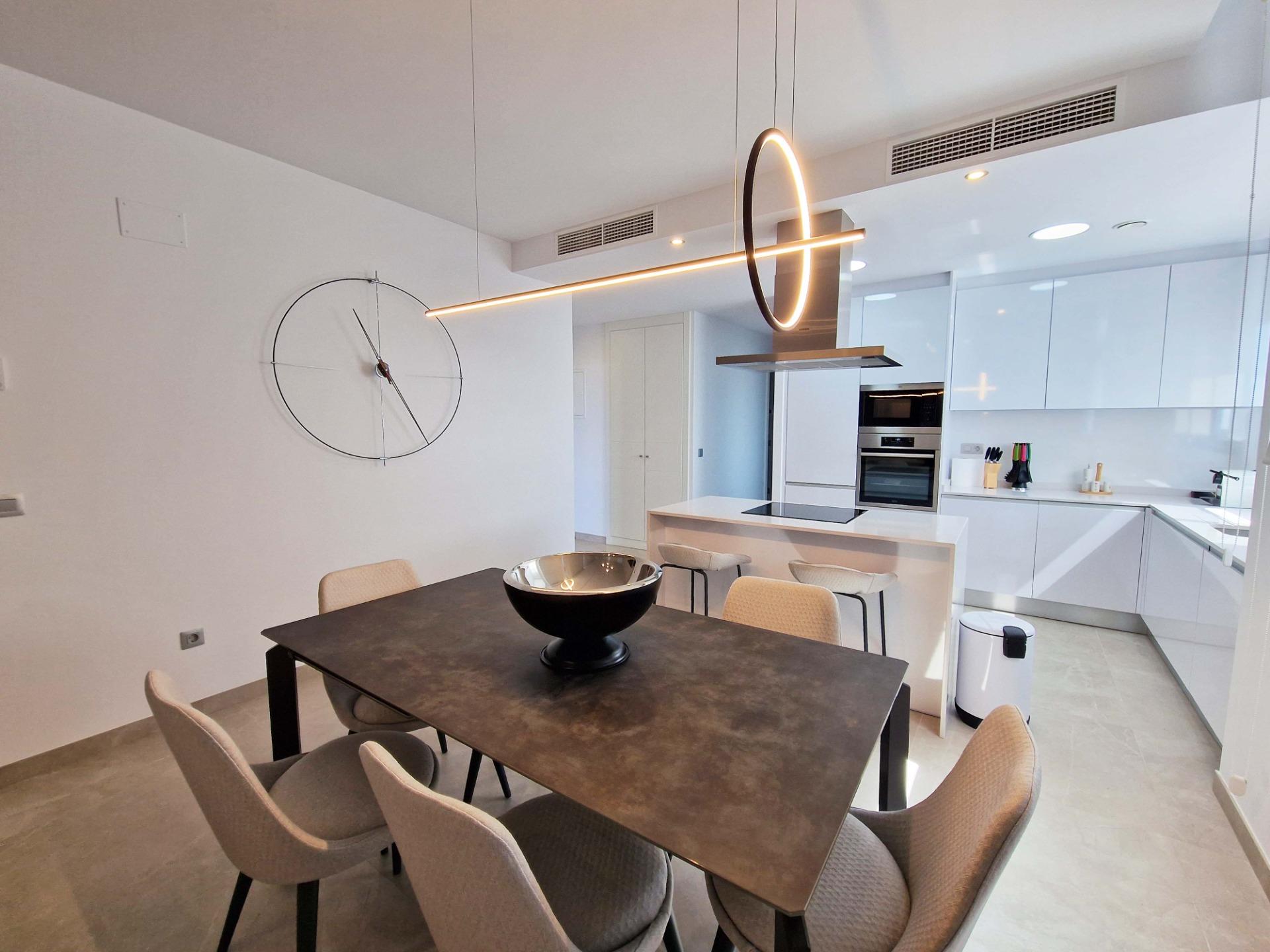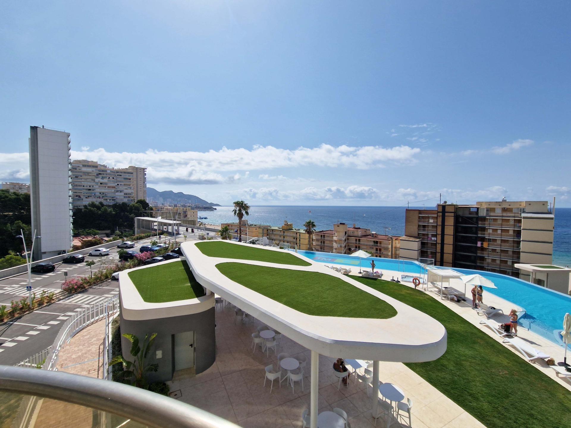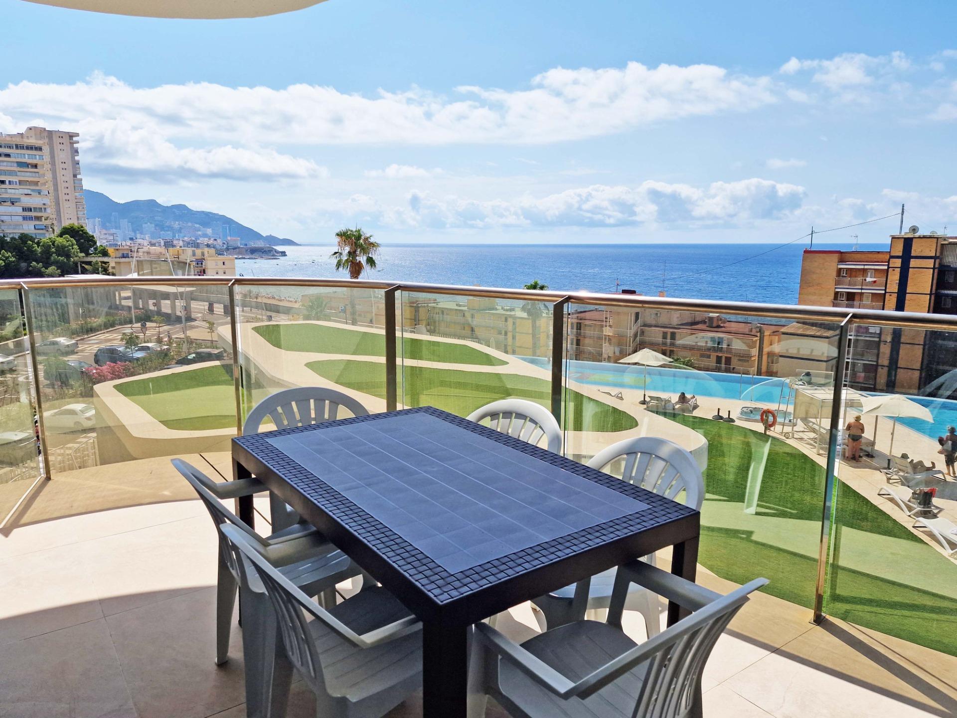 Magnificent large apartment for sale in one of the most emblematic residential complexes of Benidorm, Sunset Cliffs, based on the second line of the Poniente beach and a short distance to all amenities. ~~The property has 3 double bedrooms, 2 bathrooms, a fully equipped kitchen with an island, and a large living/dining area with access to an open terrace with fantastic sea views. The apartment is sold completely furnished and ready to move into. It comes also with two storage rooms and a private parking space in the underground parking.~~The residential complex Sunset Cliffs has over 12.000 sq m of communal areas distributed in different heights, ensuring views of the sea from all points. The communal areas include heated pool, adult pool, kids' pool with games area, panoramic gym, jacuzzis, chill-out area integrated into the pool, kids' Club room, video game room, and a range of sports grounds.~~Characteristics
