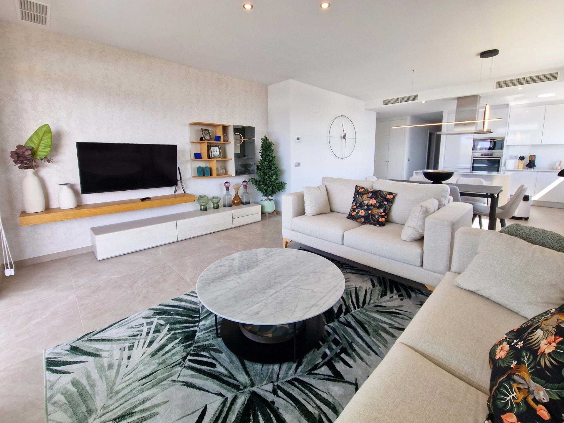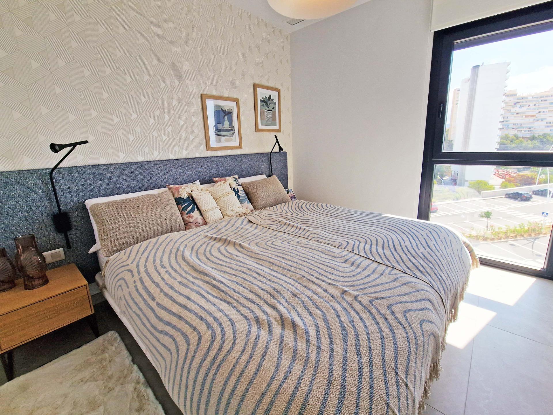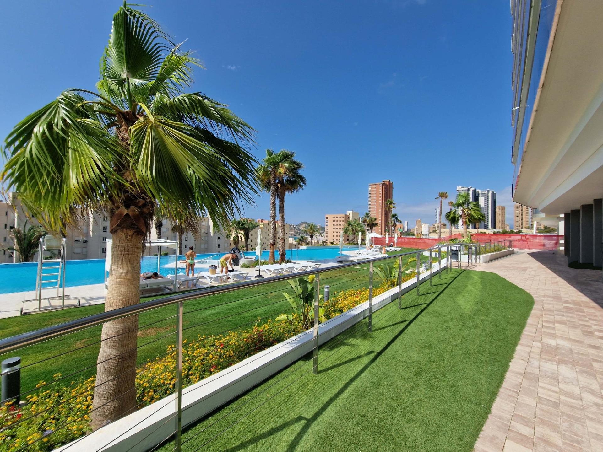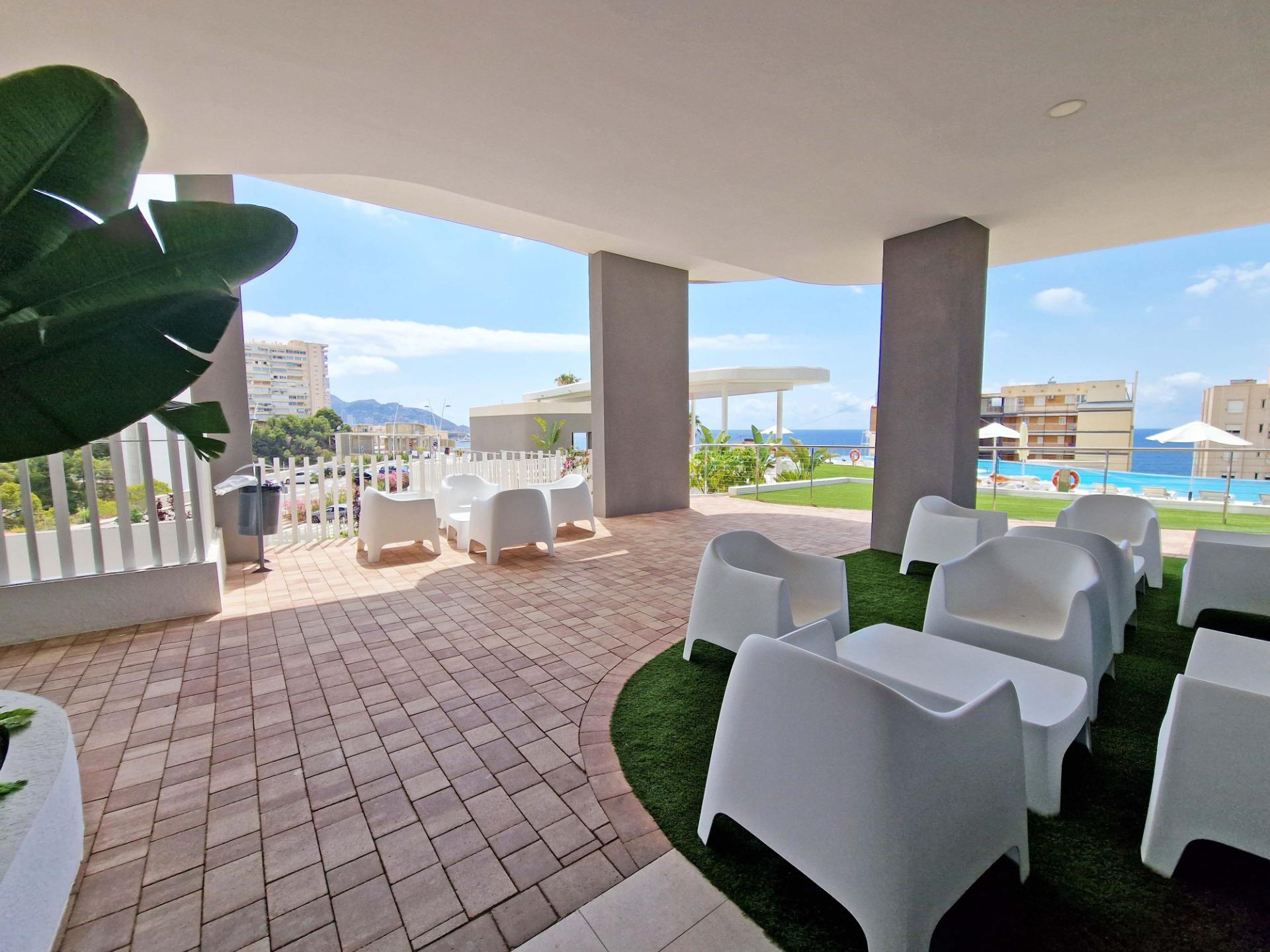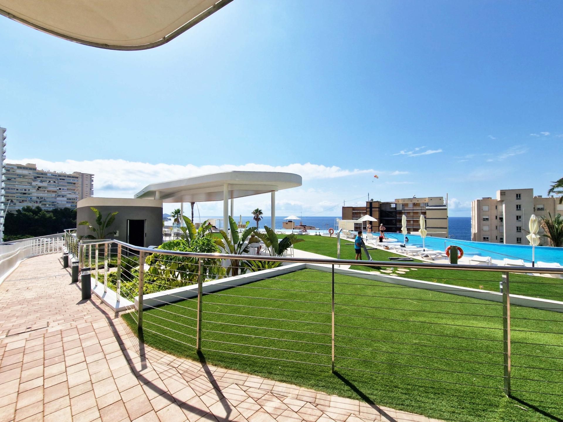 Magnificent large apartment for sale in one of the most emblematic residential complexes of Benidorm, Sunset Cliffs, based on the second line of the Poniente beach and a short distance to all amenities. ~~The property has 3 double bedrooms, 2 bathrooms, a fully equipped kitchen with an island, and a large living/dining area with access to an open terrace with fantastic sea views. The apartment is sold completely furnished and ready to move into. It comes also with two storage rooms and a private parking space in the underground parking.~~The residential complex Sunset Cliffs has over 12.000 sq m of communal areas distributed in different heights, ensuring views of the sea from all points. The communal areas include heated pool, adult pool, kids' pool with games area, panoramic gym, jacuzzis, chill-out area integrated into the pool, kids' Club room, video game room, and a range of sports grounds.~~Characteristics