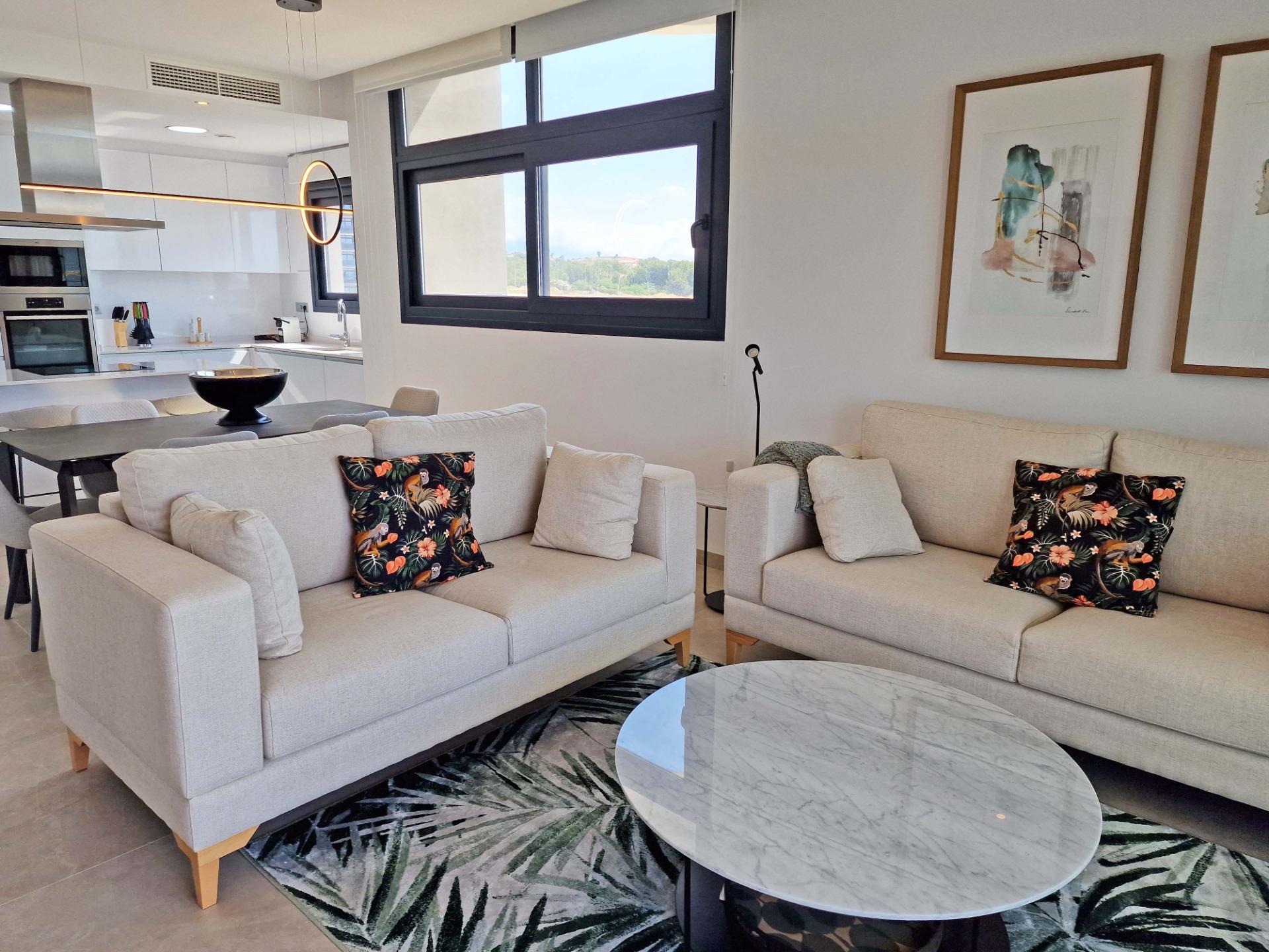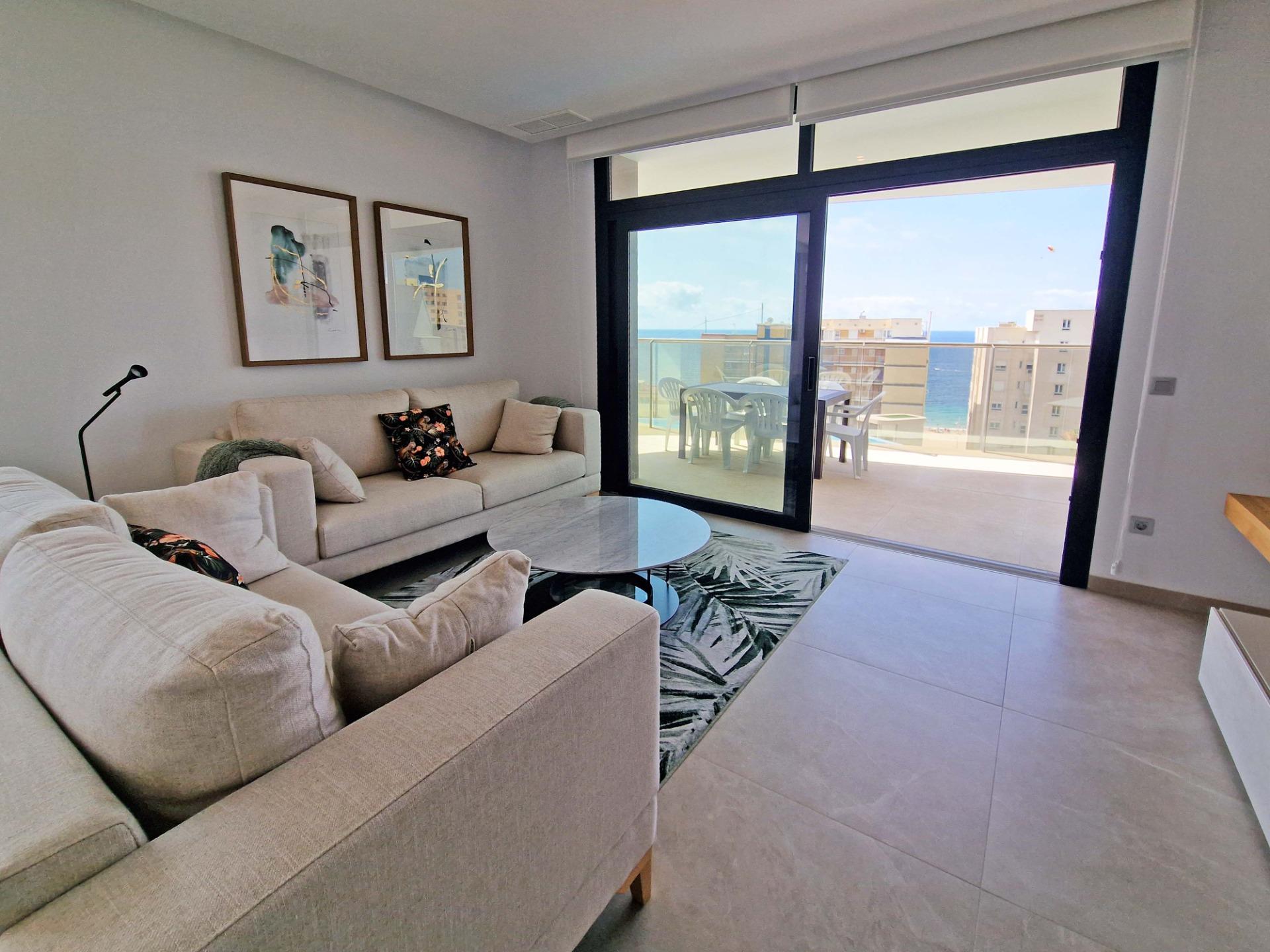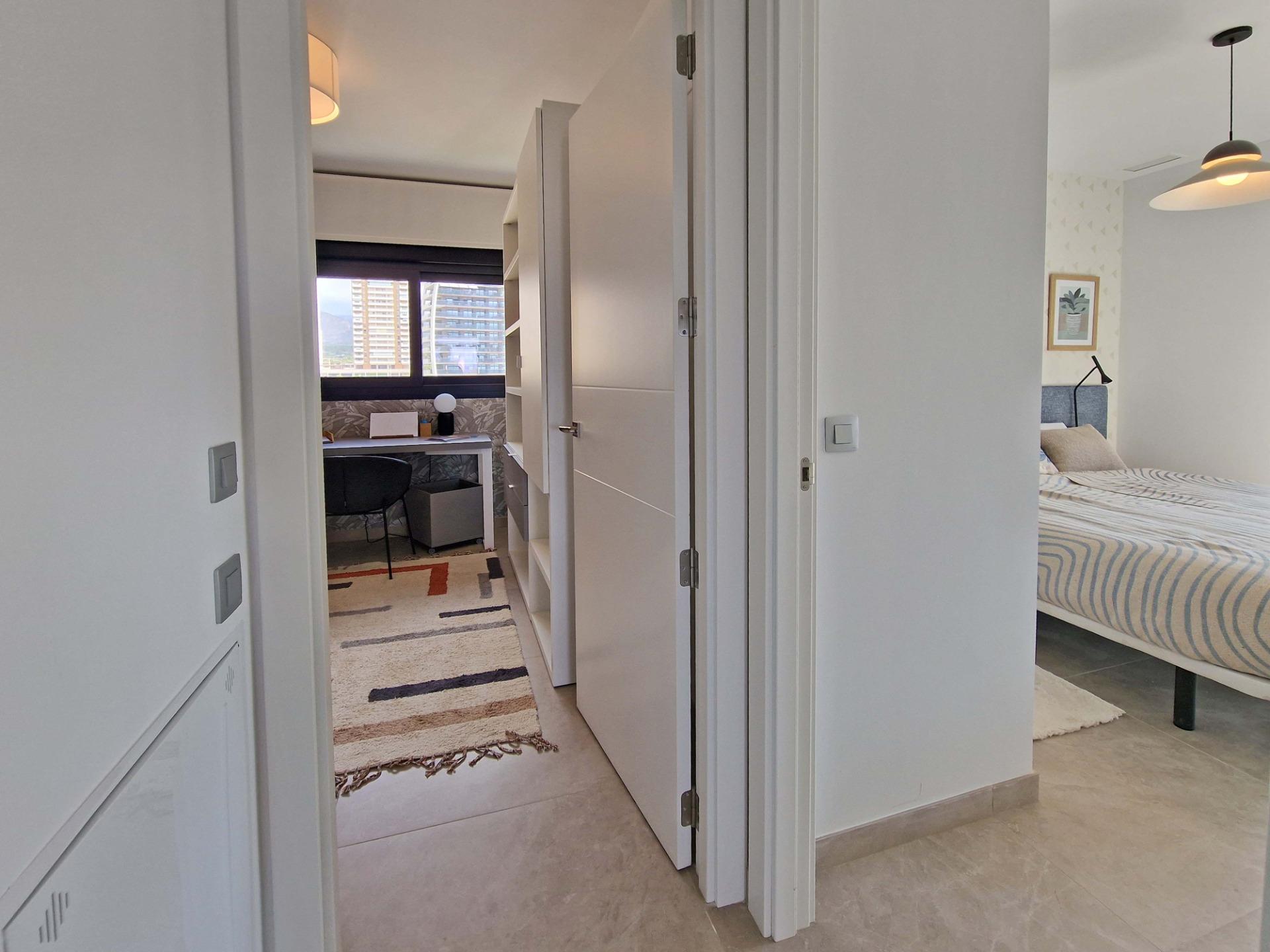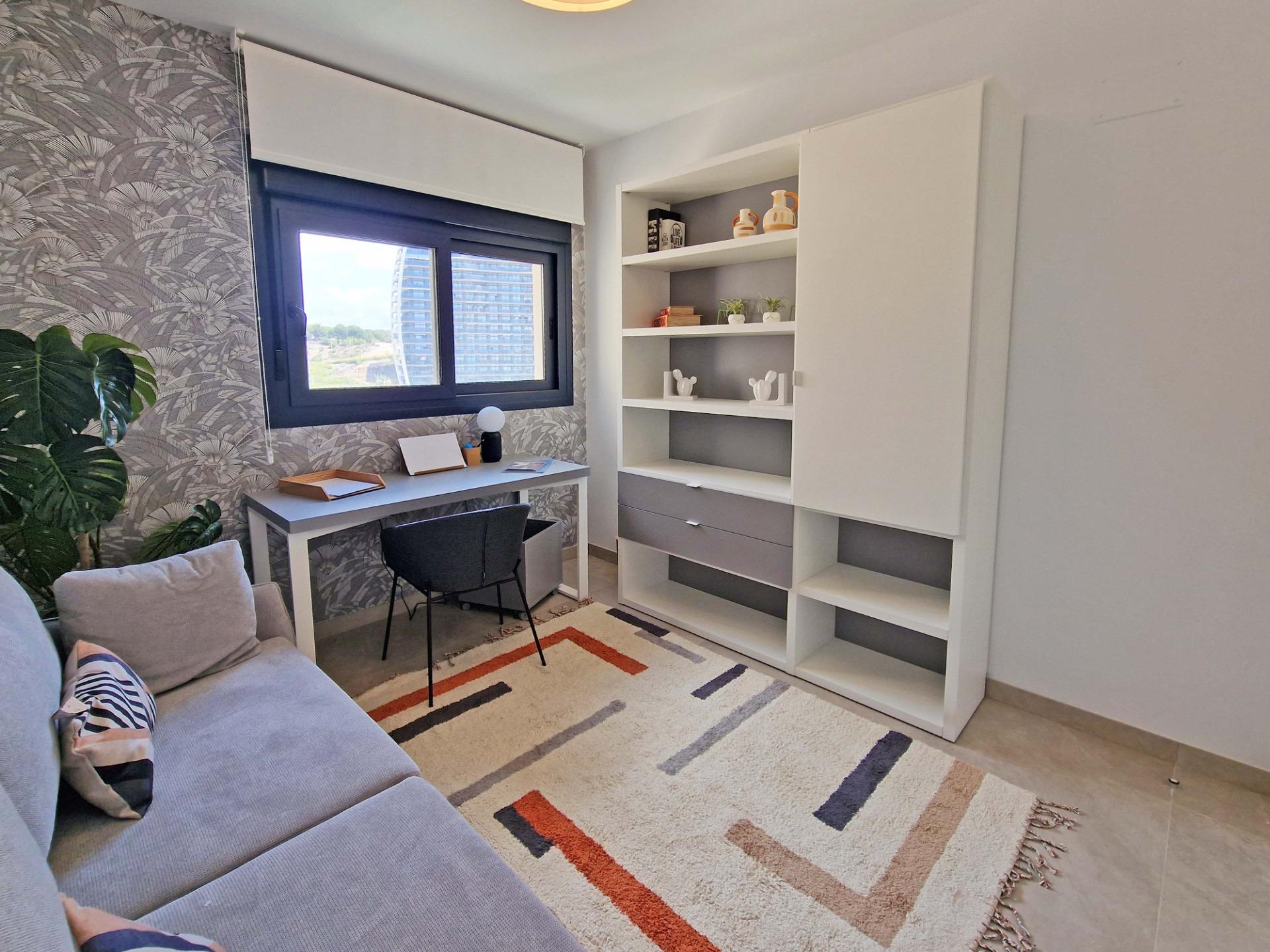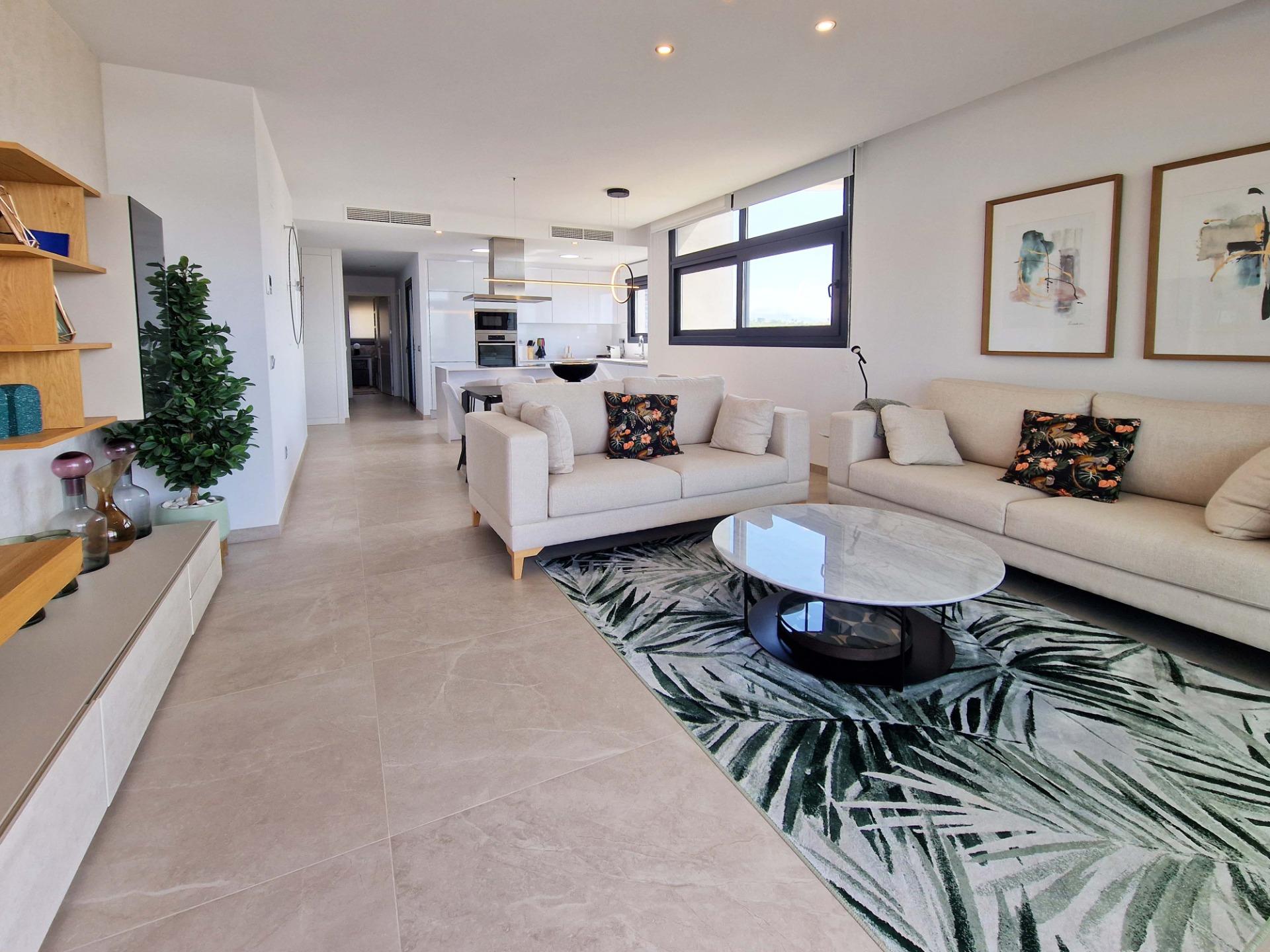 Magnificent large apartment for sale in one of the most emblematic residential complexes of Benidorm, Sunset Cliffs, based on the second line of the Poniente beach and a short distance to all amenities. ~~The property has 3 double bedrooms, 2 bathrooms, a fully equipped kitchen with an island, and a large living/dining area with access to an open terrace with fantastic sea views. The apartment is sold completely furnished and ready to move into. It comes also with two storage rooms and a private parking space in the underground parking.~~The residential complex Sunset Cliffs has over 12.000 sq m of communal areas distributed in different heights, ensuring views of the sea from all points. The communal areas include heated pool, adult pool, kids' pool with games area, panoramic gym, jacuzzis, chill-out area integrated into the pool, kids' Club room, video game room, and a range of sports grounds.~~Characteristics