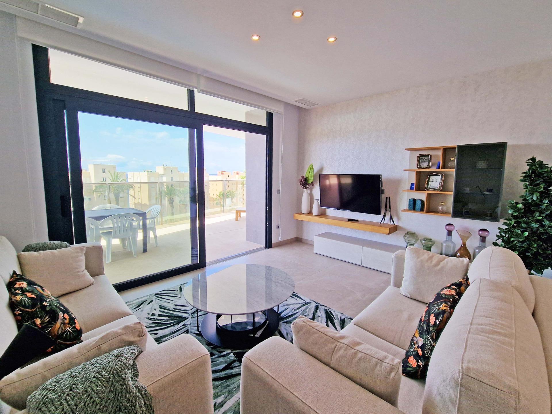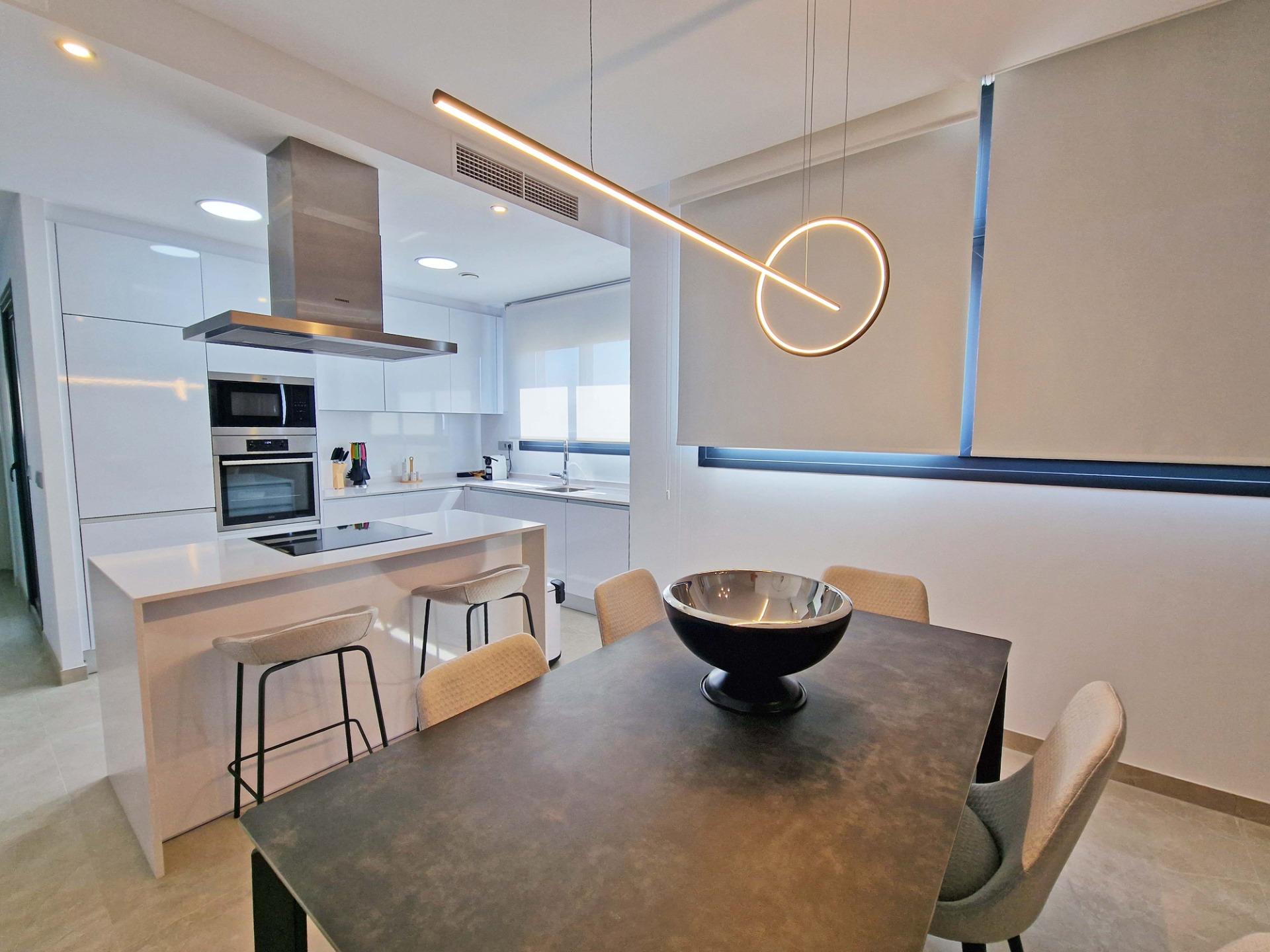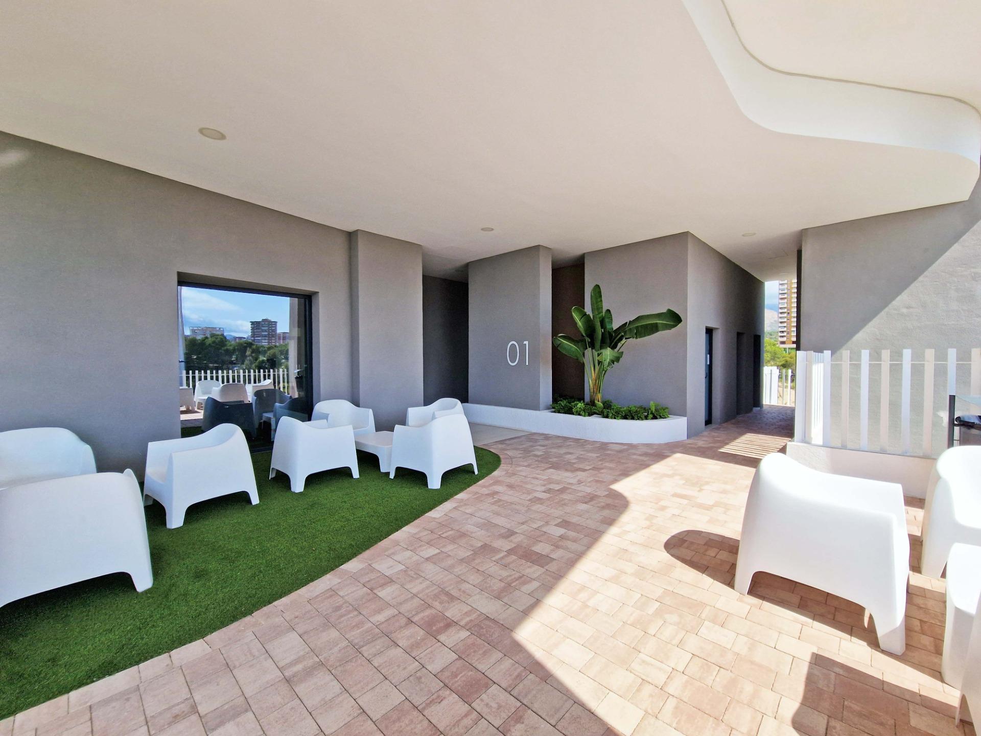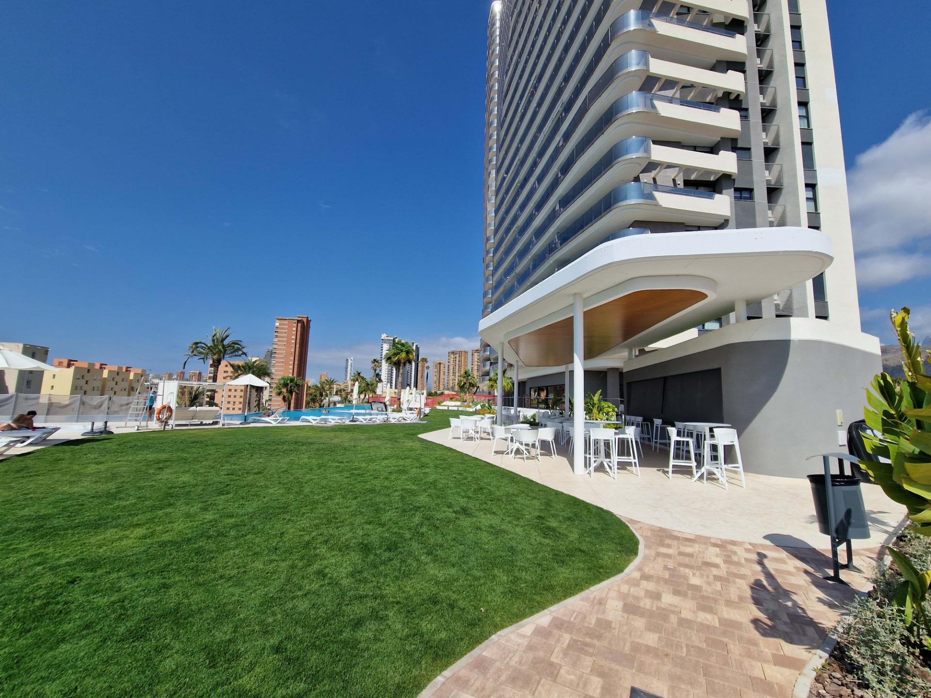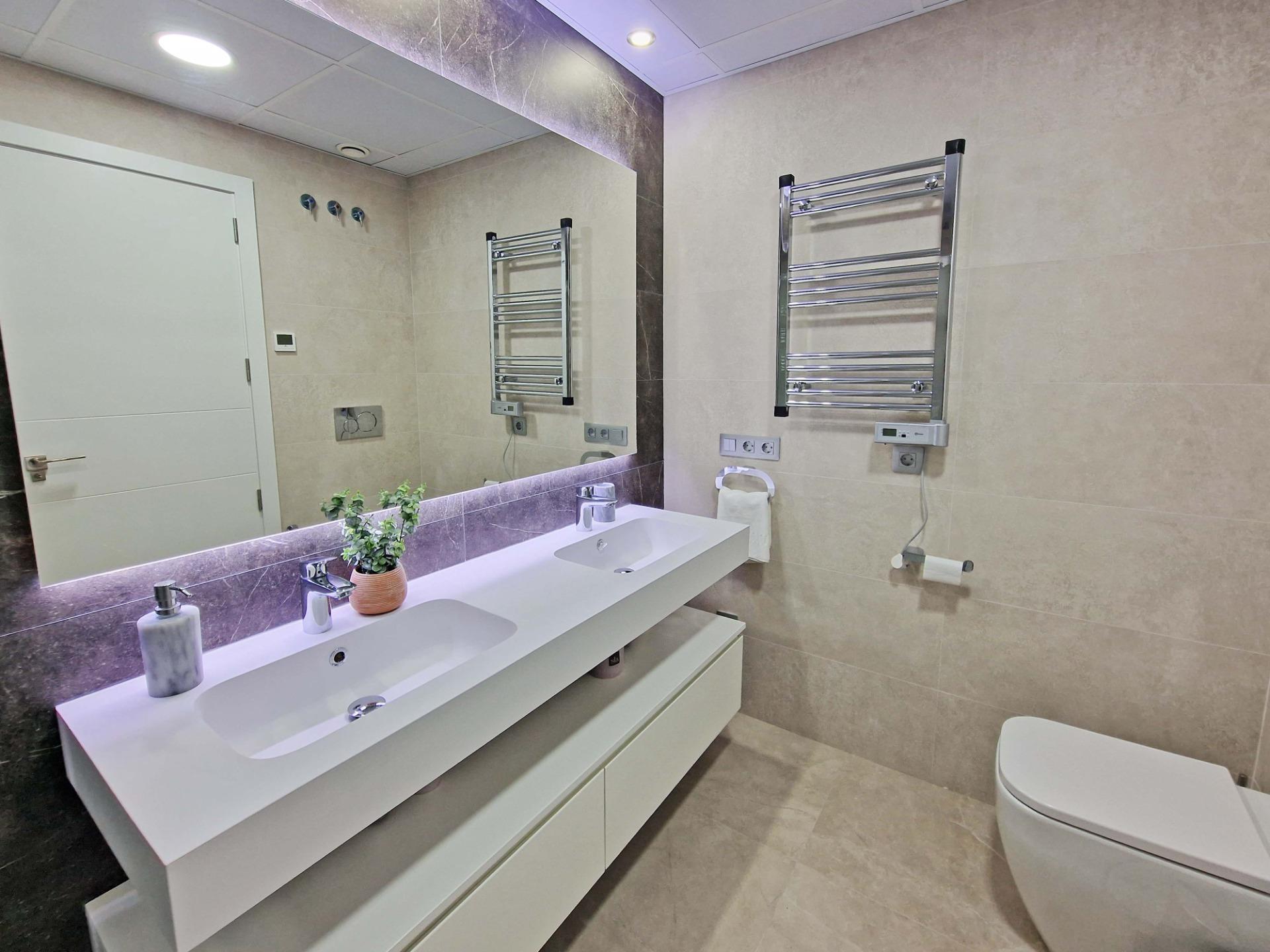 Magnificent large apartment for sale in one of the most emblematic residential complexes of Benidorm, Sunset Cliffs, based on the second line of the Poniente beach and a short distance to all amenities. ~~The property has 3 double bedrooms, 2 bathrooms, a fully equipped kitchen with an island, and a large living/dining area with access to an open terrace with fantastic sea views. The apartment is sold completely furnished and ready to move into. It comes also with two storage rooms and a private parking space in the underground parking.~~The residential complex Sunset Cliffs has over 12.000 sq m of communal areas distributed in different heights, ensuring views of the sea from all points. The communal areas include heated pool, adult pool, kids' pool with games area, panoramic gym, jacuzzis, chill-out area integrated into the pool, kids' Club room, video game room, and a range of sports grounds.~~Characteristics
