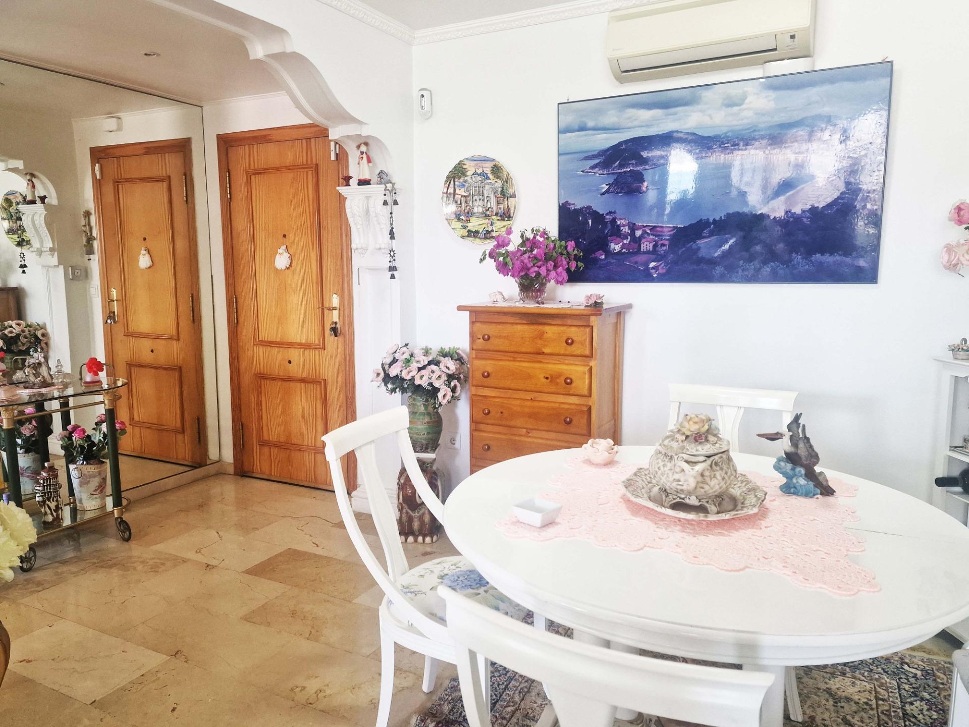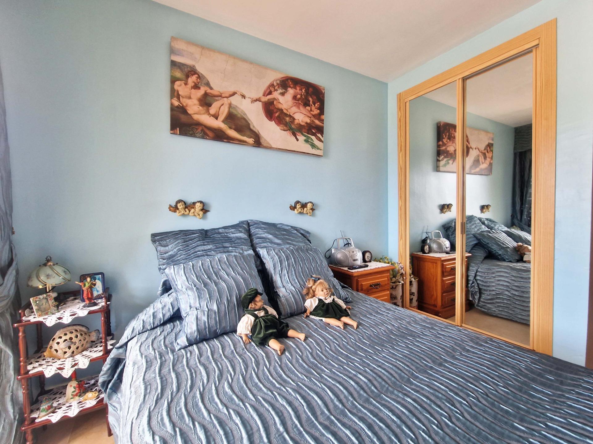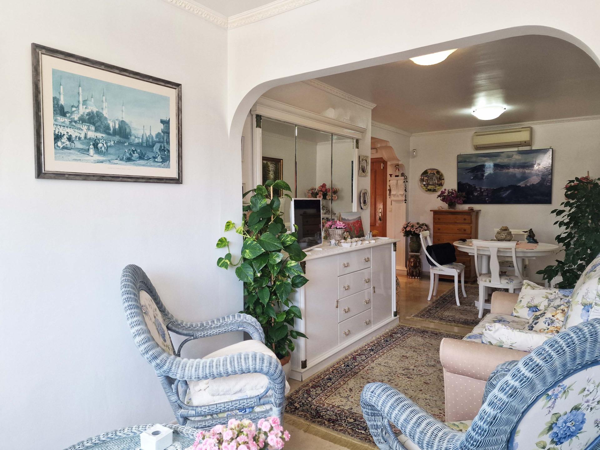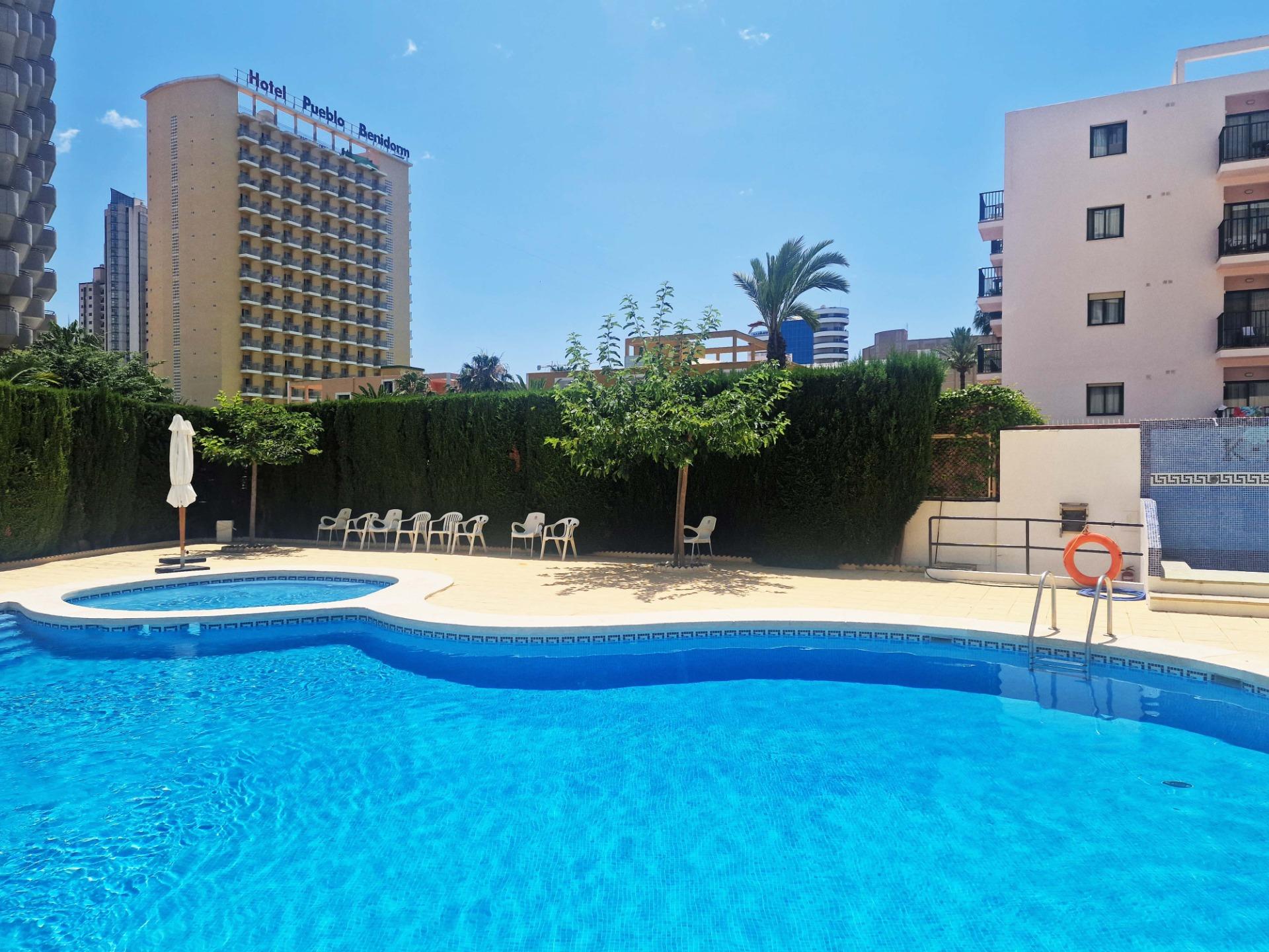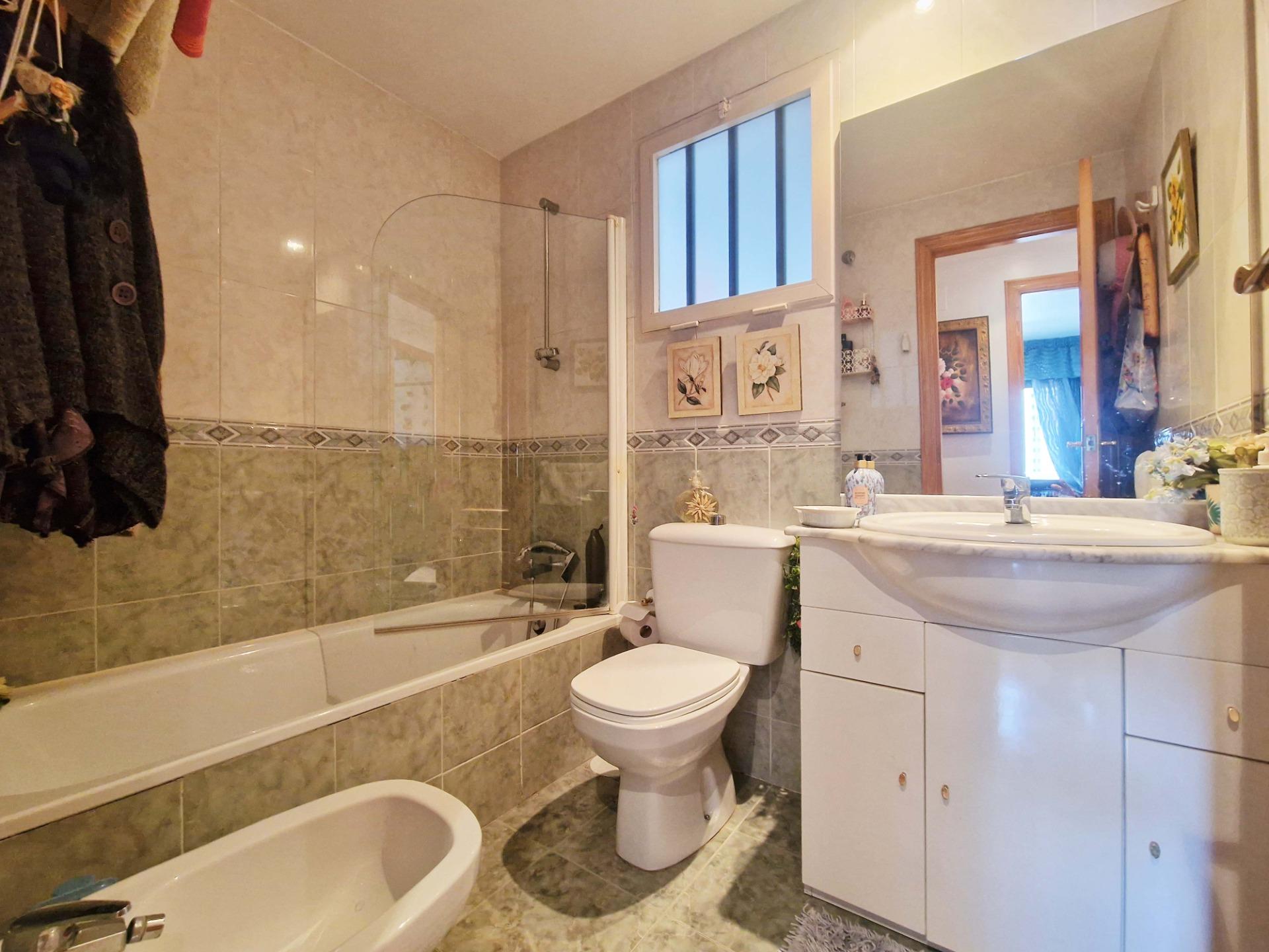 Продажа солнечной квартиры с 2 спальнями с открытой террасой в районе Леванте в Бенидорме, в 600 м от пляжа, в спокойной зоне рядом со всем необходимым. Знаменитый пляж Леванте находится всего в 7 минутах ходьбы по прямой дороге без перепадов высоты.~~В квартире 2 большие спальни, 2 ванные комнаты (одна из них – в главной спальне), светлая и просторная гостиная-столовая, полностью оборудованная отдельная кухня и открытая терраса с видом на Бенидорм. Оборудована системой кондиционирования воздуха тепло-холод.~~Закрытый жилой комплекс с общим бассейном и парковкой, недалеко от пляжа, ресторанов, баров, магазинов и всего необходимого.~Характеристики