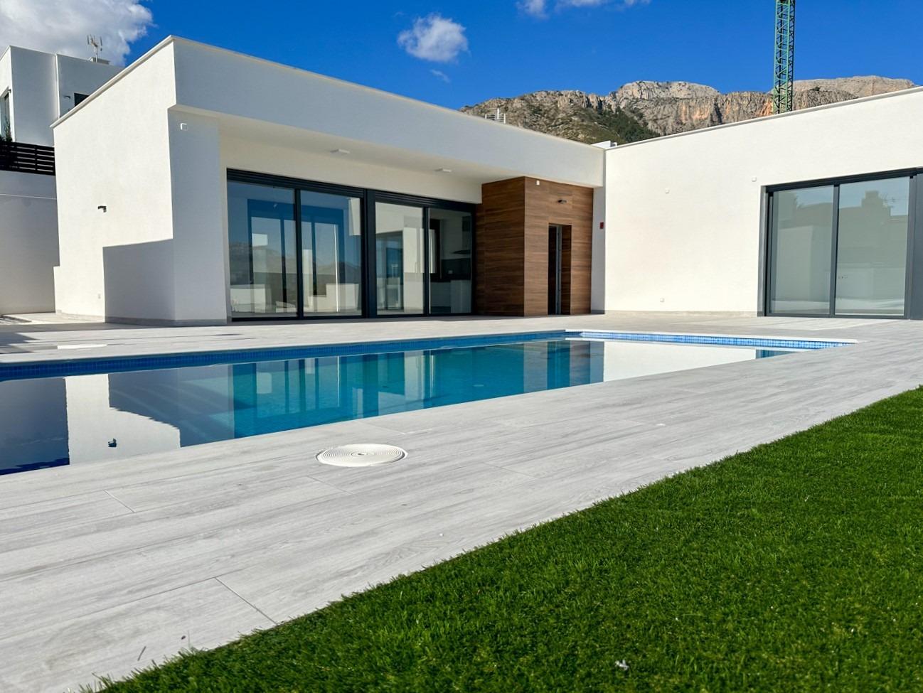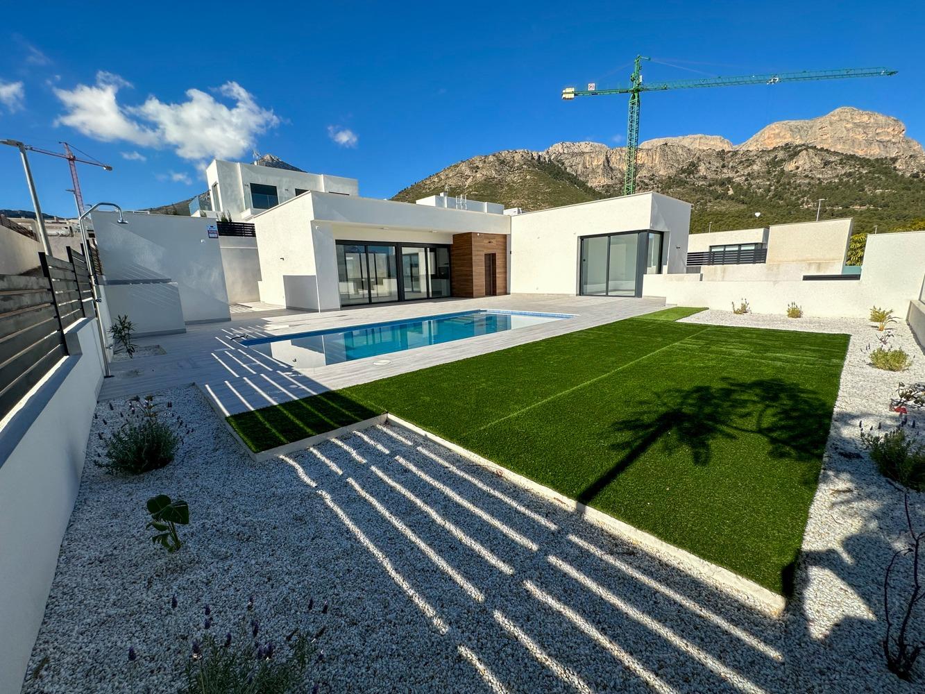 Новая вилла с подземным гаражом в Полопе. Последняя вилла с подвальным этажом. Окончание строительства в декабре 2023 года.~~Расположена в тихом районе, распределяется на 3 спальни, 3 ванные, кухню открытого плана и гостиную-столовую с выходом на террасу. На нижнем этаже находится 1 спальни, 1 ванная, гостиная с большим окном и гараж с удобным въездом для машины. Участок 430 м2 с бассейном и садом.~~Вилла спроектирована в форме L, благодаря чему получает максимум солнечного света в течение дня. Оборудована встроенными гардеробными шкафами, двойным остеклением типа Climalit, электрическими ставнями, видеодомофоном, системой «тёплый пол» в ванных комнатах, встроенной системой кондиционирования.~~Расположена в новом жилом комплексе в Полопе, рядом со всем необходимым, всего в 15 мин езды от Бенидорма и Кальпе и в 30 мин езды от Аликанте. Идеальное место для тех, кто ищет спокойствие и приватность.~~Характеристики