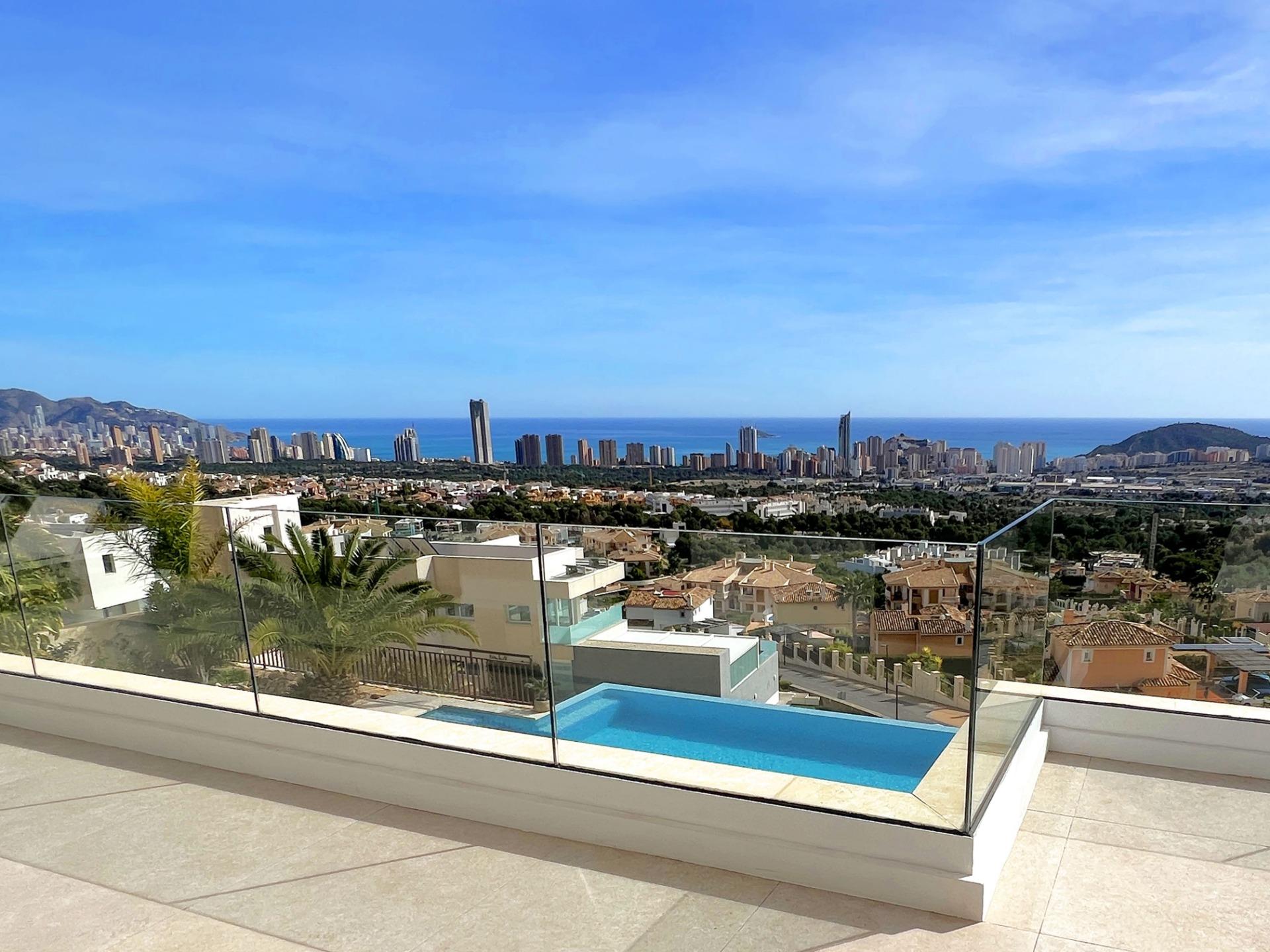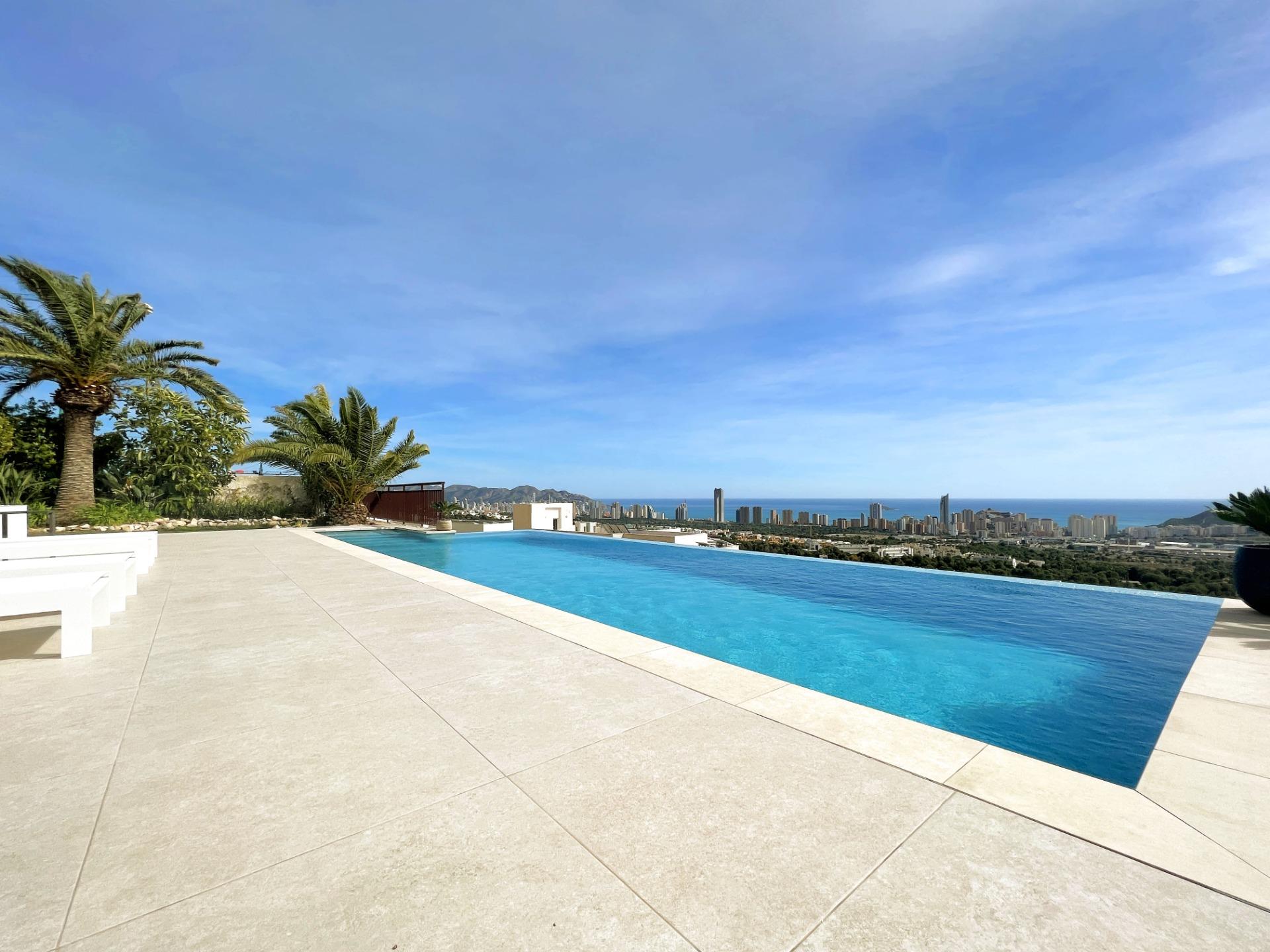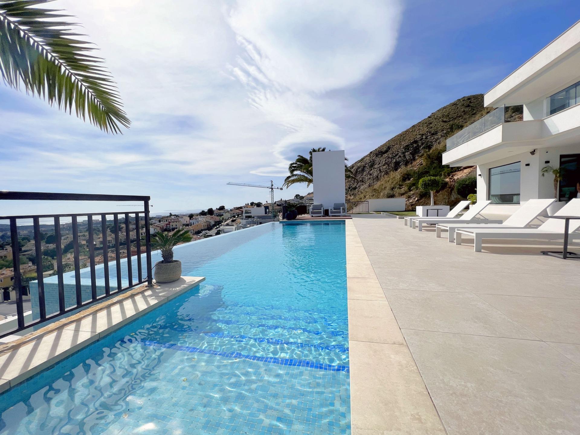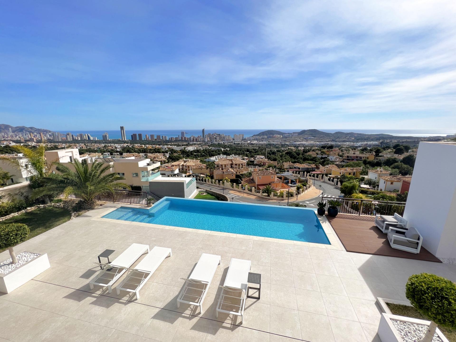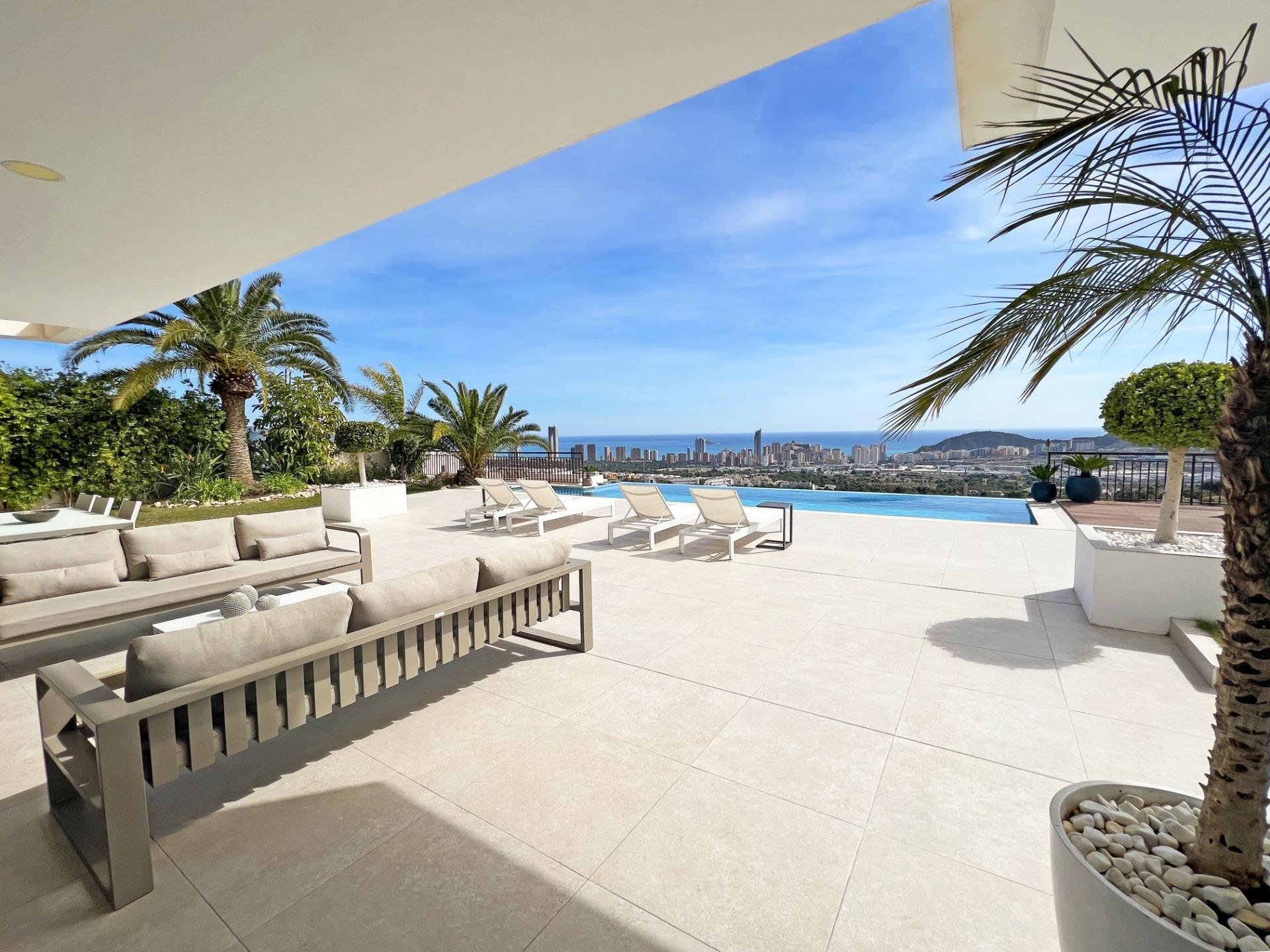 Роскошная вилла класса люкс в районе Гольф-Баиа в Финестрате, с панорамным видом на побережье Бенидорма и отделкой высочайшего качества.~~Вилла распределяется на два этажа и имеет 372 м2 застроенной площади, частную территорию 1.206 м2 на разных уровнях и парковку на два автомобиля.~~В общем имеет 4 спальни, 3 ванные комнаты, большую гардеробную, просторную гостиную и обеденную зону с открытыми видами, кухню с техникой Bosch и мраморными столешницами, а также несколько террас на разных уровнях с великолепным видом на море и город Бенидорм. Все спальни ориентированы на юг, в сторону Средиземного моря.~~Оборудована сигнализацией, системой умной дом, современной климат-системой, освещением LED по дизайн-проекту и солнечными батареями, благодаря чему вилла на 90% автономна в потреблении энергии, обладая высшей категорией энергоэффективности (категория А). Инфинити-бассейн 10 х 4 м с солевым электролизом. Вилла продаётся также с установленным лифтом. Удобная планировка пространства и южная ориентация.~~Благодаря расположению на самой высокой точке урбанизации, из этой виллы открываются лучшие и уникальные виды на побережье и город Бенидорм. Связывайтесь для организации показа.~Характеристики