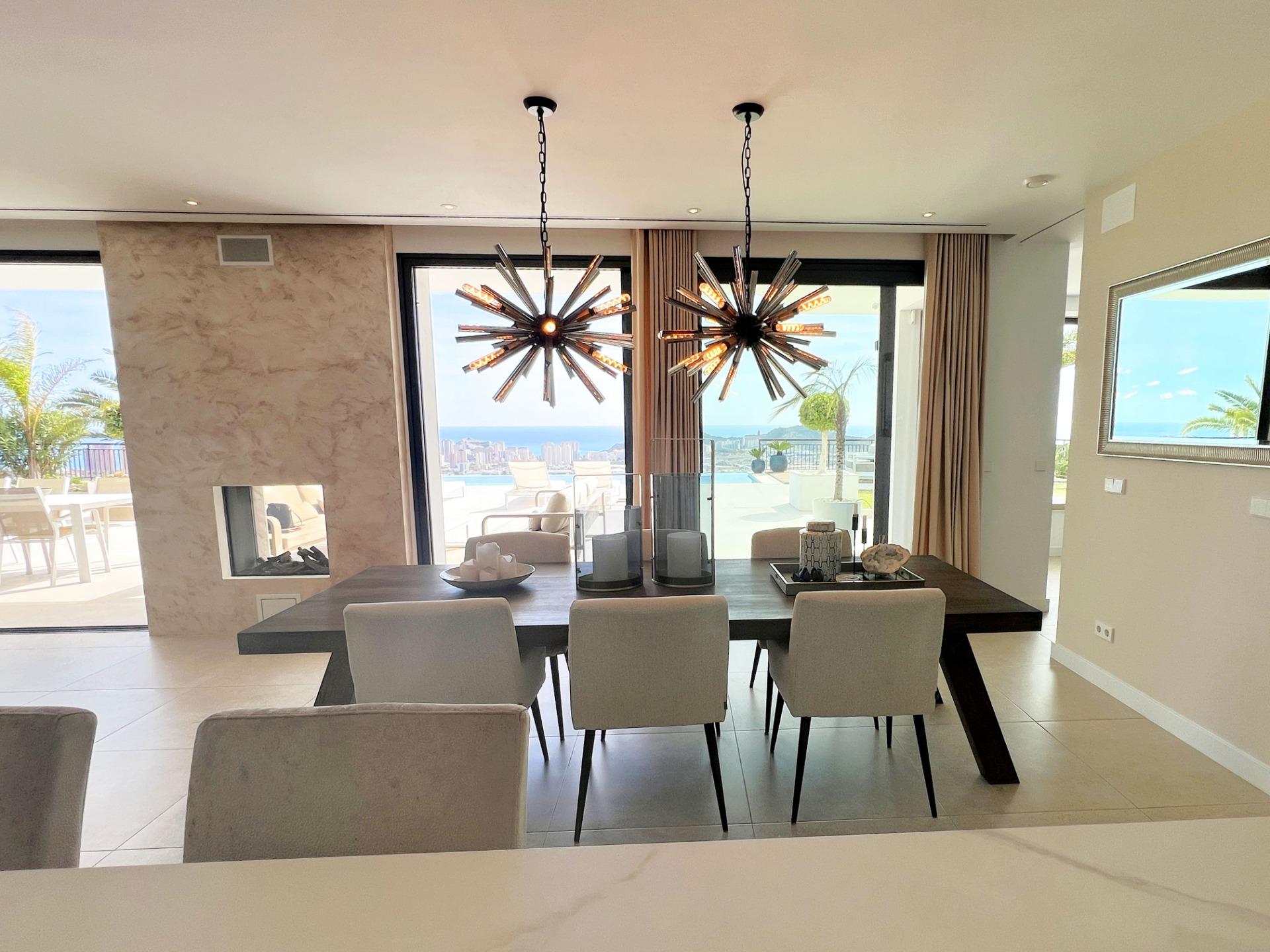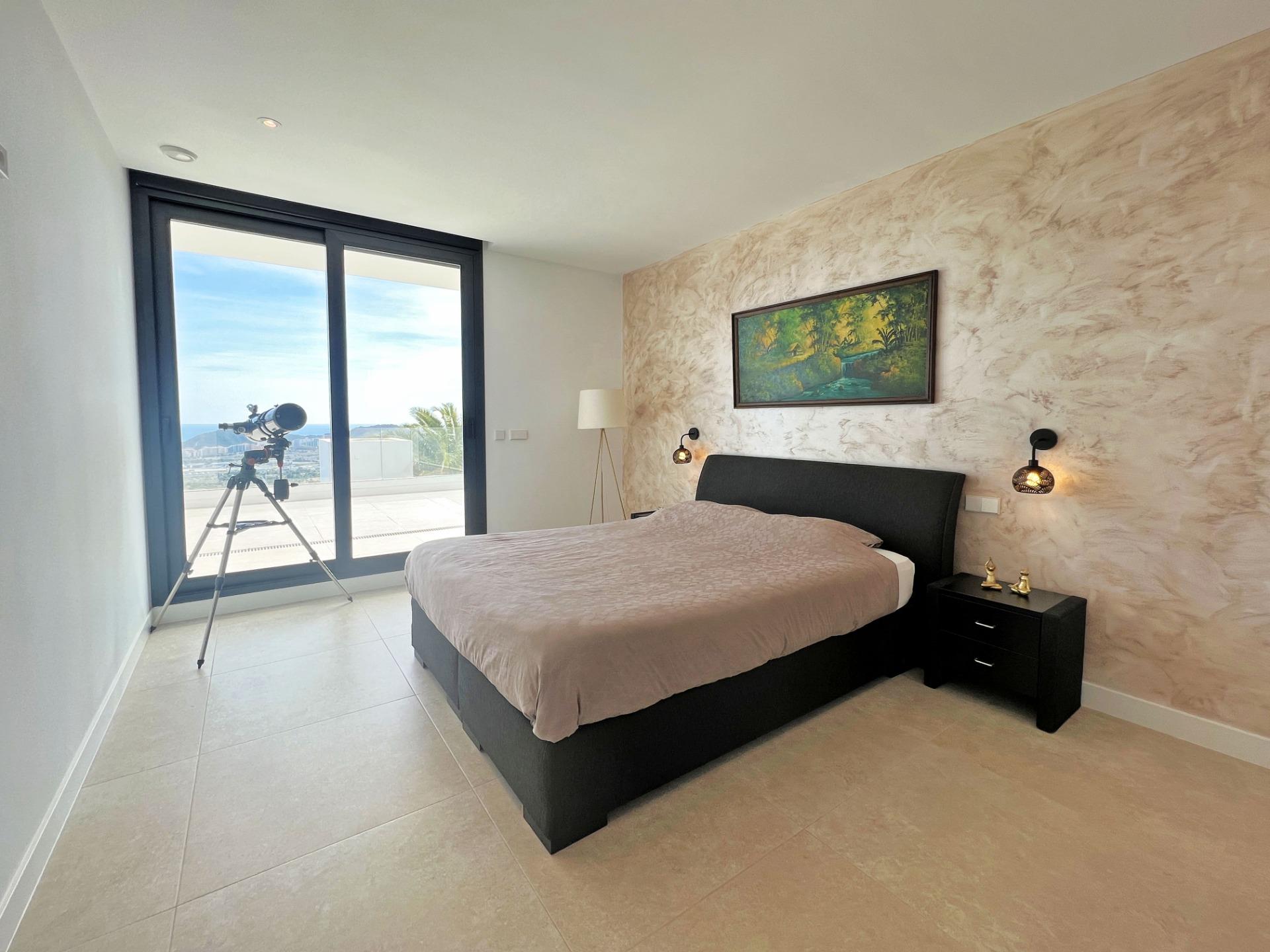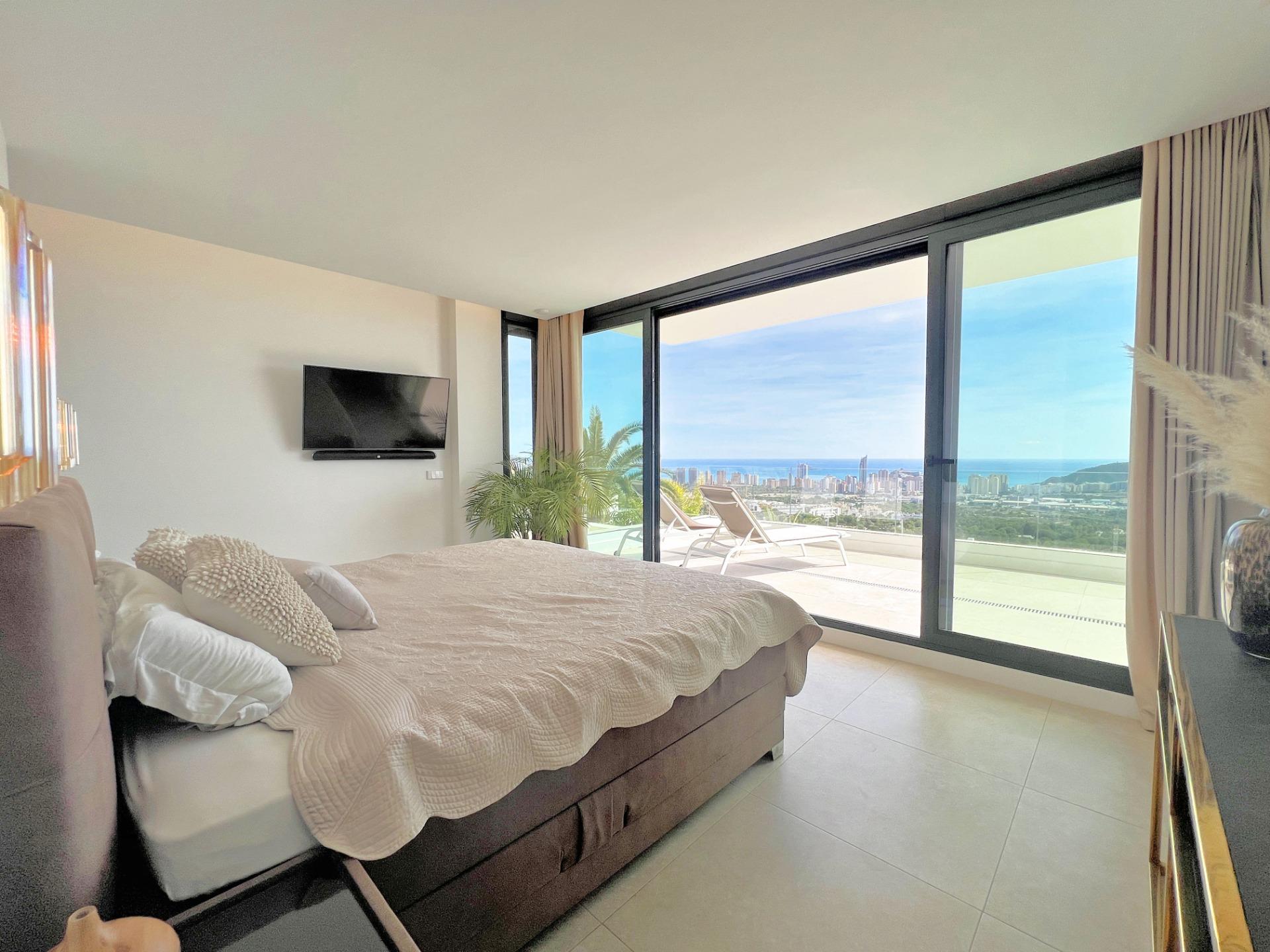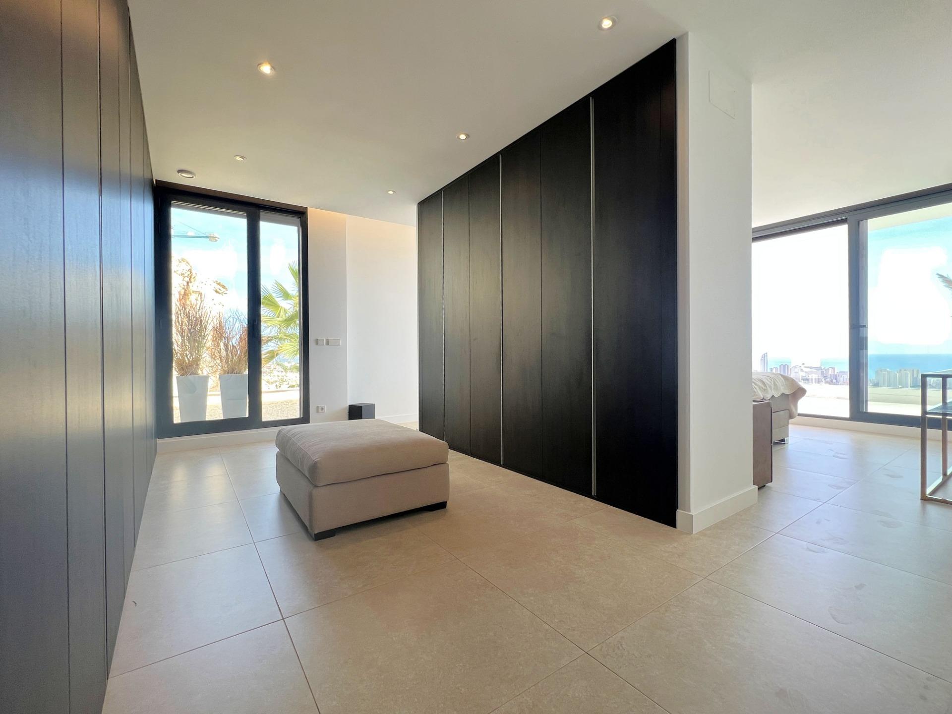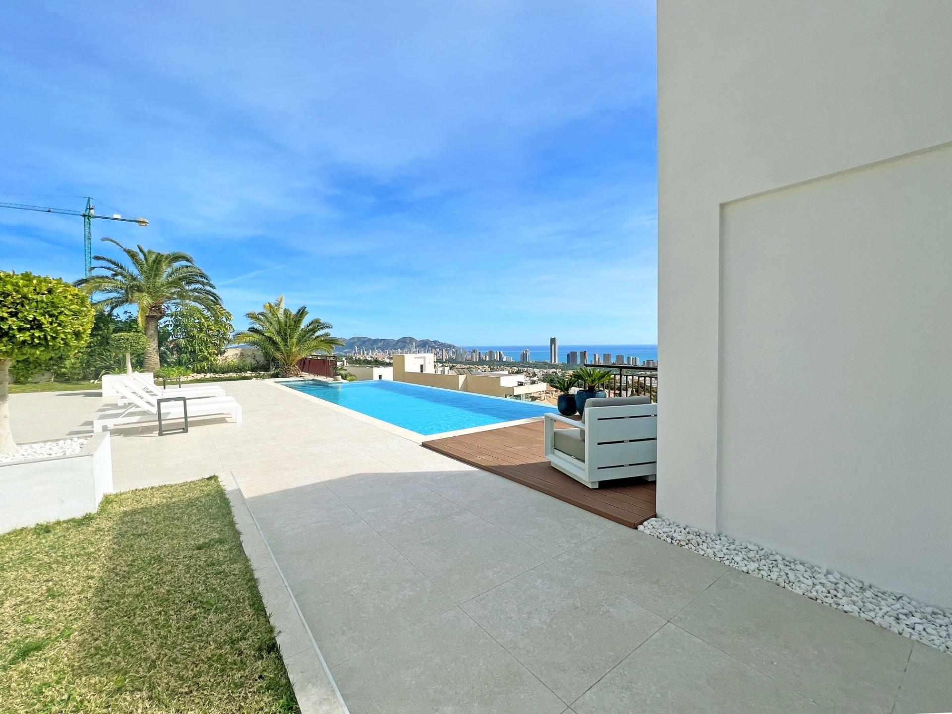 Роскошная вилла класса люкс в районе Гольф-Баиа в Финестрате, с панорамным видом на побережье Бенидорма и отделкой высочайшего качества.~~Вилла распределяется на два этажа и имеет 372 м2 застроенной площади, частную территорию 1.206 м2 на разных уровнях и парковку на два автомобиля.~~В общем имеет 4 спальни, 3 ванные комнаты, большую гардеробную, просторную гостиную и обеденную зону с открытыми видами, кухню с техникой Bosch и мраморными столешницами, а также несколько террас на разных уровнях с великолепным видом на море и город Бенидорм. Все спальни ориентированы на юг, в сторону Средиземного моря.~~Оборудована сигнализацией, системой умной дом, современной климат-системой, освещением LED по дизайн-проекту и солнечными батареями, благодаря чему вилла на 90% автономна в потреблении энергии, обладая высшей категорией энергоэффективности (категория А). Инфинити-бассейн 10 х 4 м с солевым электролизом. Вилла продаётся также с установленным лифтом. Удобная планировка пространства и южная ориентация.~~Благодаря расположению на самой высокой точке урбанизации, из этой виллы открываются лучшие и уникальные виды на побережье и город Бенидорм. Связывайтесь для организации показа.~Характеристики