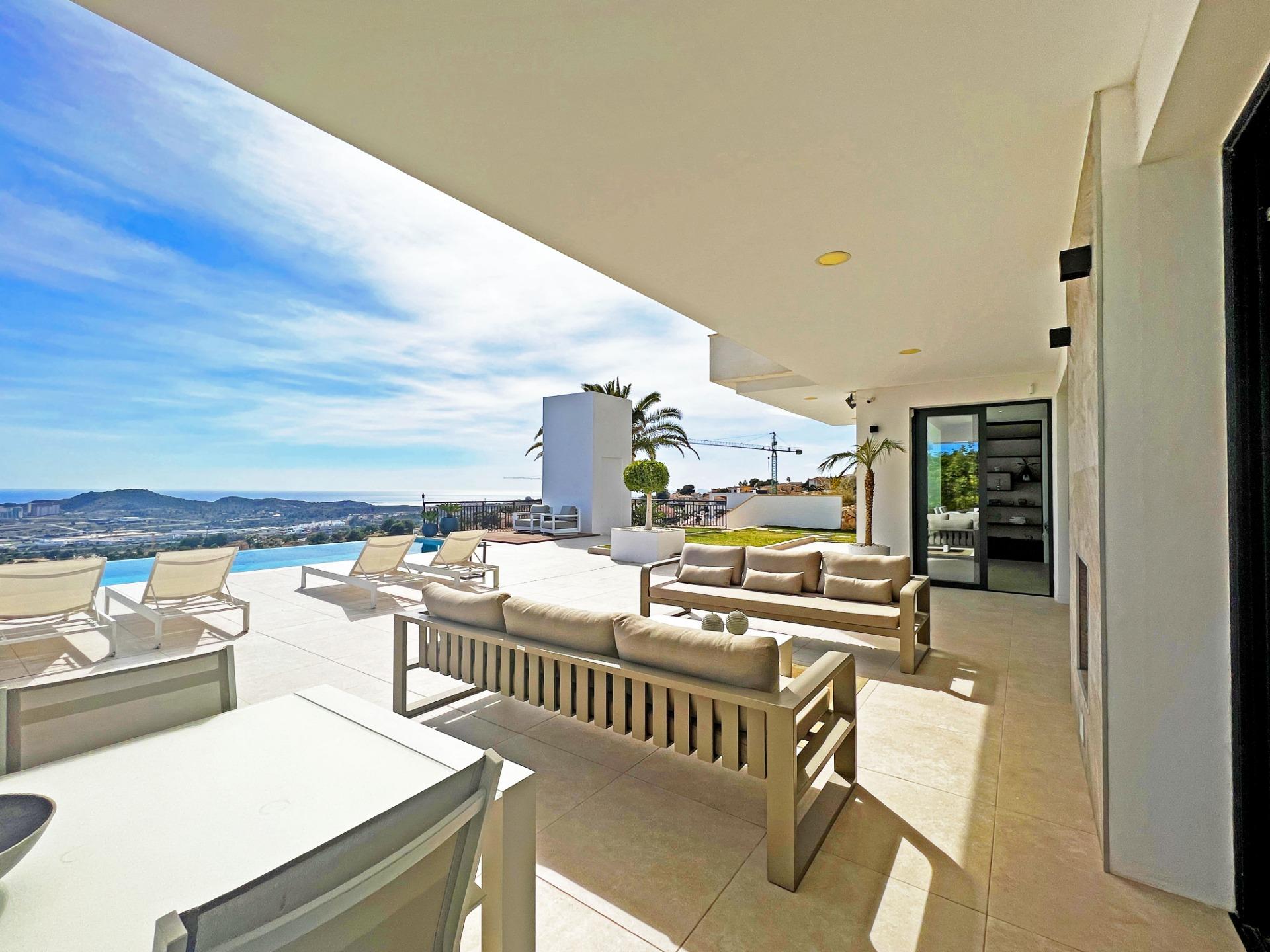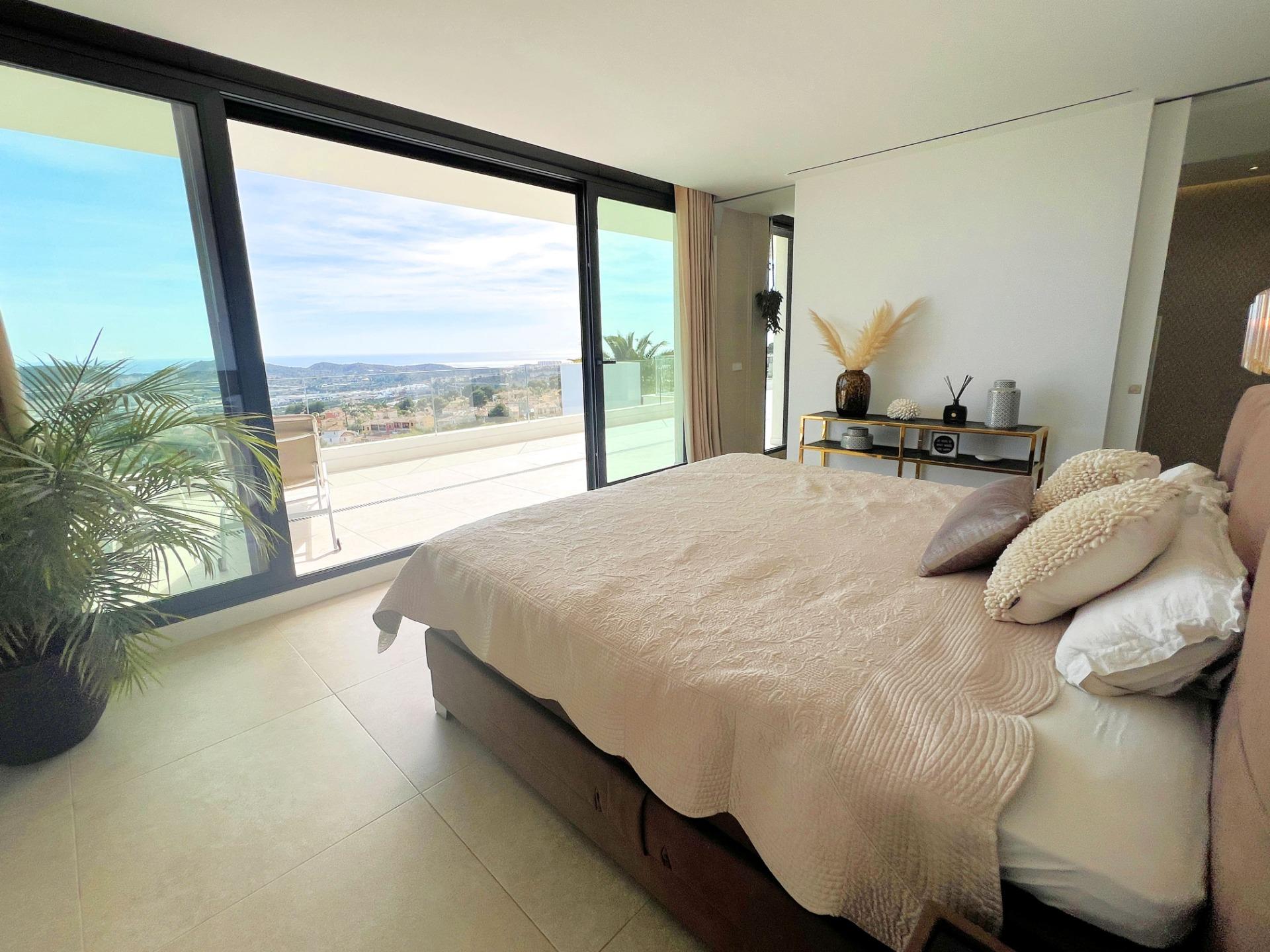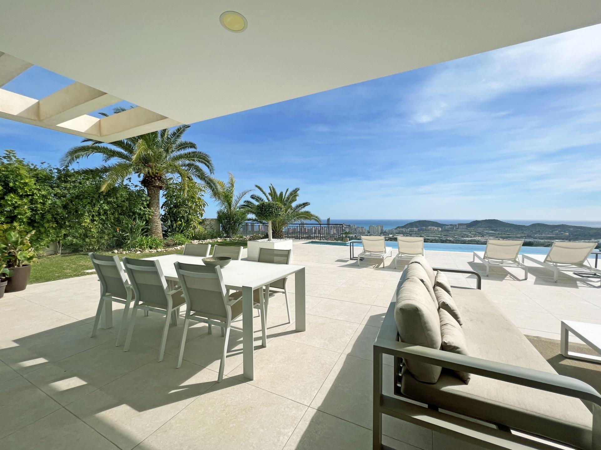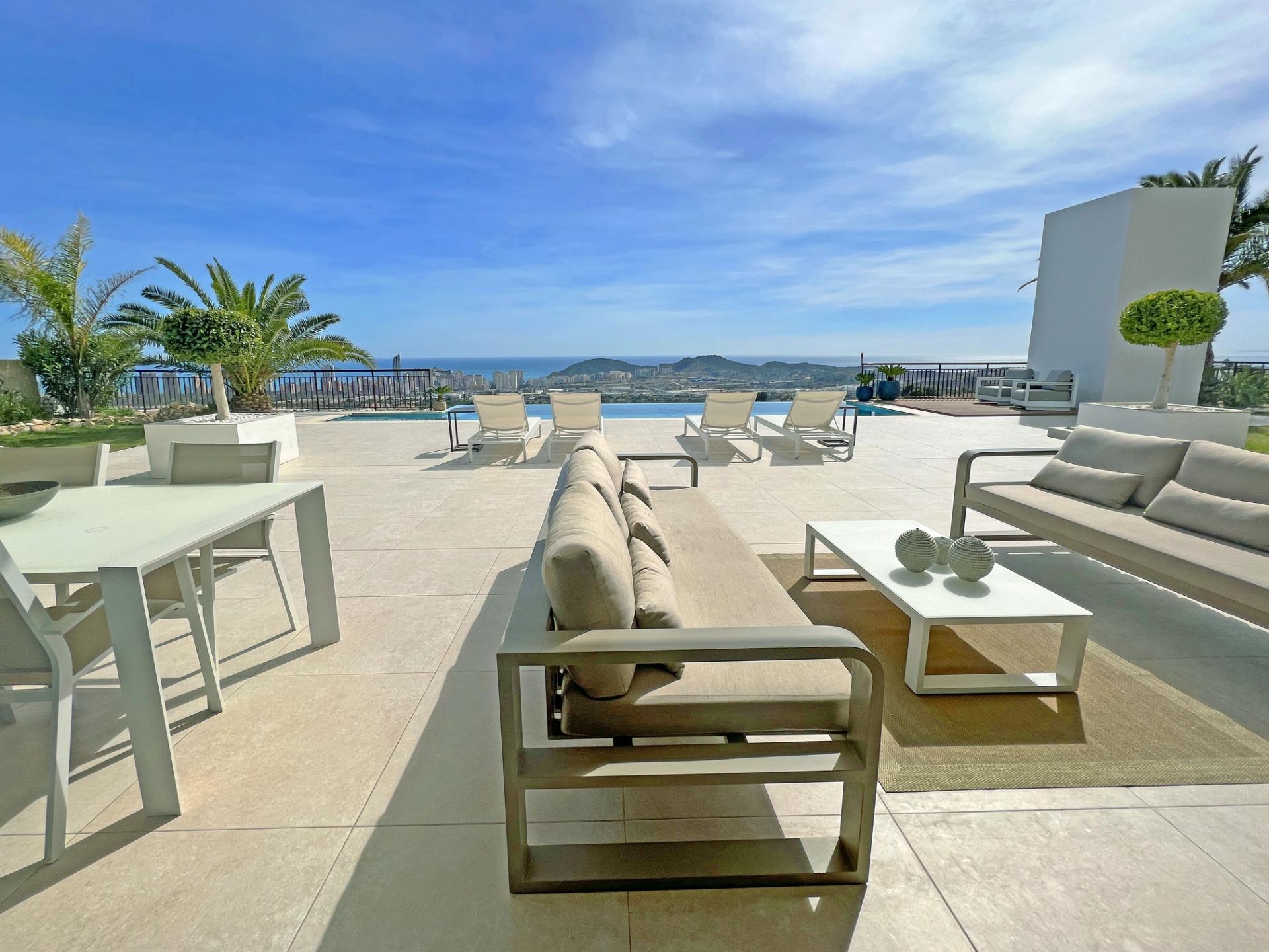 Роскошная вилла класса люкс в районе Гольф-Баиа в Финестрате, с панорамным видом на побережье Бенидорма и отделкой высочайшего качества.~~Вилла распределяется на два этажа и имеет 372 м2 застроенной площади, частную территорию 1.206 м2 на разных уровнях и парковку на два автомобиля.~~В общем имеет 4 спальни, 3 ванные комнаты, большую гардеробную, просторную гостиную и обеденную зону с открытыми видами, кухню с техникой Bosch и мраморными столешницами, а также несколько террас на разных уровнях с великолепным видом на море и город Бенидорм. Все спальни ориентированы на юг, в сторону Средиземного моря.~~Оборудована сигнализацией, системой умной дом, современной климат-системой, освещением LED по дизайн-проекту и солнечными батареями, благодаря чему вилла на 90% автономна в потреблении энергии, обладая высшей категорией энергоэффективности (категория А). Инфинити-бассейн 10 х 4 м с солевым электролизом. Вилла продаётся также с установленным лифтом. Удобная планировка пространства и южная ориентация.~~Благодаря расположению на самой высокой точке урбанизации, из этой виллы открываются лучшие и уникальные виды на побережье и город Бенидорм. Связывайтесь для организации показа.~Характеристики