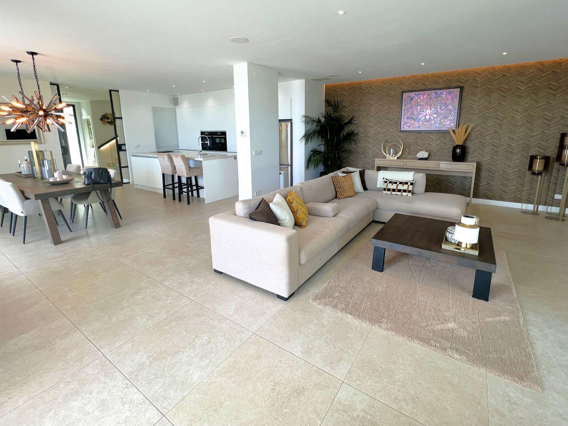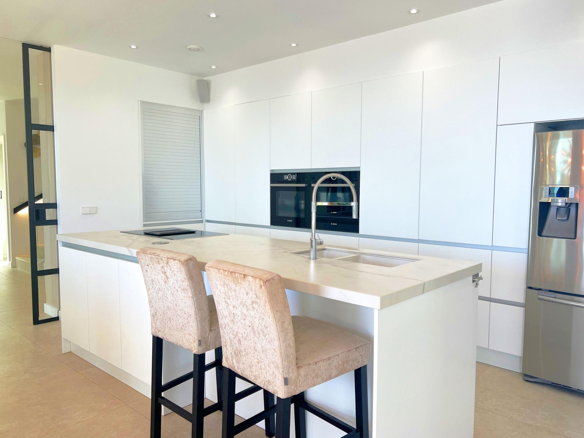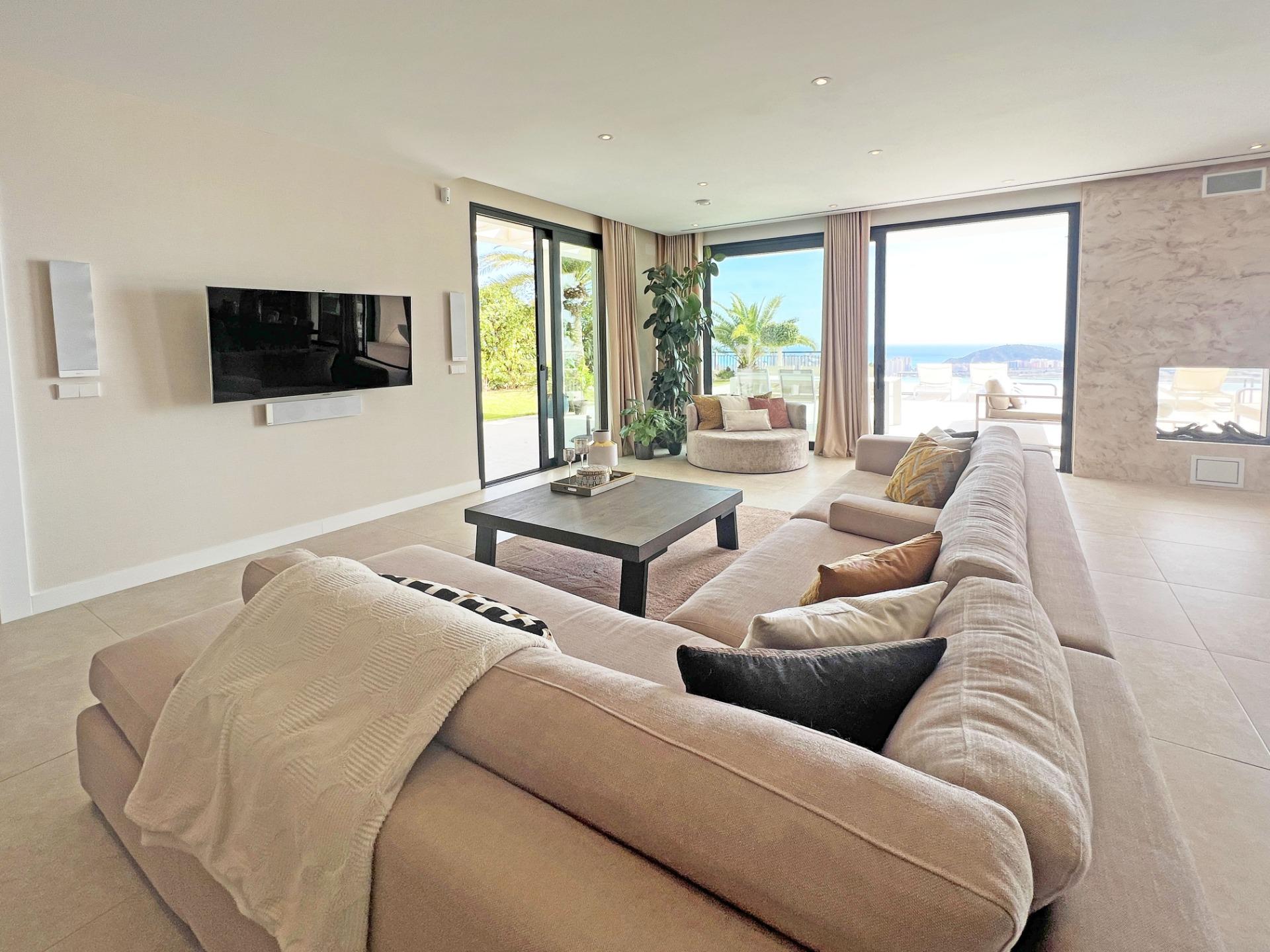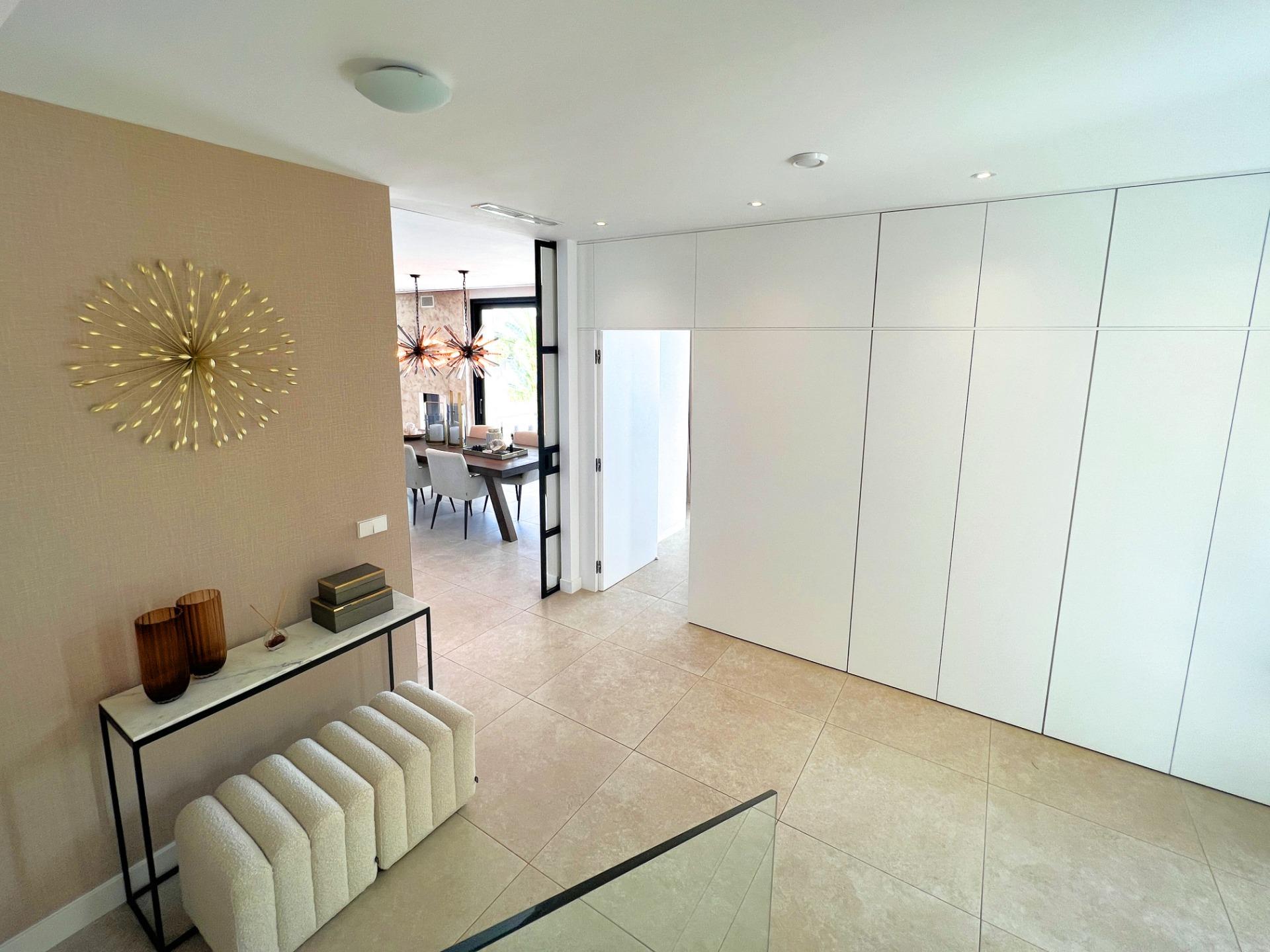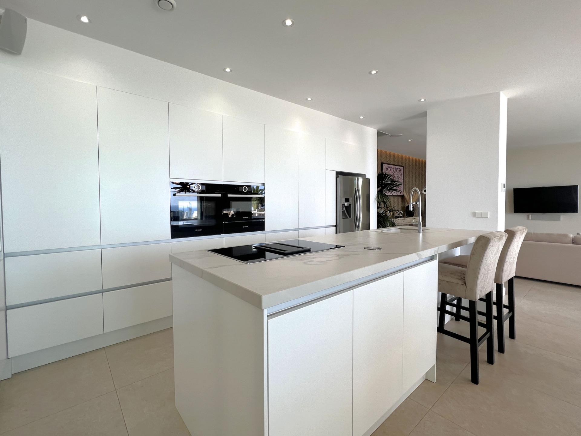 Роскошная вилла класса люкс в районе Гольф-Баиа в Финестрате, с панорамным видом на побережье Бенидорма и отделкой высочайшего качества.~~Вилла распределяется на два этажа и имеет 372 м2 застроенной площади, частную территорию 1.206 м2 на разных уровнях и парковку на два автомобиля.~~В общем имеет 4 спальни, 3 ванные комнаты, большую гардеробную, просторную гостиную и обеденную зону с открытыми видами, кухню с техникой Bosch и мраморными столешницами, а также несколько террас на разных уровнях с великолепным видом на море и город Бенидорм. Все спальни ориентированы на юг, в сторону Средиземного моря.~~Оборудована сигнализацией, системой умной дом, современной климат-системой, освещением LED по дизайн-проекту и солнечными батареями, благодаря чему вилла на 90% автономна в потреблении энергии, обладая высшей категорией энергоэффективности (категория А). Инфинити-бассейн 10 х 4 м с солевым электролизом. Вилла продаётся также с установленным лифтом. Удобная планировка пространства и южная ориентация.~~Благодаря расположению на самой высокой точке урбанизации, из этой виллы открываются лучшие и уникальные виды на побережье и город Бенидорм. Связывайтесь для организации показа.~Характеристики
