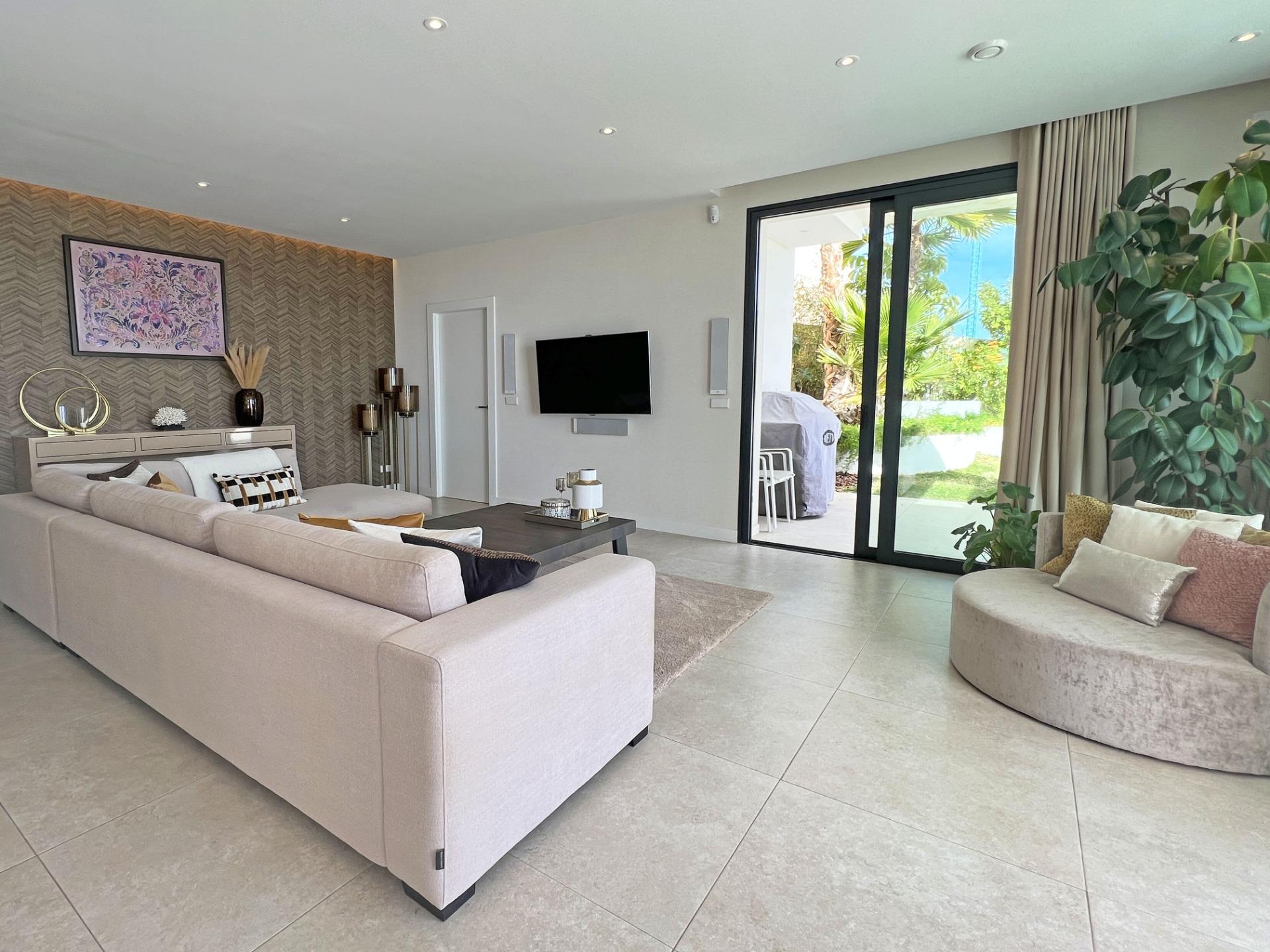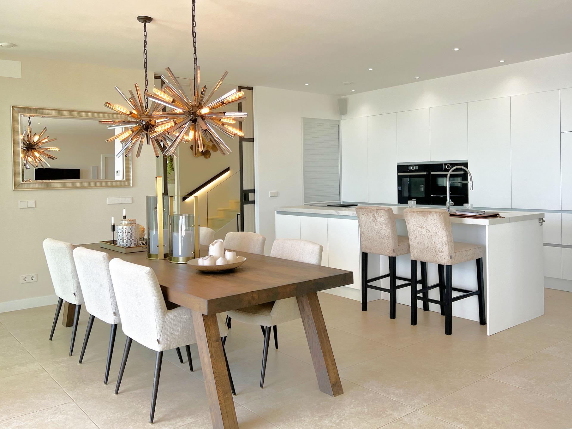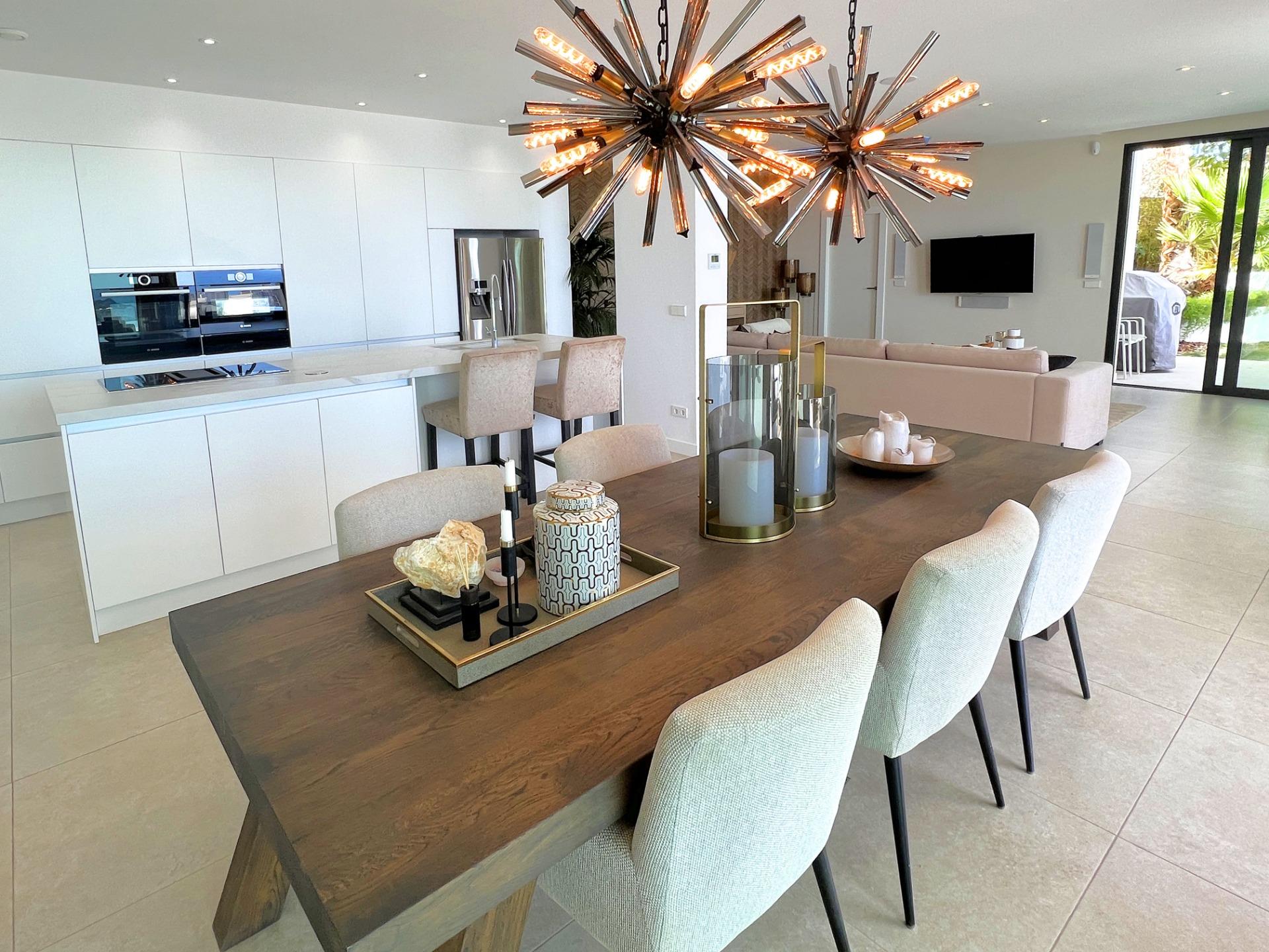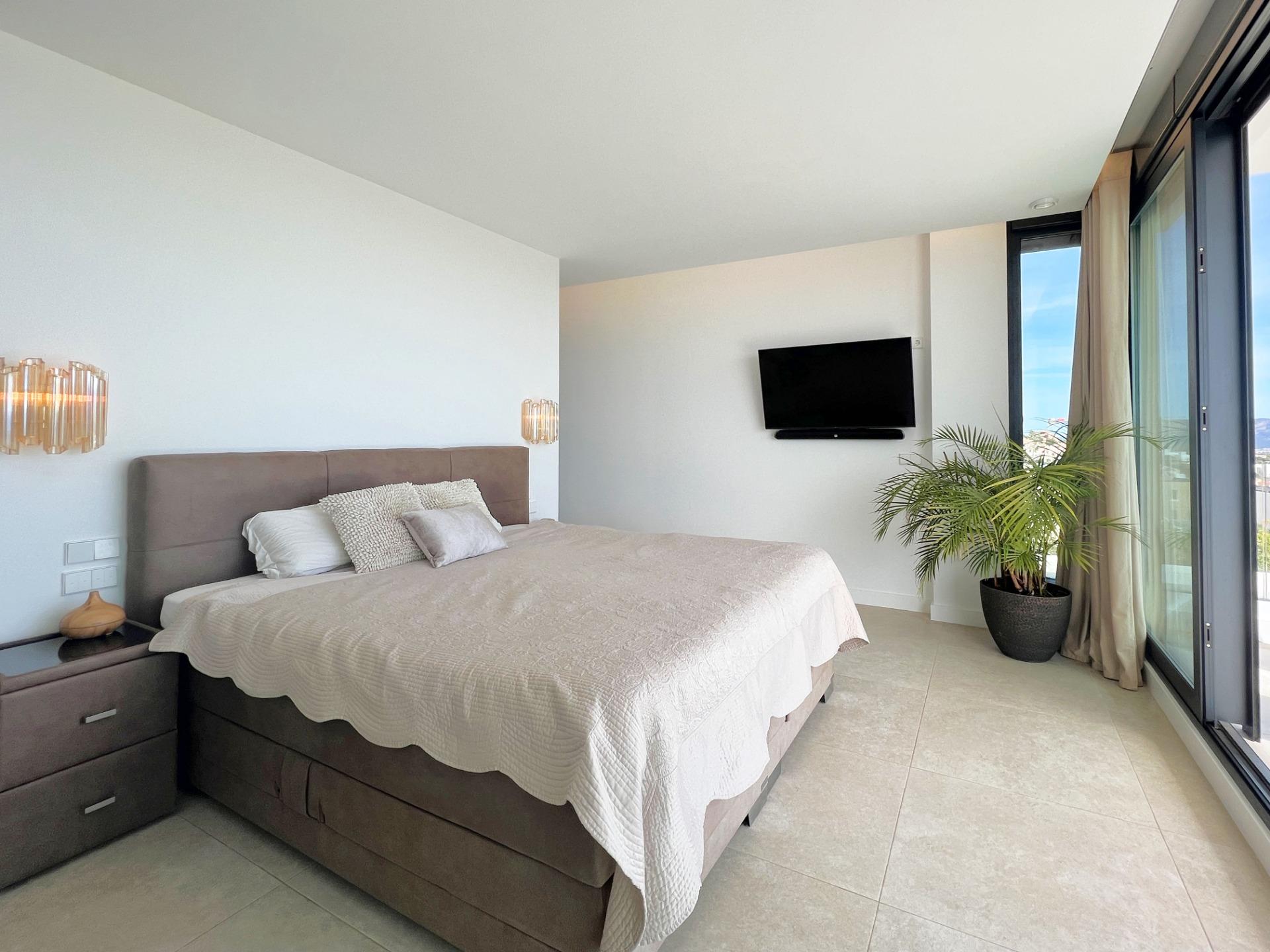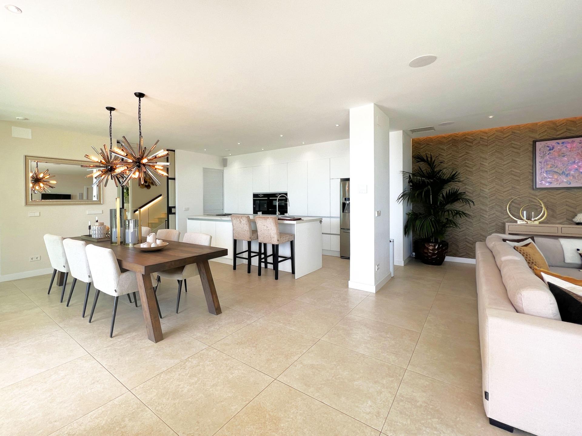 Роскошная вилла класса люкс в районе Гольф-Баиа в Финестрате, с панорамным видом на побережье Бенидорма и отделкой высочайшего качества.~~Вилла распределяется на два этажа и имеет 372 м2 застроенной площади, частную территорию 1.206 м2 на разных уровнях и парковку на два автомобиля.~~В общем имеет 4 спальни, 3 ванные комнаты, большую гардеробную, просторную гостиную и обеденную зону с открытыми видами, кухню с техникой Bosch и мраморными столешницами, а также несколько террас на разных уровнях с великолепным видом на море и город Бенидорм. Все спальни ориентированы на юг, в сторону Средиземного моря.~~Оборудована сигнализацией, системой умной дом, современной климат-системой, освещением LED по дизайн-проекту и солнечными батареями, благодаря чему вилла на 90% автономна в потреблении энергии, обладая высшей категорией энергоэффективности (категория А). Инфинити-бассейн 10 х 4 м с солевым электролизом. Вилла продаётся также с установленным лифтом. Удобная планировка пространства и южная ориентация.~~Благодаря расположению на самой высокой точке урбанизации, из этой виллы открываются лучшие и уникальные виды на побережье и город Бенидорм. Связывайтесь для организации показа.~Характеристики