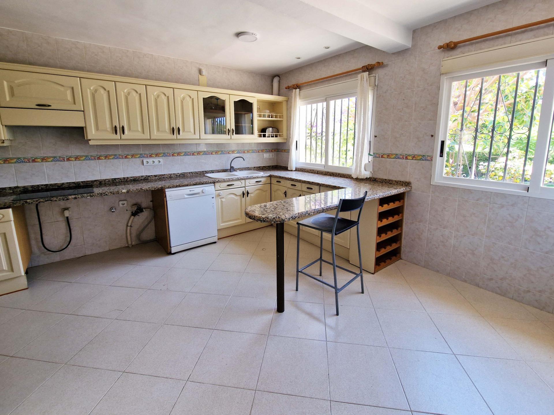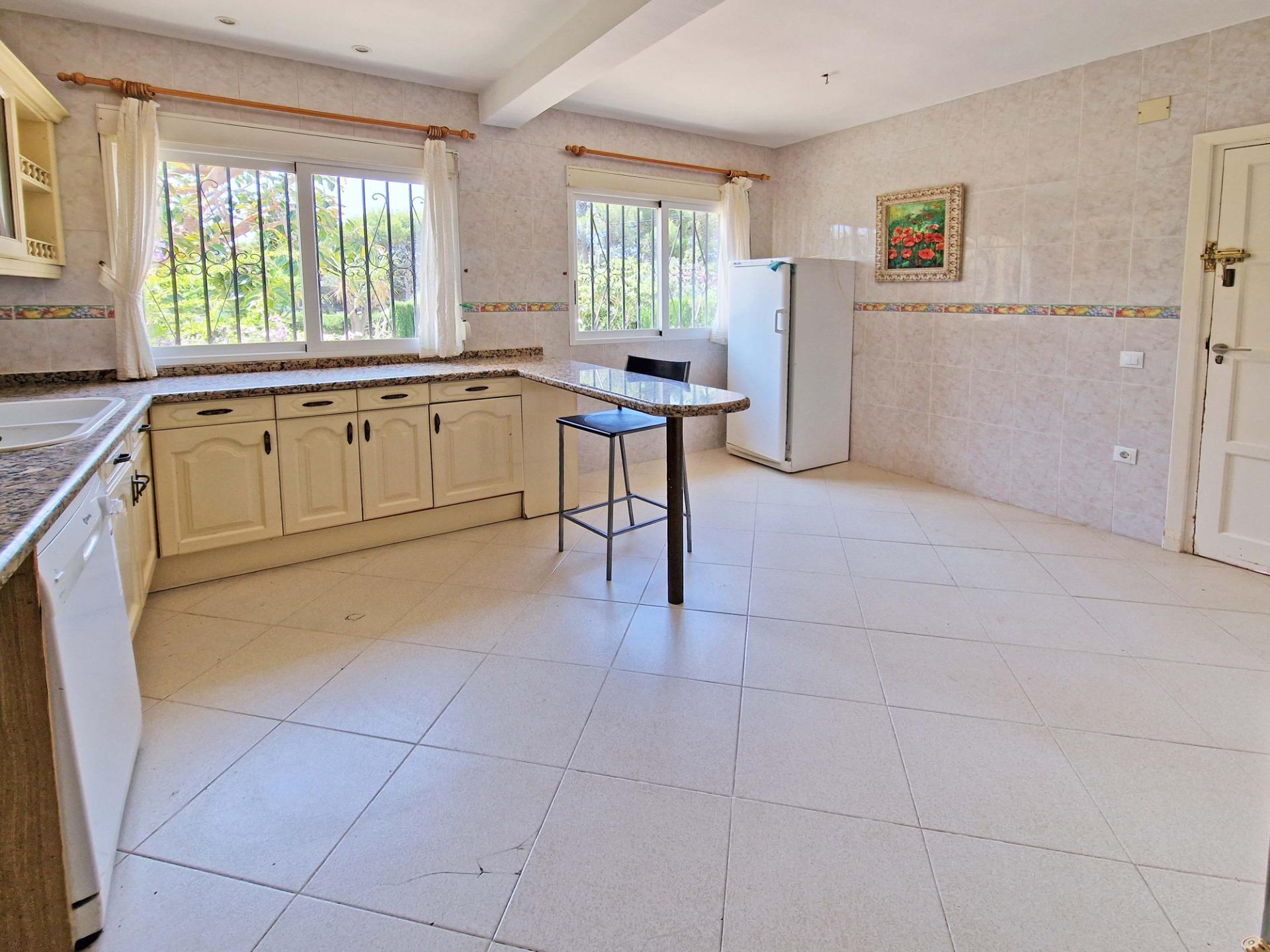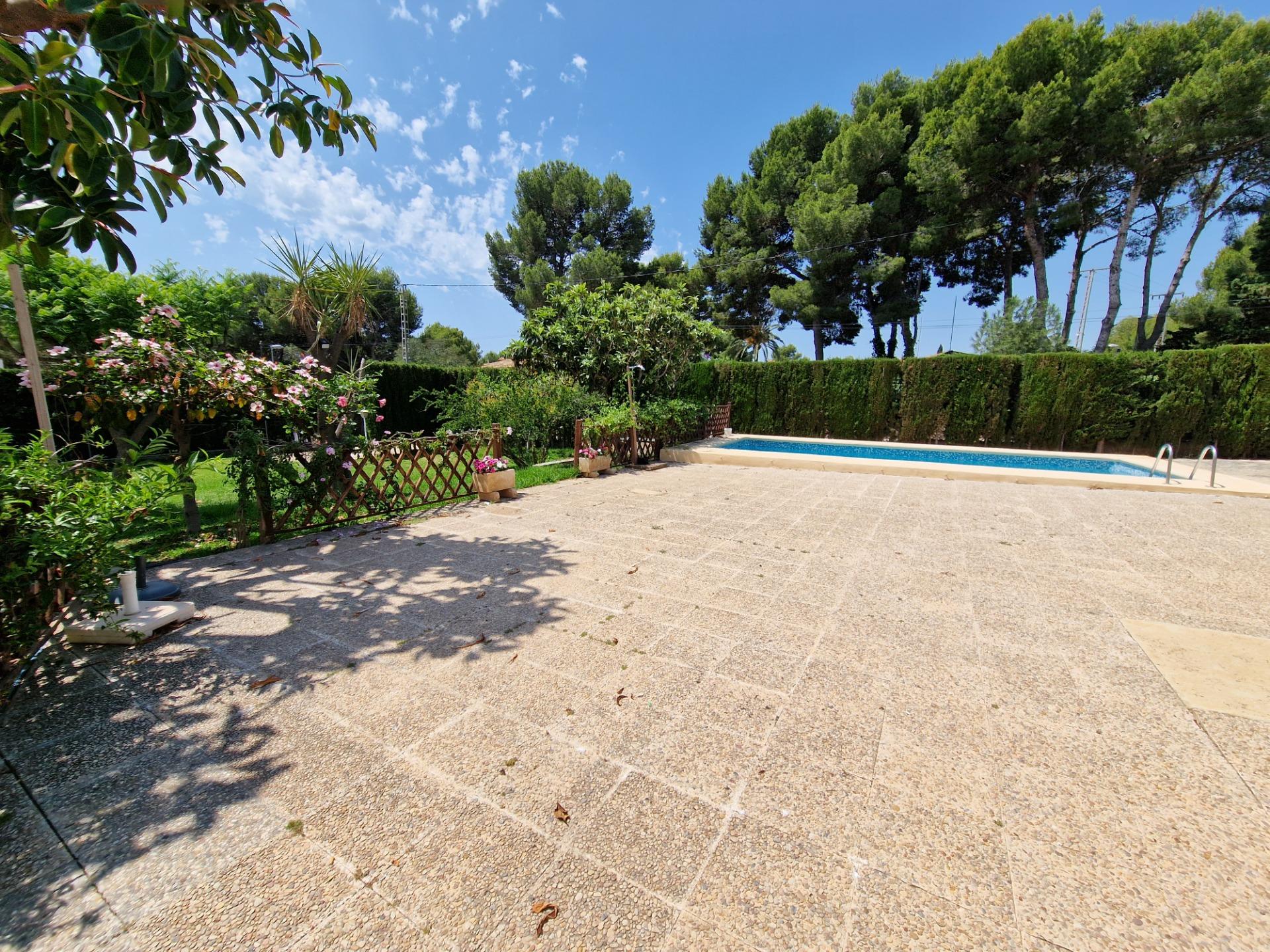 Продажа большого одноэтажного дома с бассейном и участком 1.720 м2, расположенного в районе Puerta de Hierro в Ла-Нусии, рядом с жилым районом Кобланка в Бенидорме.~~Дом распределяется на большую гостиную-столовую с выходом на открытую веранду, отдельную кухню, 4 спальни, 2 ванные комнаты и гостевой туалет. Дом оборудован газовыми радиаторами отопления и кондиционерами во всех комнатах.~~Большой приватный участок, часть которого асфальтирована, а другая часть представляет собой сад с ухоженным газоном и деревьями. Расположен в престижном районе рядом с супермаркетами, банками, кафе, аптеками и т.п., в 5 минутах от Бенидорма и в 10 минутах от пляжа.~Характеристики