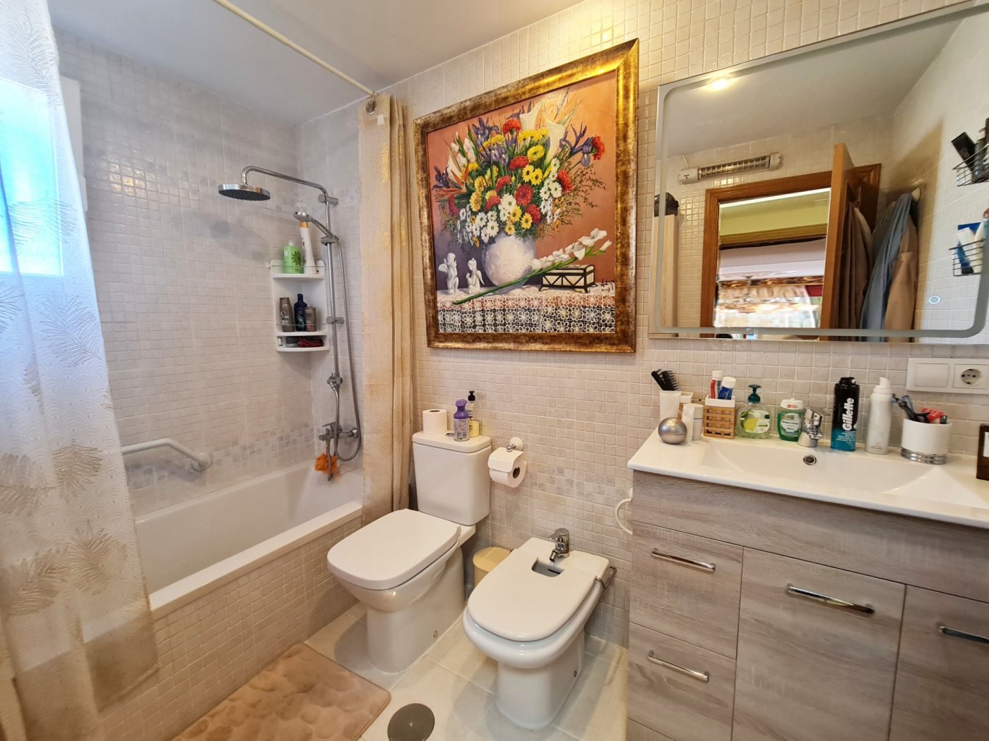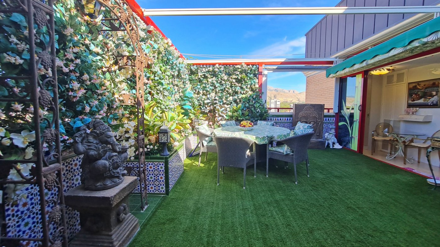 Продается просторный пентхаус, расположенный в 7 минутах ходьбы от пляжа Поньенте в Бенидорме, с открытым видом на море и Пуч Кампана почти из всех комнат, так как он находится на верхнем этаже здания.~ ~Квартира имеет площадь 132 м2, полностью отремонтирована и находится в отличном состоянии. Изначально в квартире было 3 спальни, одна из которых была соединена с гостиной. В настоящее время в доме 2 спальни, 2 ванные комнаты, отдельная кухня и открытая терраса площадью более 30 м2 с видом. Он поставляется с 2 парковочными местами и 2 кладовыми в самом здании.~ ~В урбанизации есть детская площадка, бассейн и сады. Отличное расположение всего в 800 м от пляжа и прямой доступ к магазинам, аптекам, школам и ресторанам.~Характеристики
