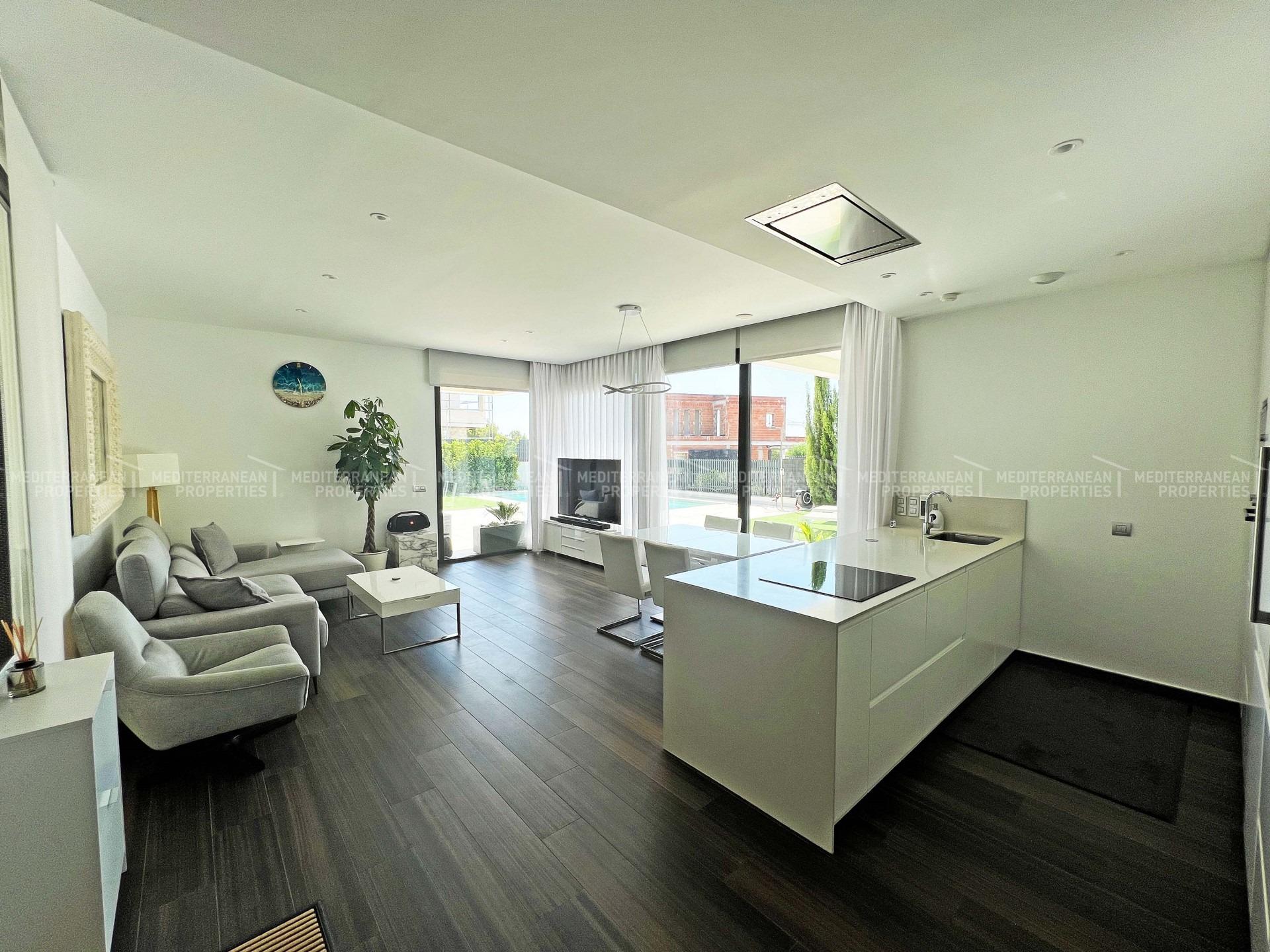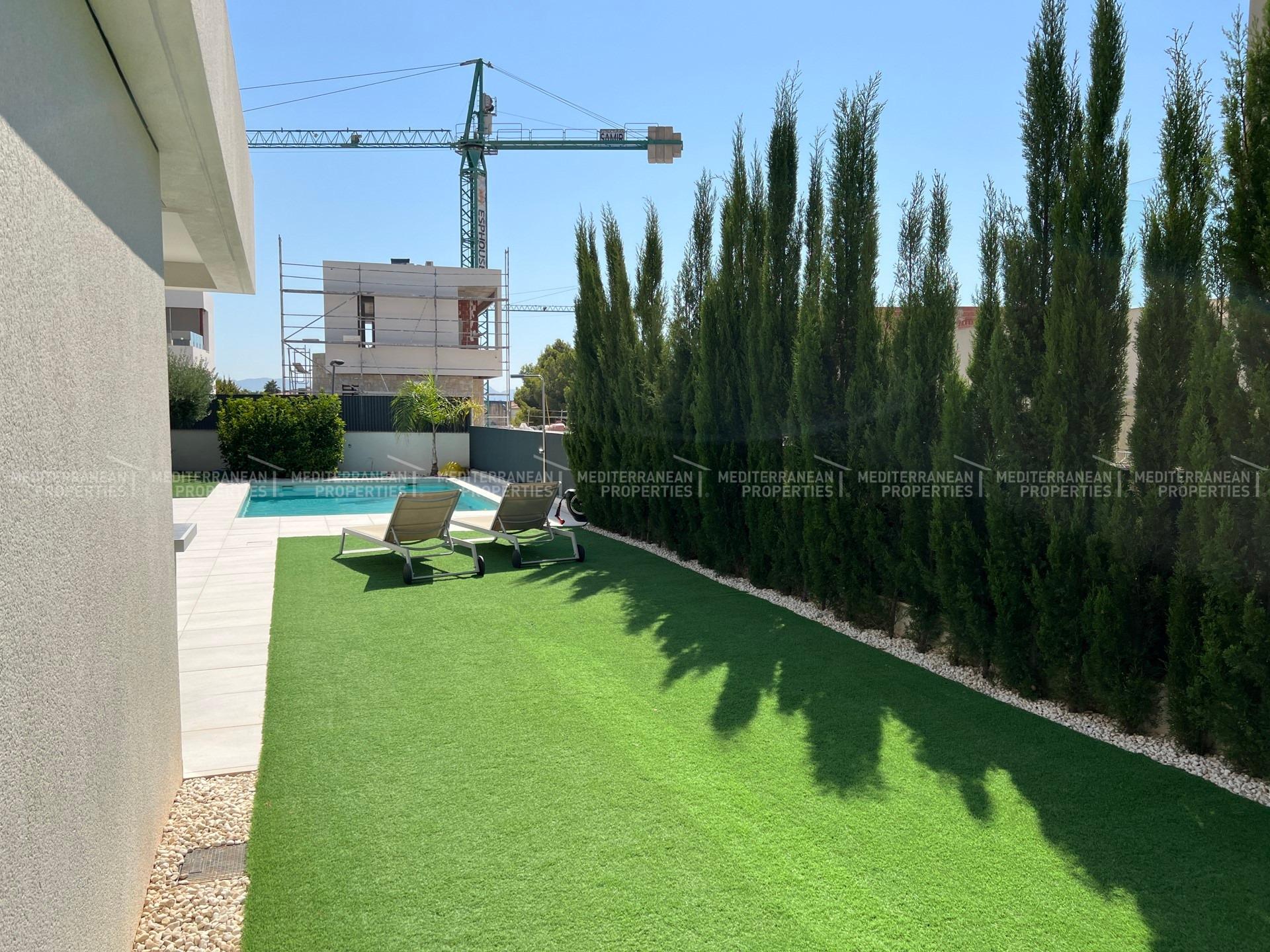 Villa for sale with 210 m2 of construction in one of the most privileged areas of the province of Alicante, due to its great views.~The property has three floors. In the basement we find a space for guests consisting of a bedroom, living room with kitchen included, bathroom with shower and area for washing clothes.~On the first floor we find a room with views of the garden and pool, a bathroom with shower, kitchen and a large living room with excellent views.~On the second floor we find two bedrooms with bathrooms included and a large terrace with views of the mountains and the sea.~In the garden we find an outdoor kitchen to enjoy with the family the moments of sun that the city offers us.~~Characteristics