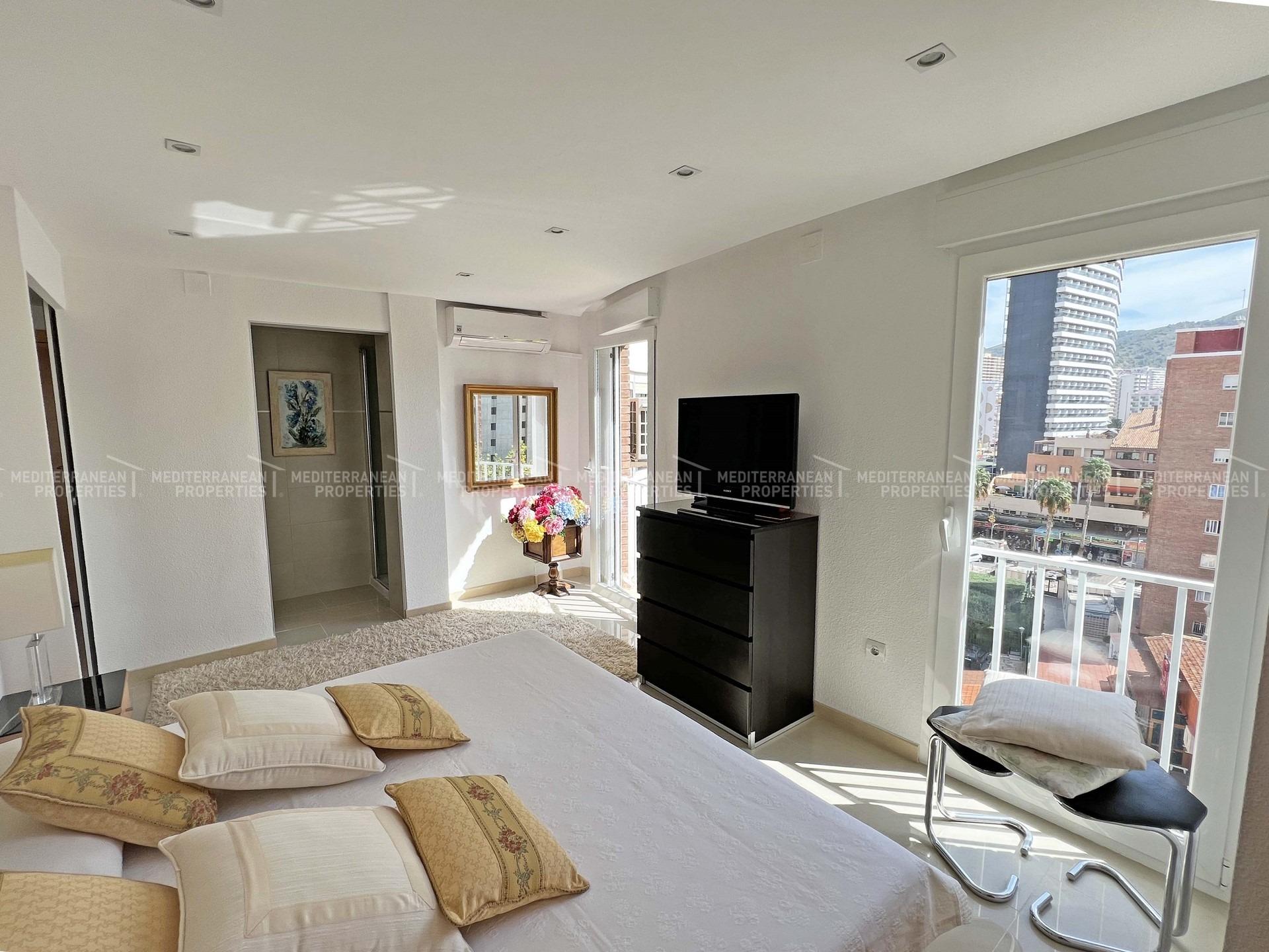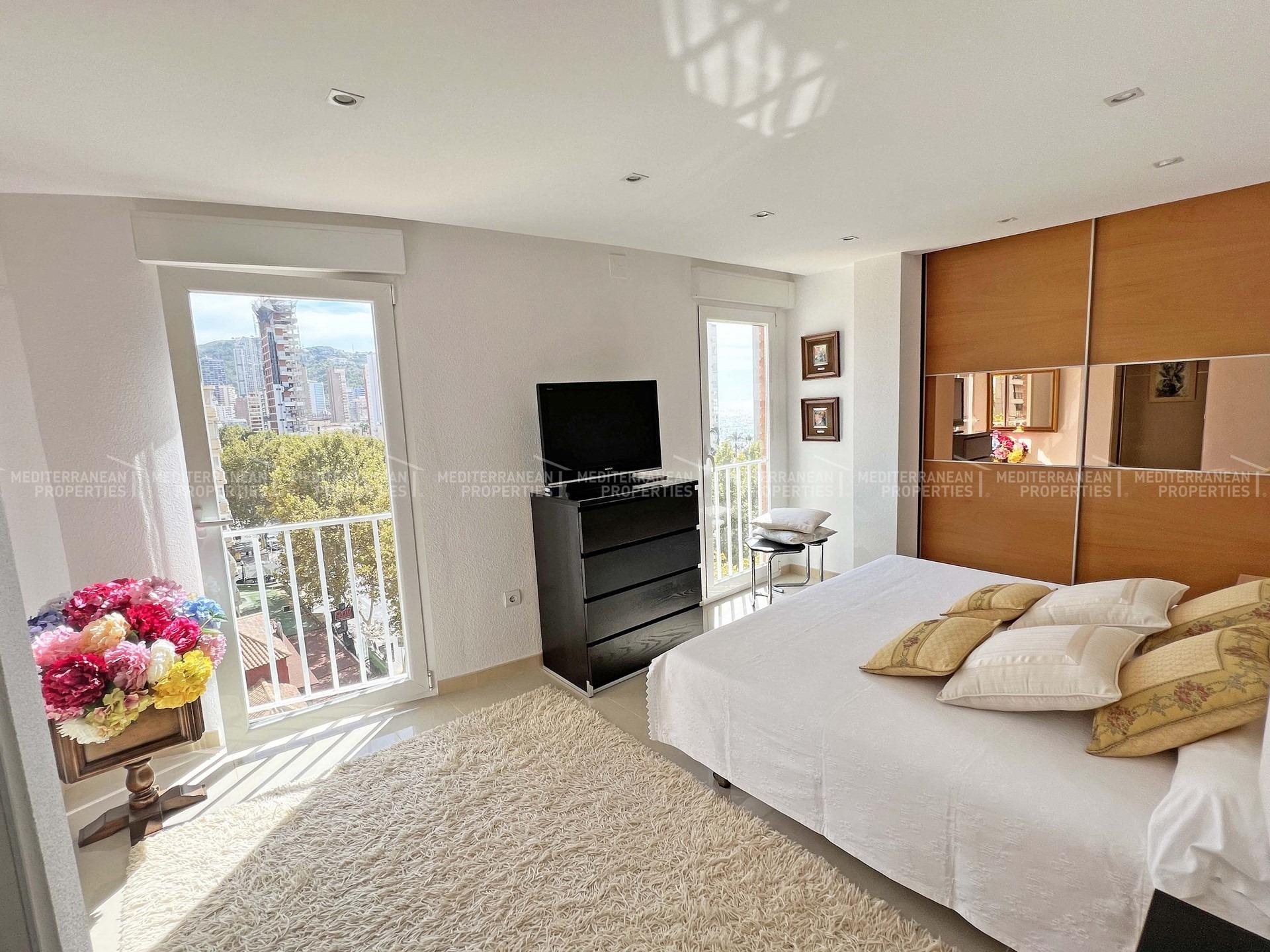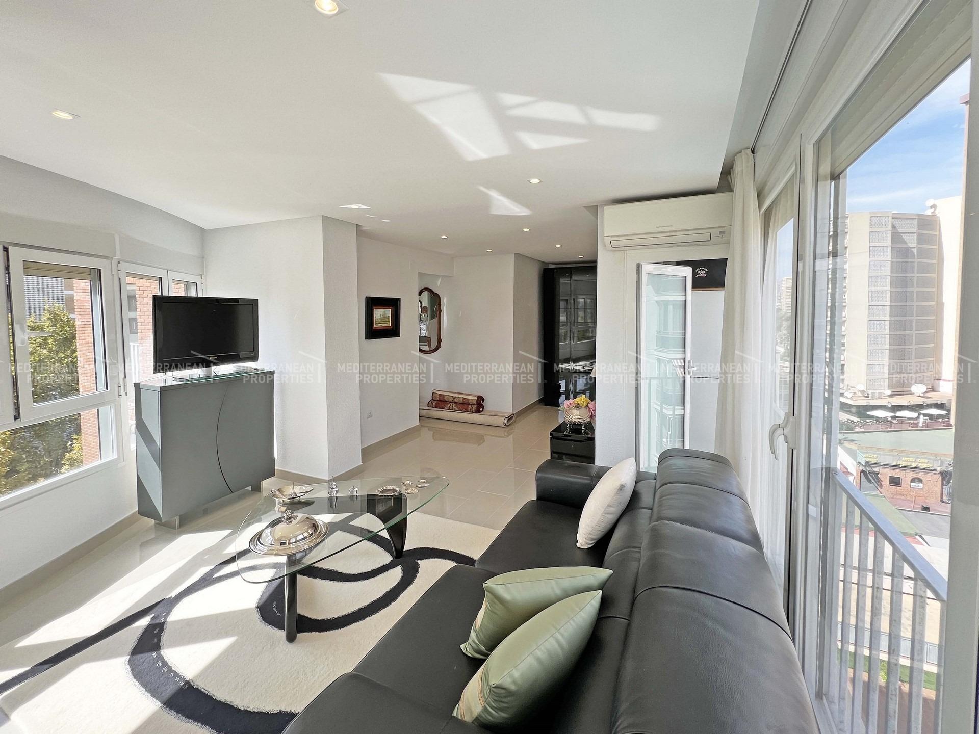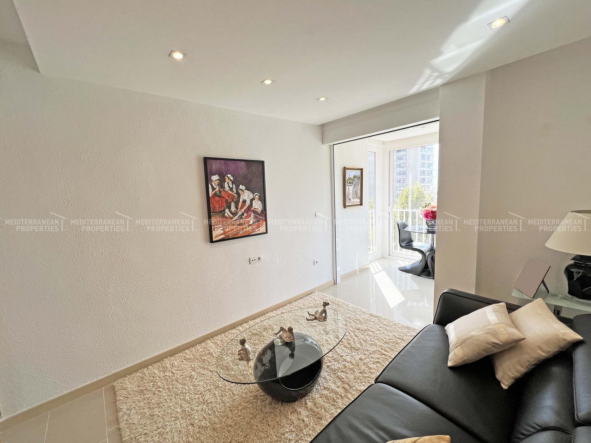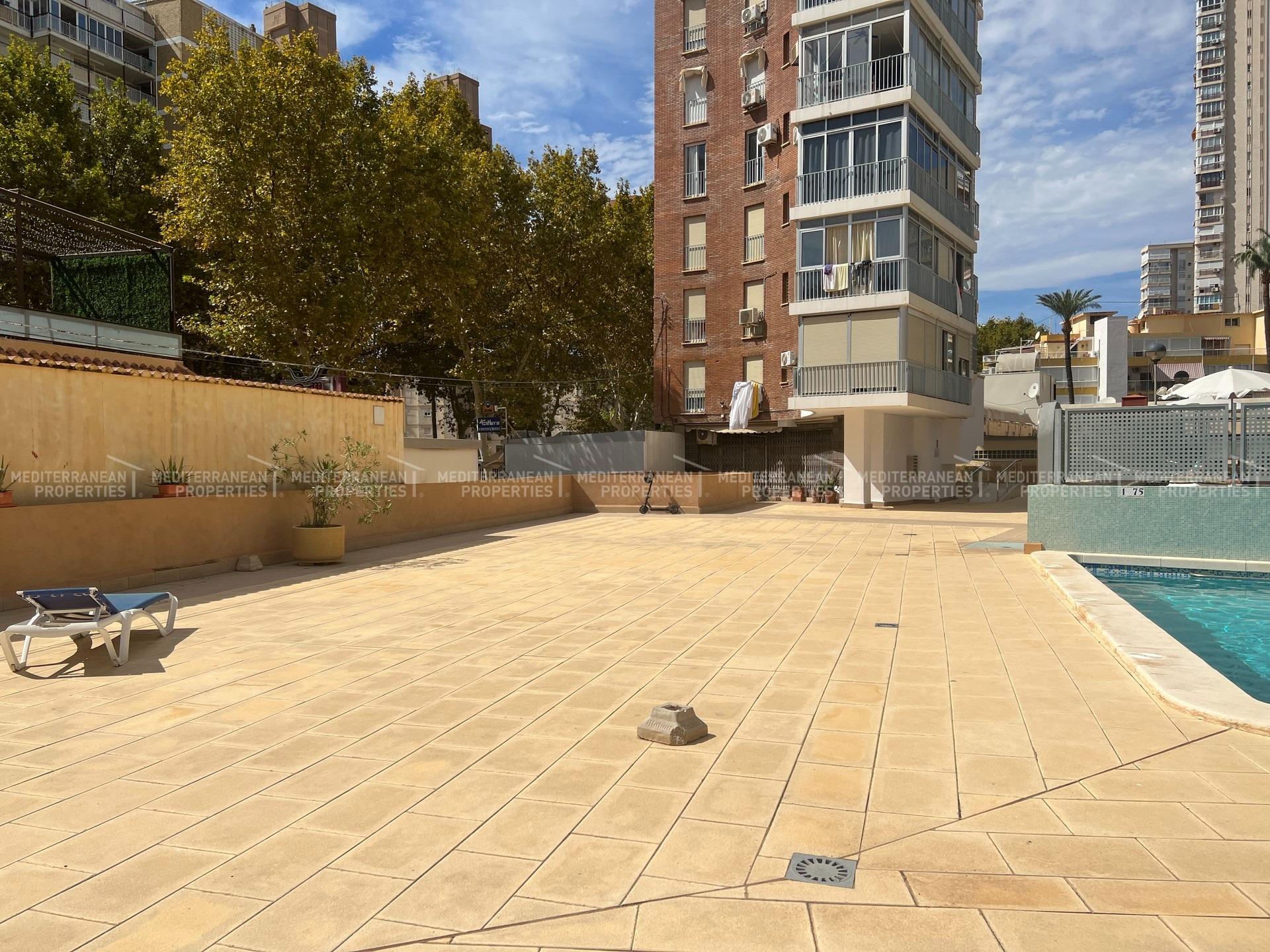 Apartment for sale a few meters from Benidorm beach and all its restaurants and bars.~The house consists of 79m2 distributed in a magnificent living room with windows all around and with clear views, a bedroom with a toilet, another bedroom with a glazed terrace, a bathroom with a shower, a kitchen and a small storage room.~The building has a private garage and community pool with large space to do various activities.~Characteristics
