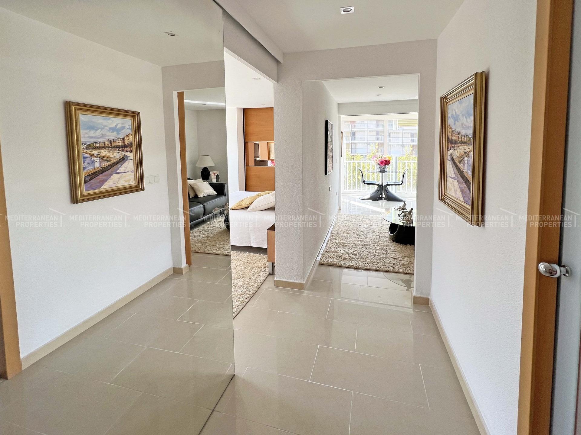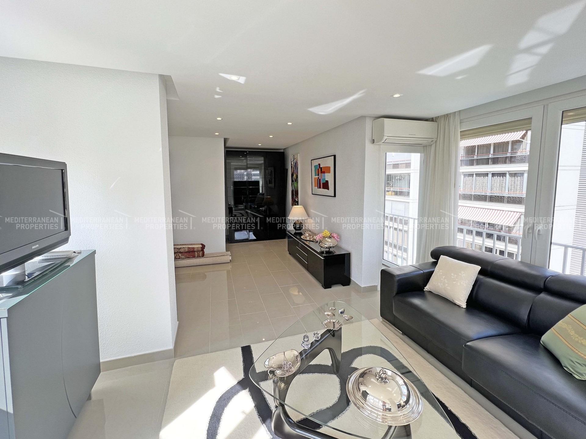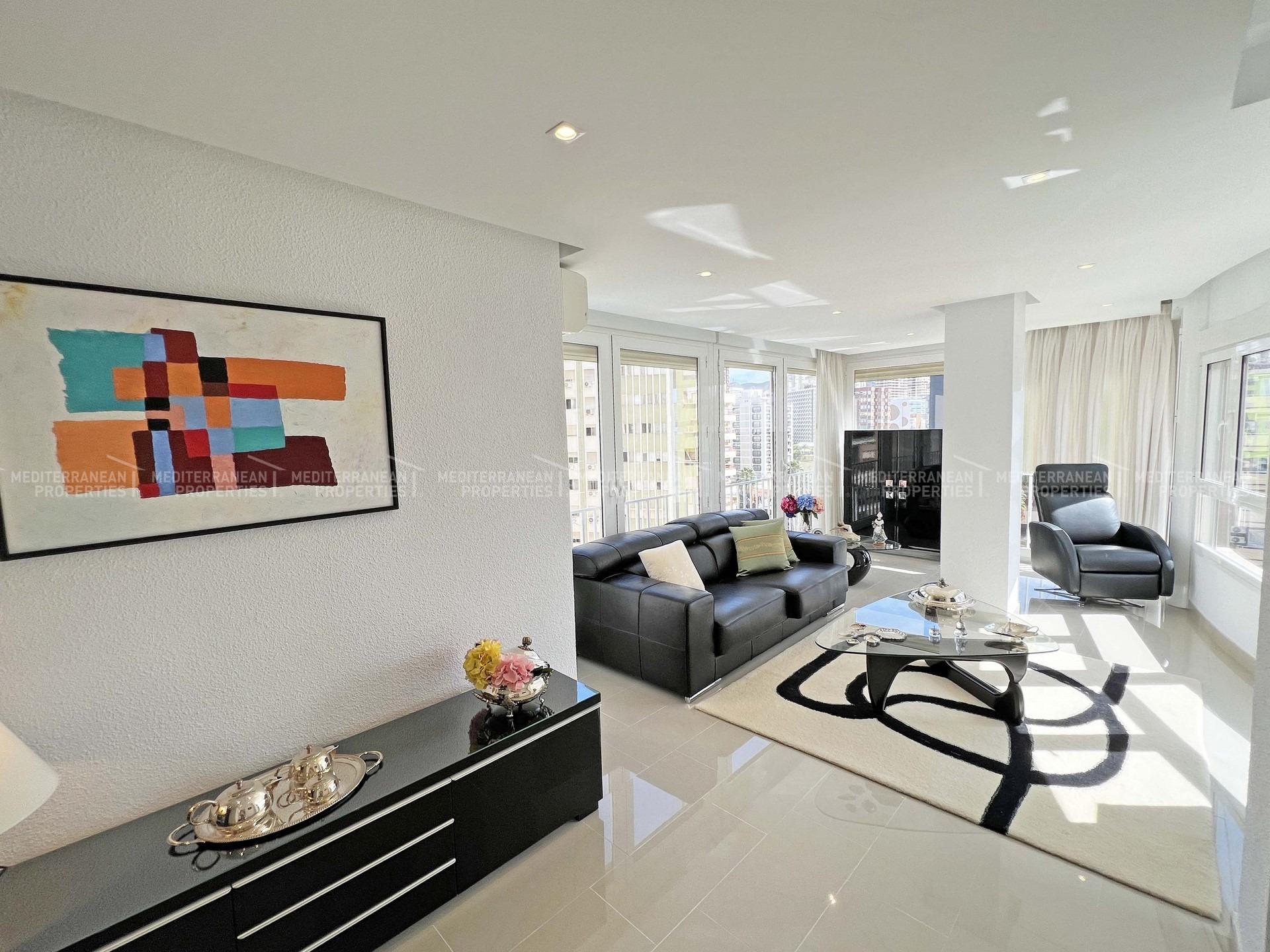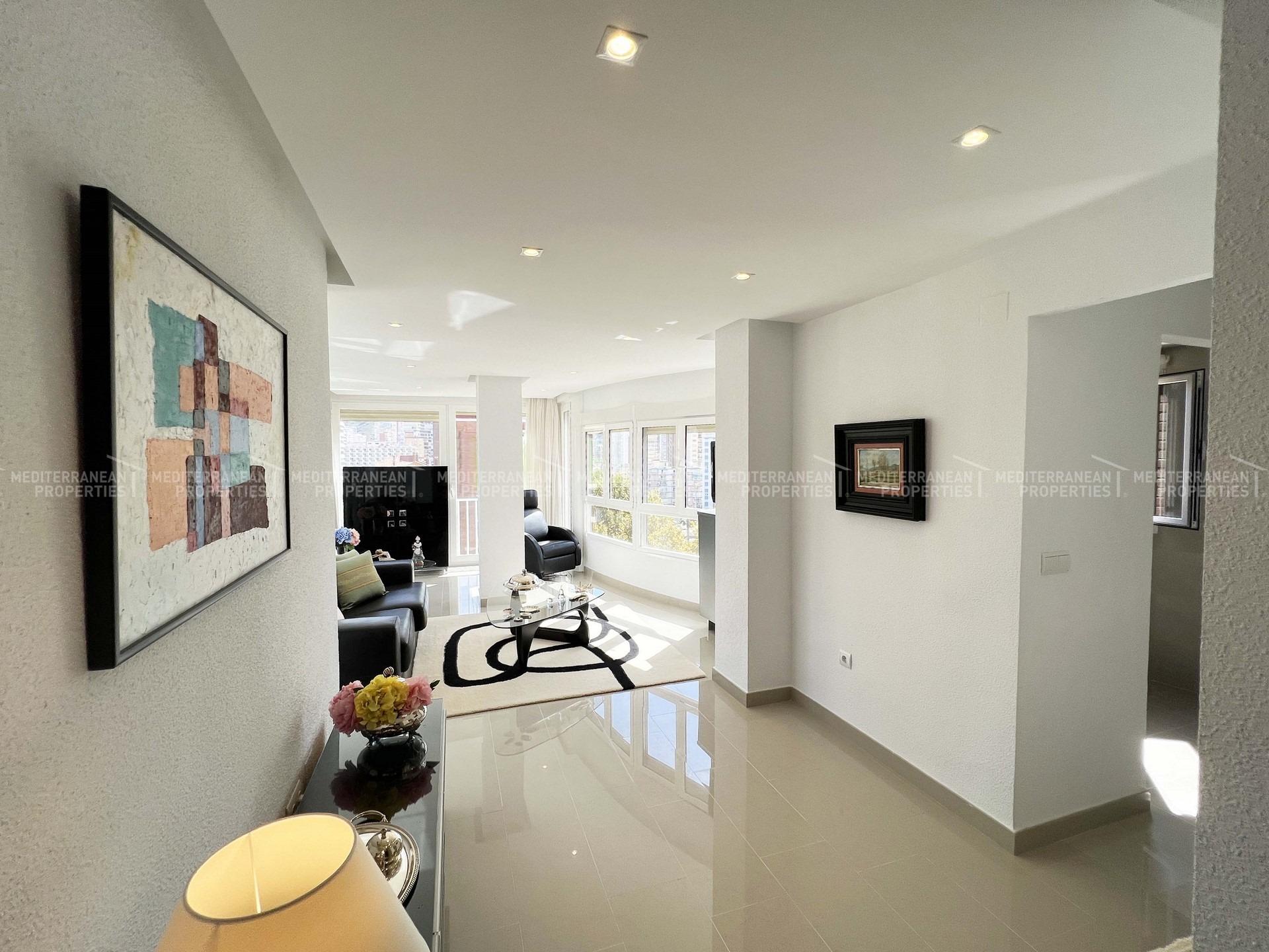 Apartment for sale a few meters from Benidorm beach and all its restaurants and bars.~The house consists of 79m2 distributed in a magnificent living room with windows all around and with clear views, a bedroom with a toilet, another bedroom with a glazed terrace, a bathroom with a shower, a kitchen and a small storage room.~The building has a private garage and community pool with large space to do various activities.~Characteristics