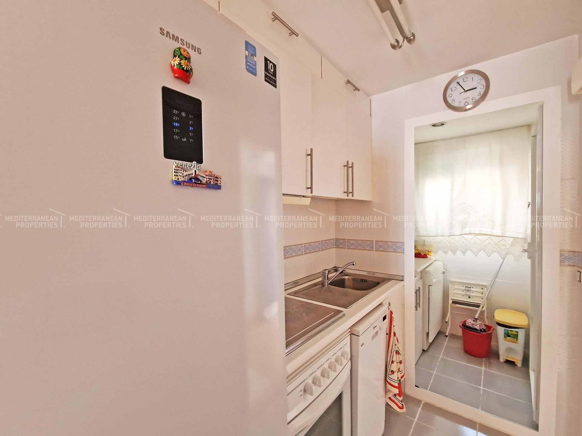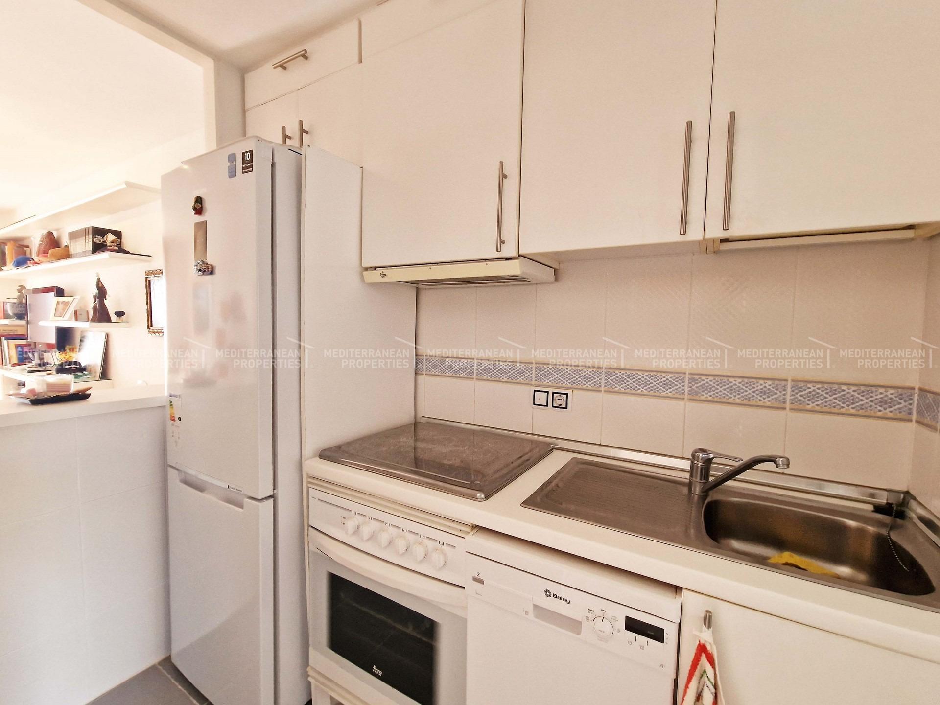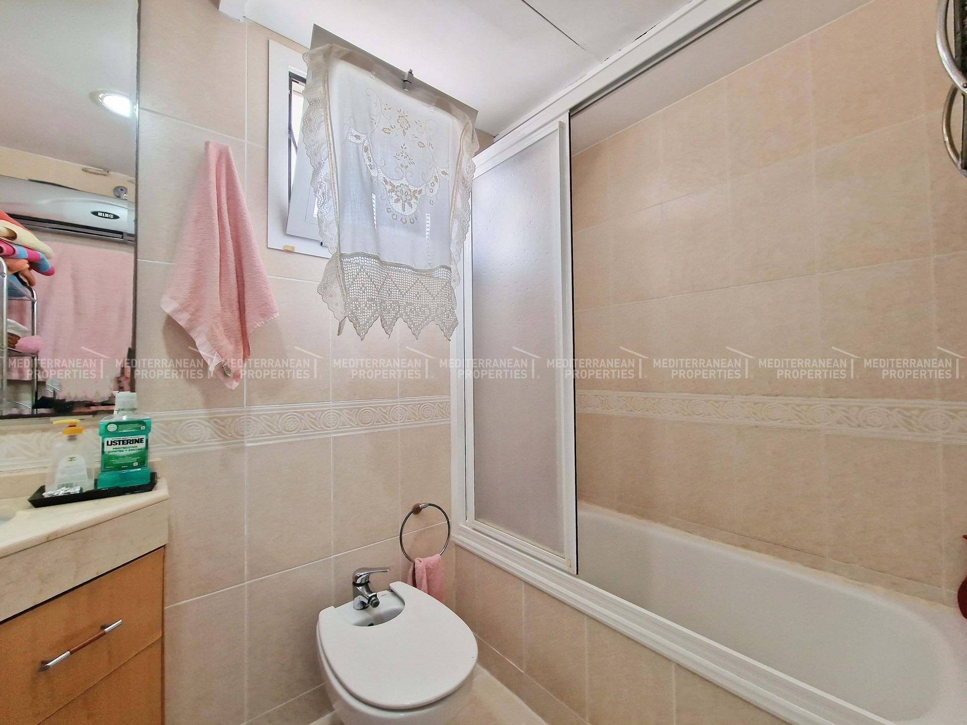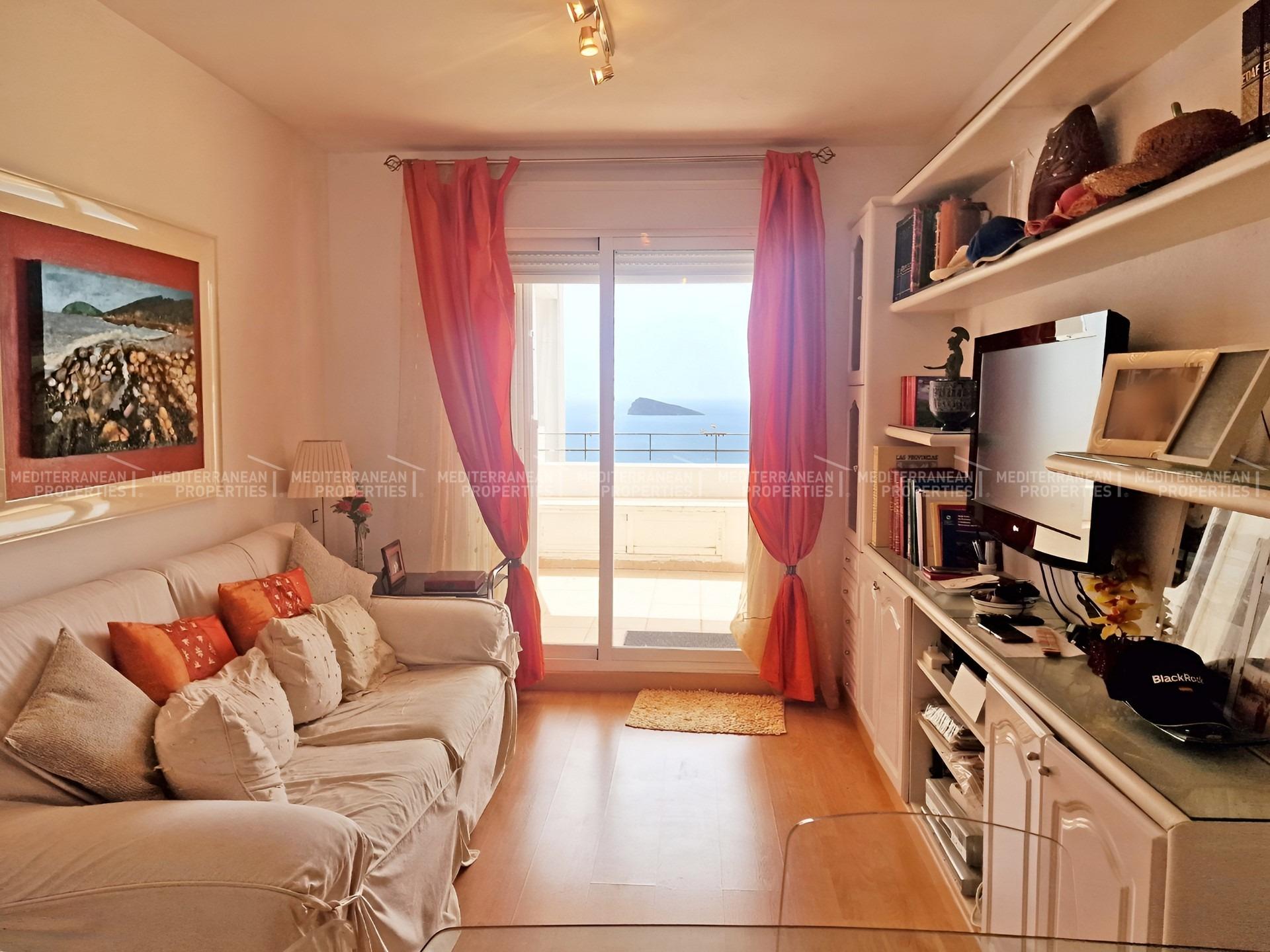 Bright penthouse with a rooftop terrace for sale in the Rincon de Loix area of Benidorm. The building based in front of the Cala Almadraba beach, next to the Cala Tio Chimo beach and at the beginning of the hiking route to the ruined tower Punta de Cavall, offers one of the best sea views in Benidorm.~~The penthouse distributes in 2 bedrooms with fitted wardrobes, 1 bathroom, a living/dining room, and an open-plan kitchen. The property boasts a very large open and sunny 2-floor terrace with beautiful views over the sea and Benidorm. On the upper floor there is a built hot tub with great views.~~The price includes a private underground parking space. It is a gated complex with concierge and a communal swimming pool with excellent sea views. The Levante beach is 10 min walk away.~Characteristics