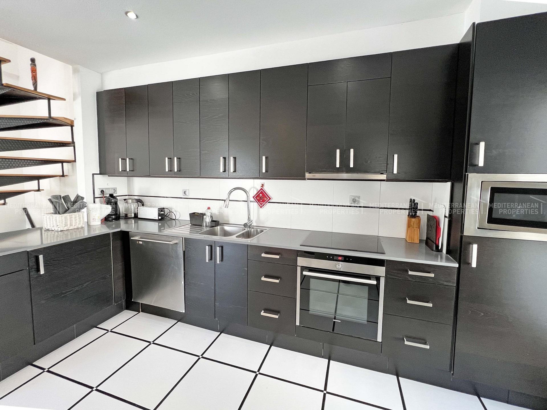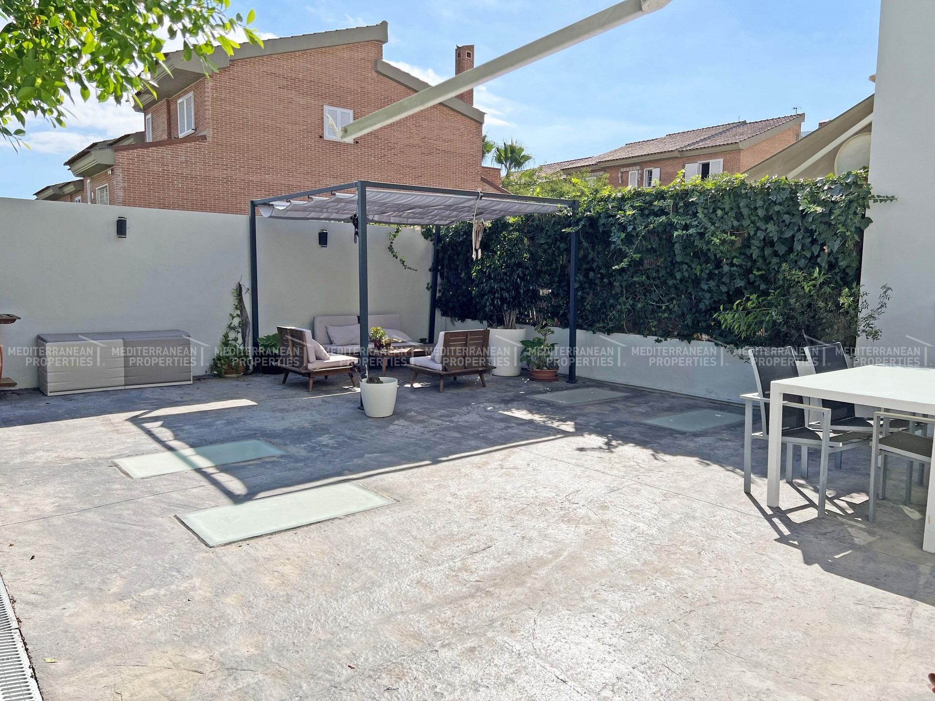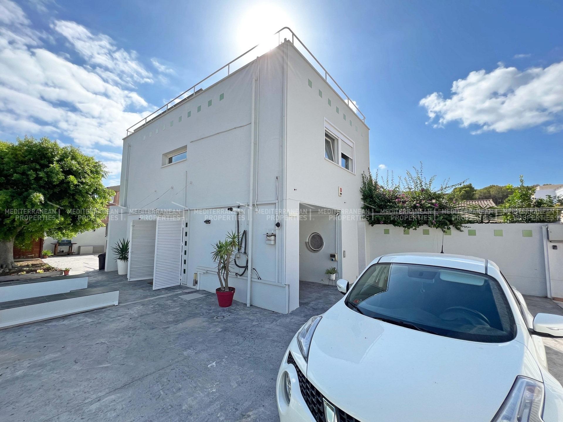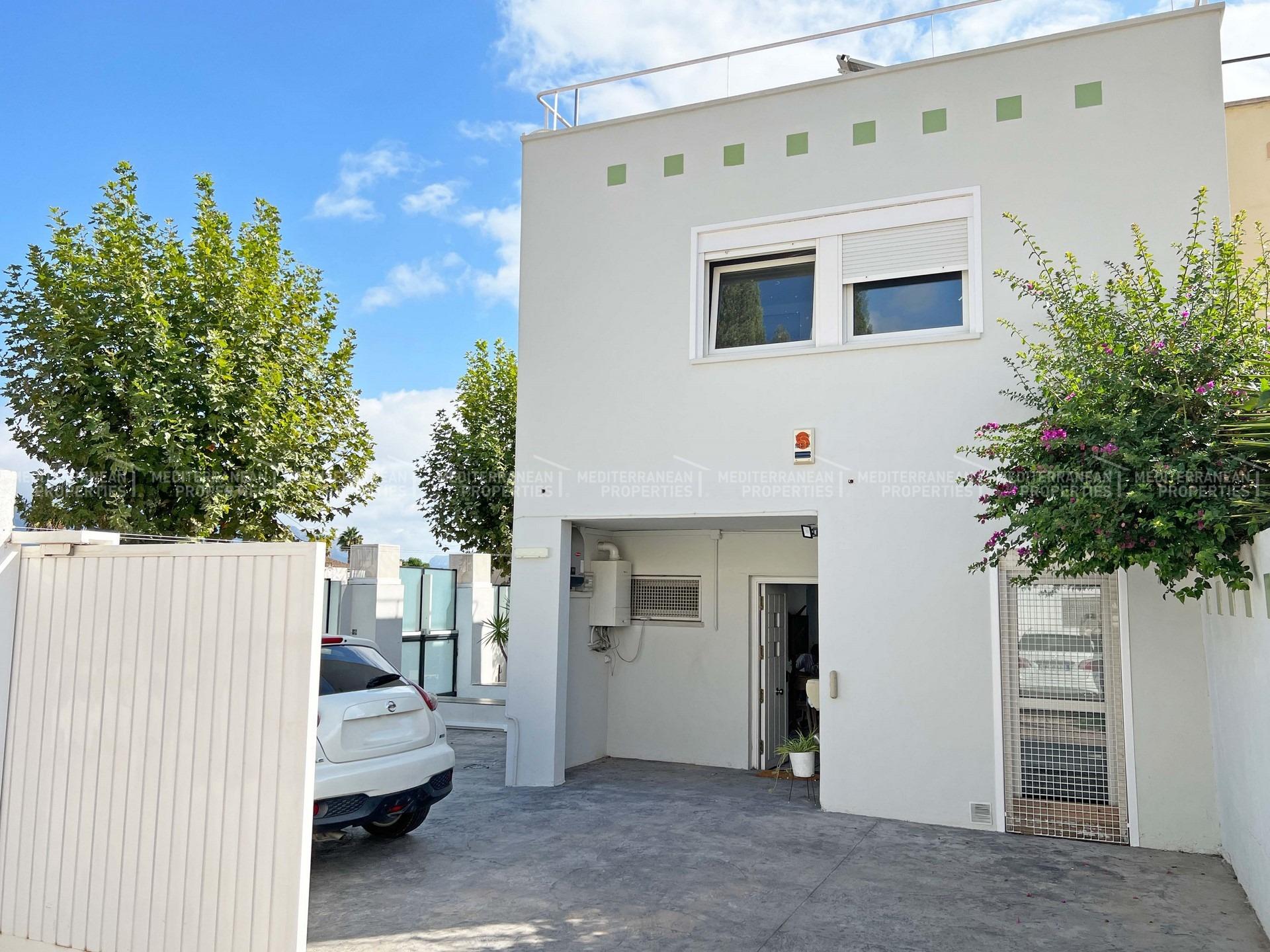 Townhouse for sale with 270 m2 plot in the L'Albir area, built in 1997 and completely renovated including solar panels.~The property is distributed over two floors and a basement.~The basement is currently used for commercial activities since it has 140m2 and external access to the house.~Entering to the house, we can see, on the one hand, a space where you can park up to 3 cars and on the other hand a garden with a barbecue and a place where you can relax.~On the first floor we can find an American-style kitchen with a very bright living room thanks to the windows it has.~Going up the stairs we find the second floor where we can see the three rooms, two of them with a shared bathroom and one with its own bathroom.~Characteristics