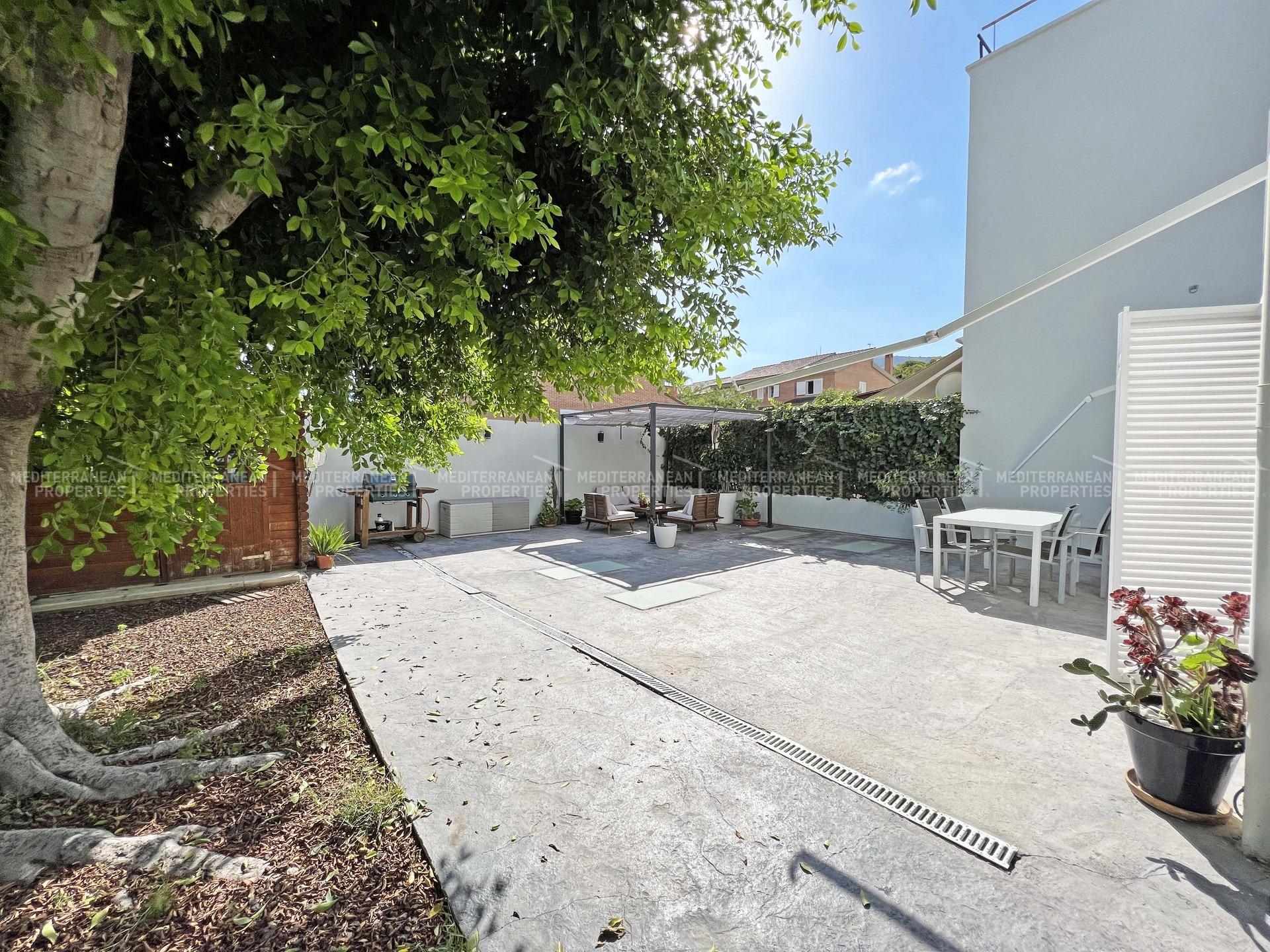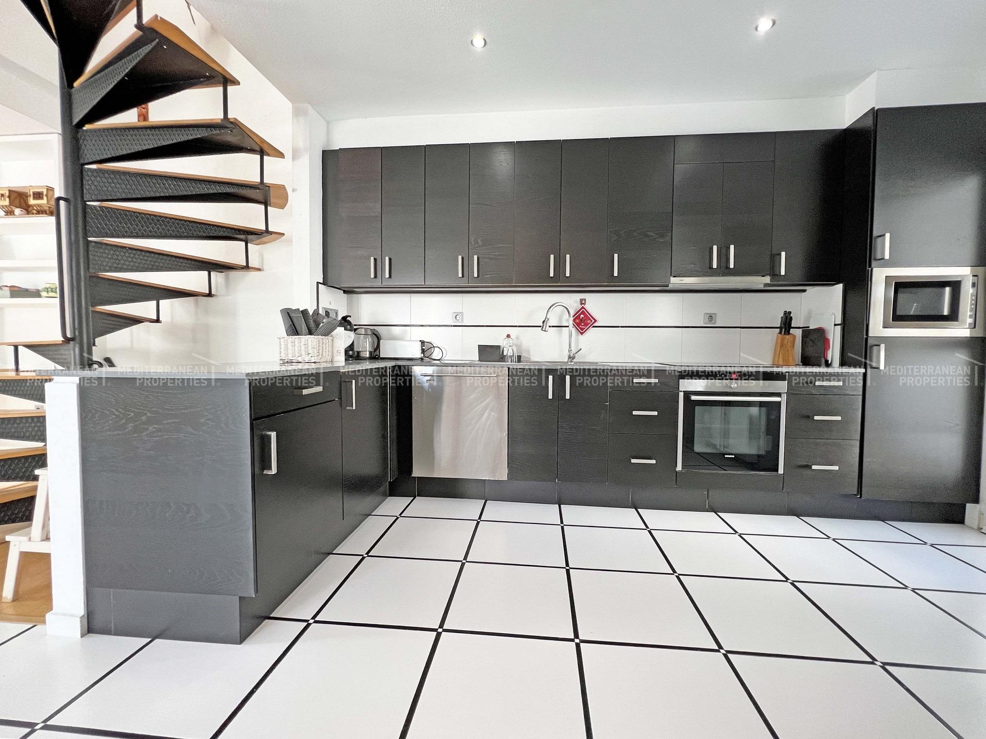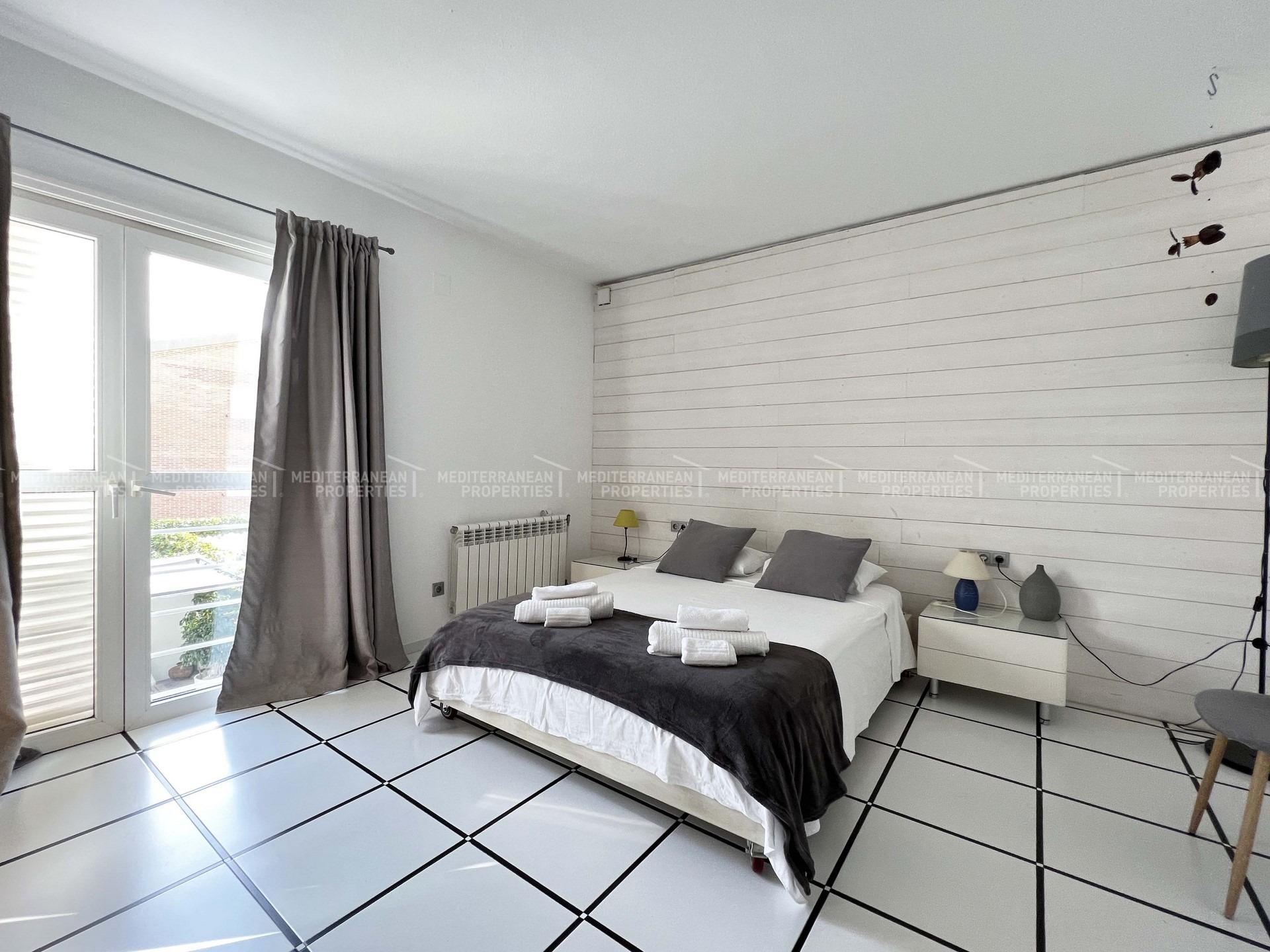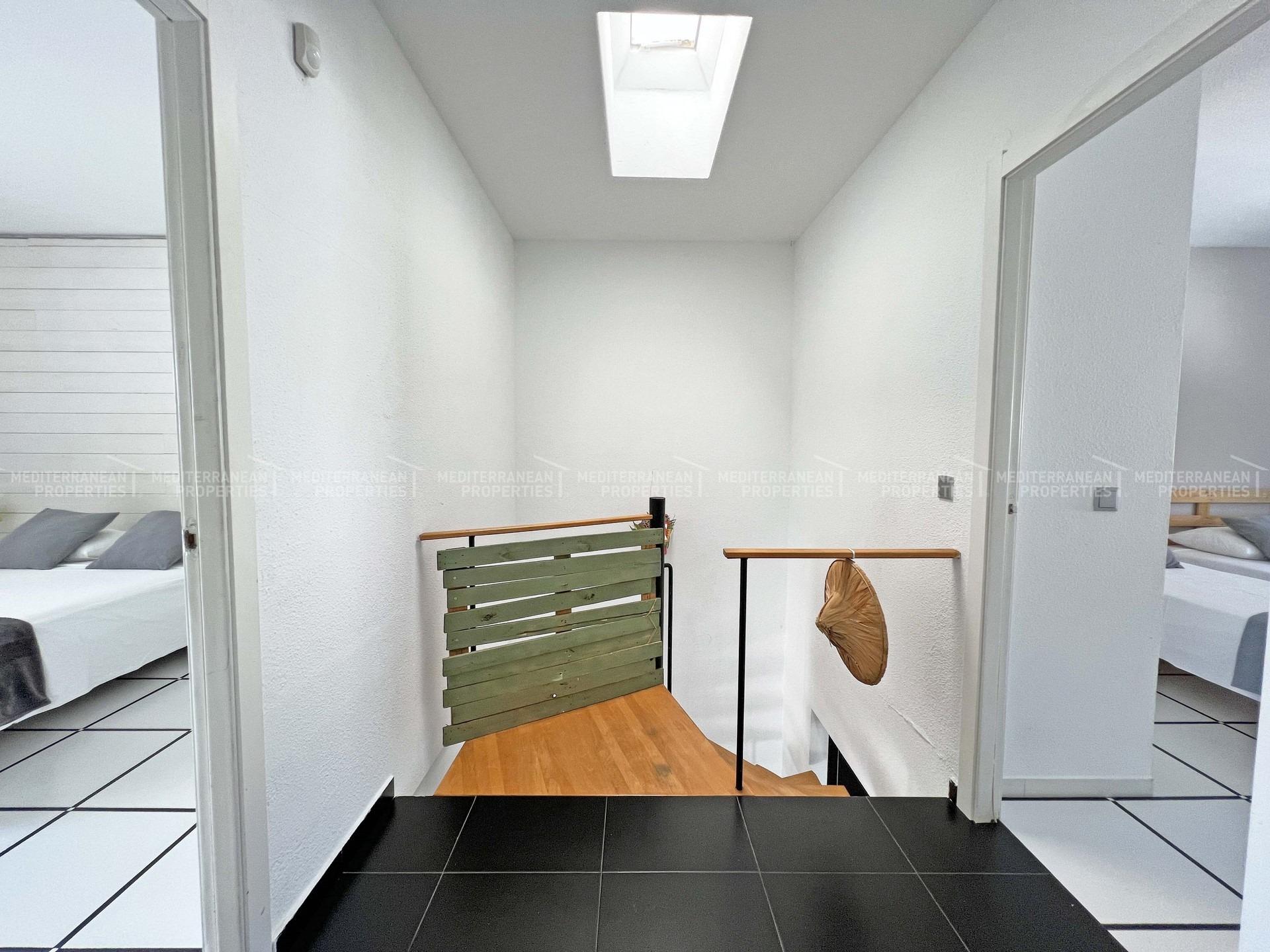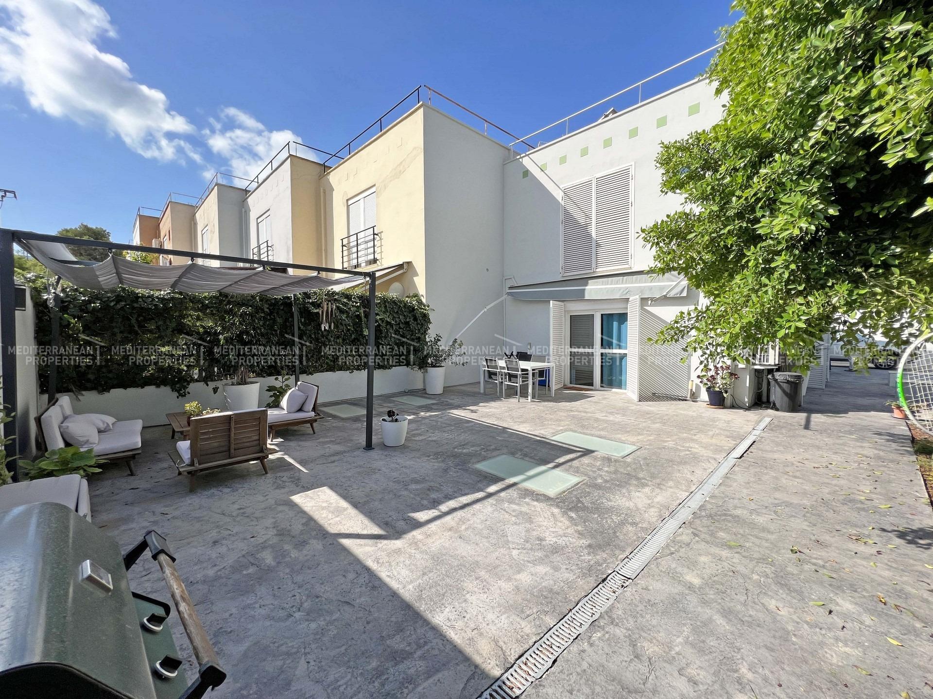 Townhouse for sale with 270 m2 plot in the L'Albir area, built in 1997 and completely renovated including solar panels.~The property is distributed over two floors and a basement.~The basement is currently used for commercial activities since it has 140m2 and external access to the house.~Entering to the house, we can see, on the one hand, a space where you can park up to 3 cars and on the other hand a garden with a barbecue and a place where you can relax.~On the first floor we can find an American-style kitchen with a very bright living room thanks to the windows it has.~Going up the stairs we find the second floor where we can see the three rooms, two of them with a shared bathroom and one with its own bathroom.~Characteristics