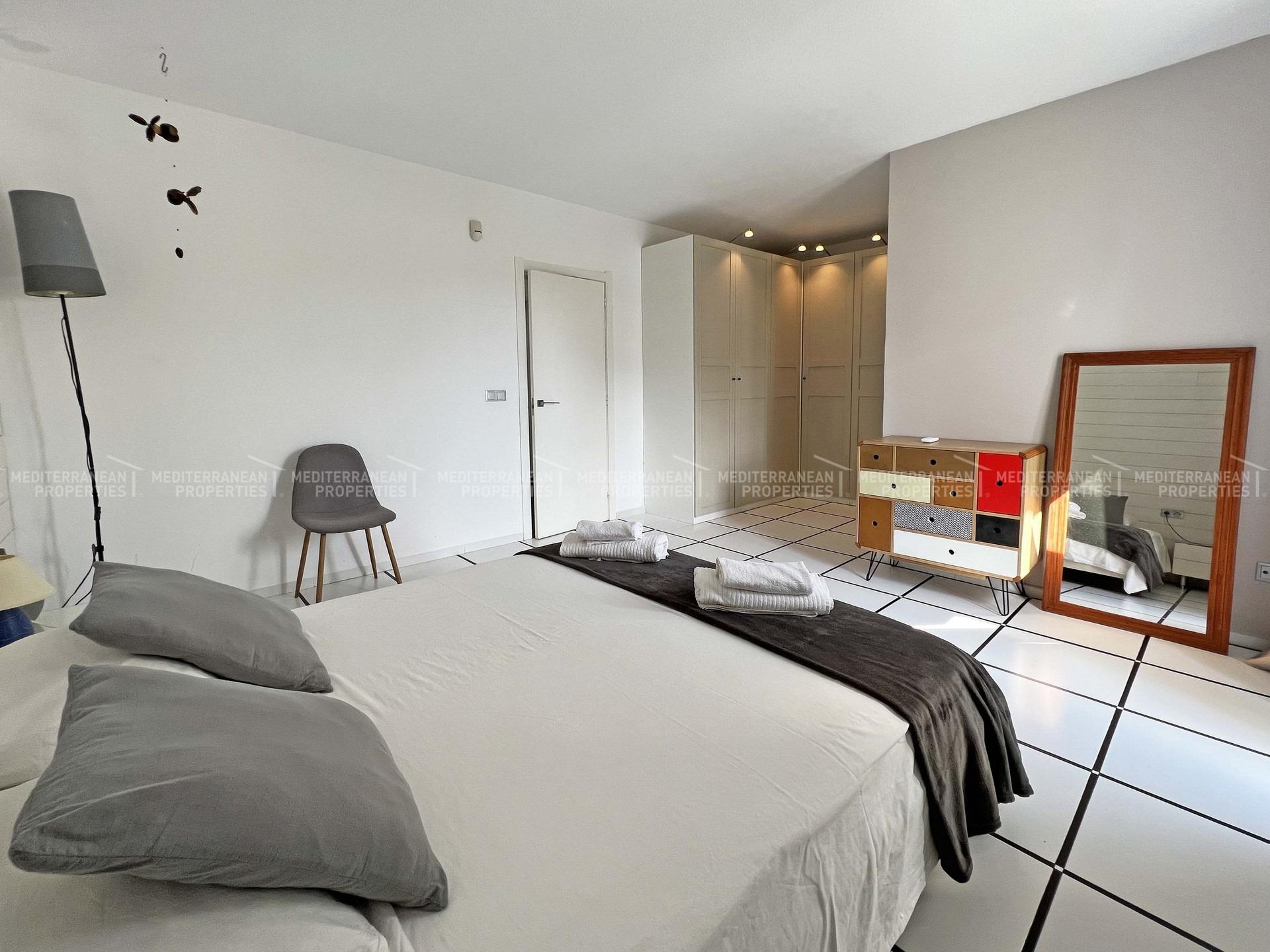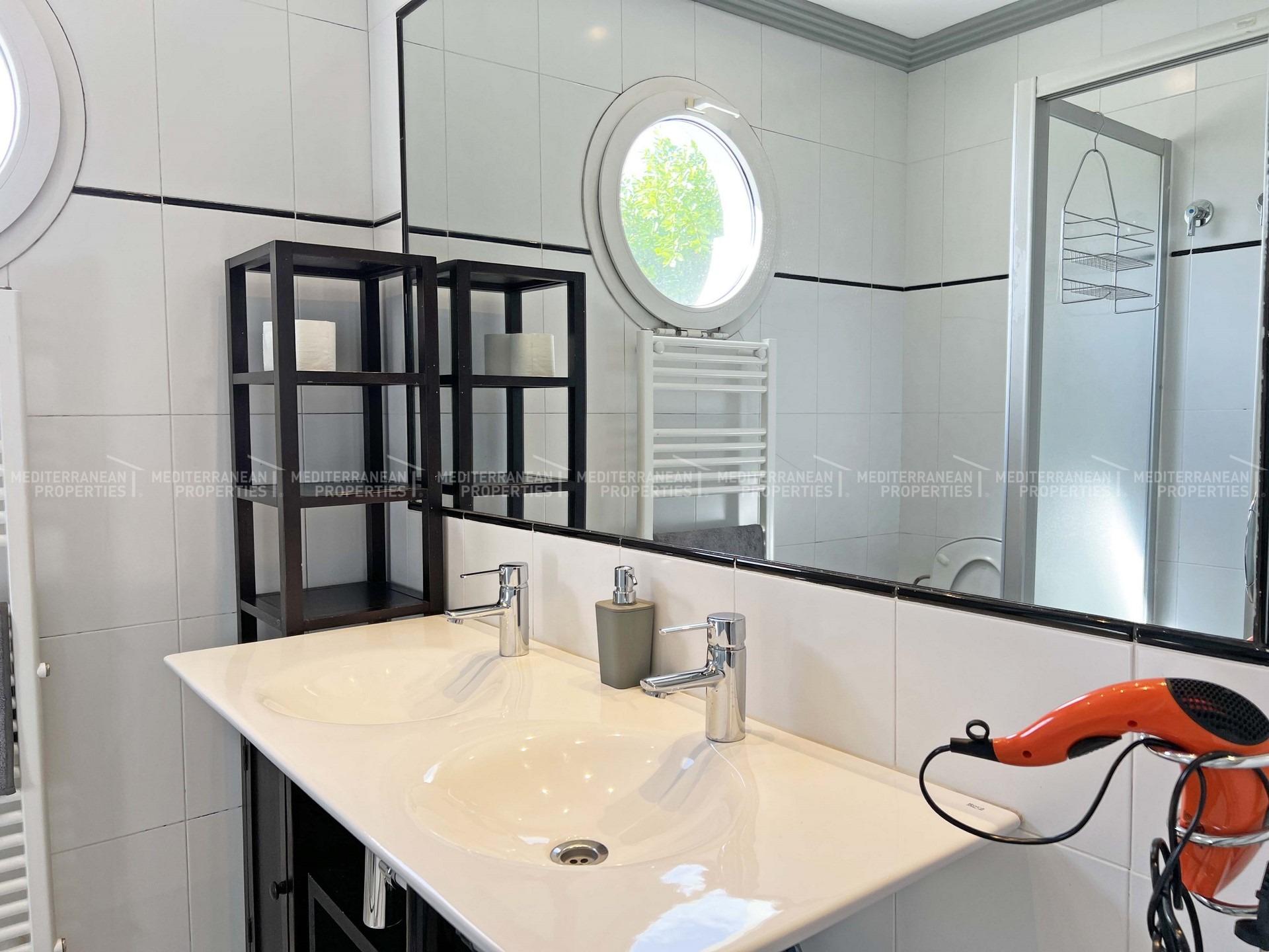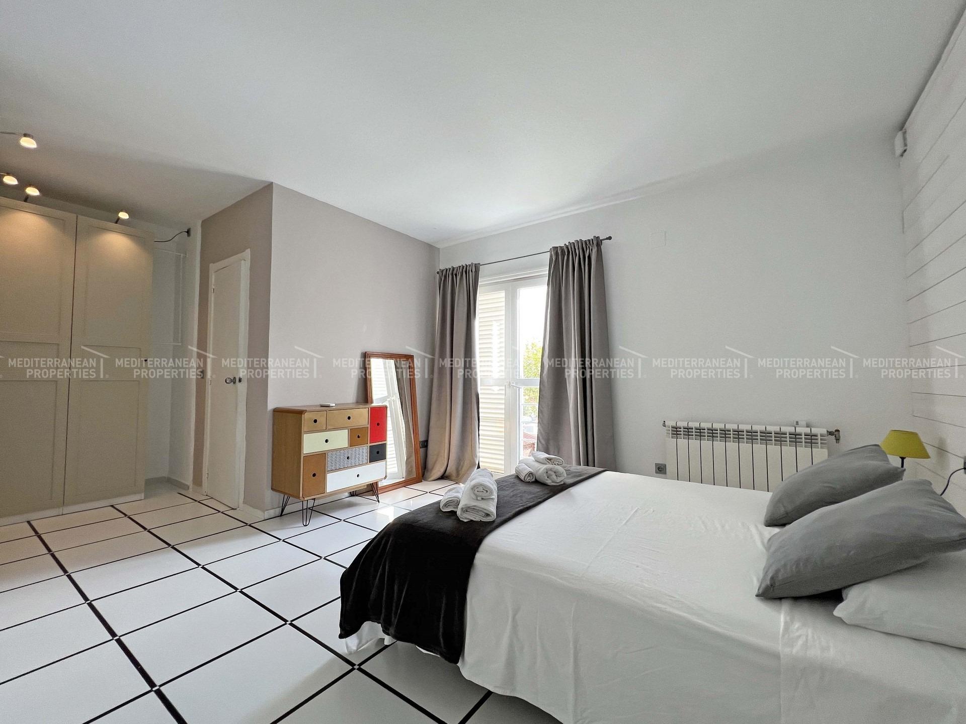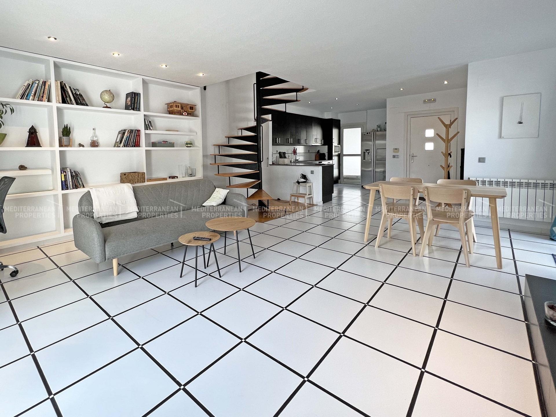 Townhouse for sale with 270 m2 plot in the L'Albir area, built in 1997 and completely renovated including solar panels.~The property is distributed over two floors and a basement.~The basement is currently used for commercial activities since it has 140m2 and external access to the house.~Entering to the house, we can see, on the one hand, a space where you can park up to 3 cars and on the other hand a garden with a barbecue and a place where you can relax.~On the first floor we can find an American-style kitchen with a very bright living room thanks to the windows it has.~Going up the stairs we find the second floor where we can see the three rooms, two of them with a shared bathroom and one with its own bathroom.~Characteristics